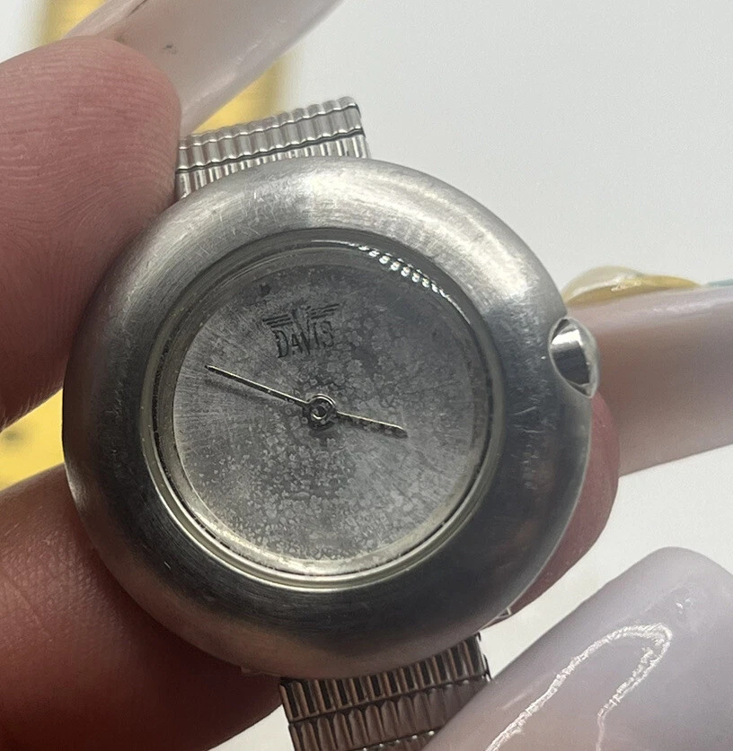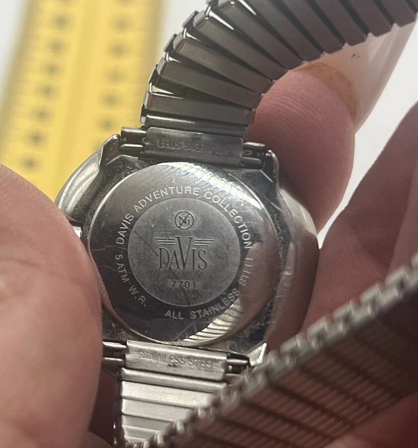 Vtg Davis Adventure Collection Quartz Men's Watch Stainless Steel Silver Stretch