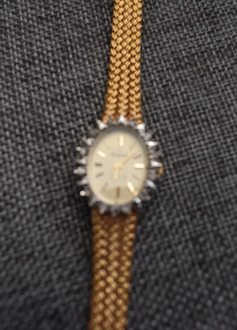 Vintage 14K Gold Filled Band Deauville Armitron Quartz Ladies Diamond Watch 7"