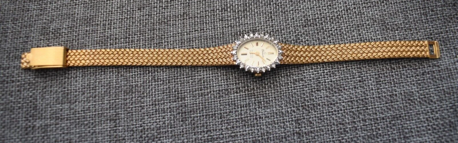 Vintage 14K Gold Filled Band Deauville Armitron  Quartz Ladies Diamond Watch 7"