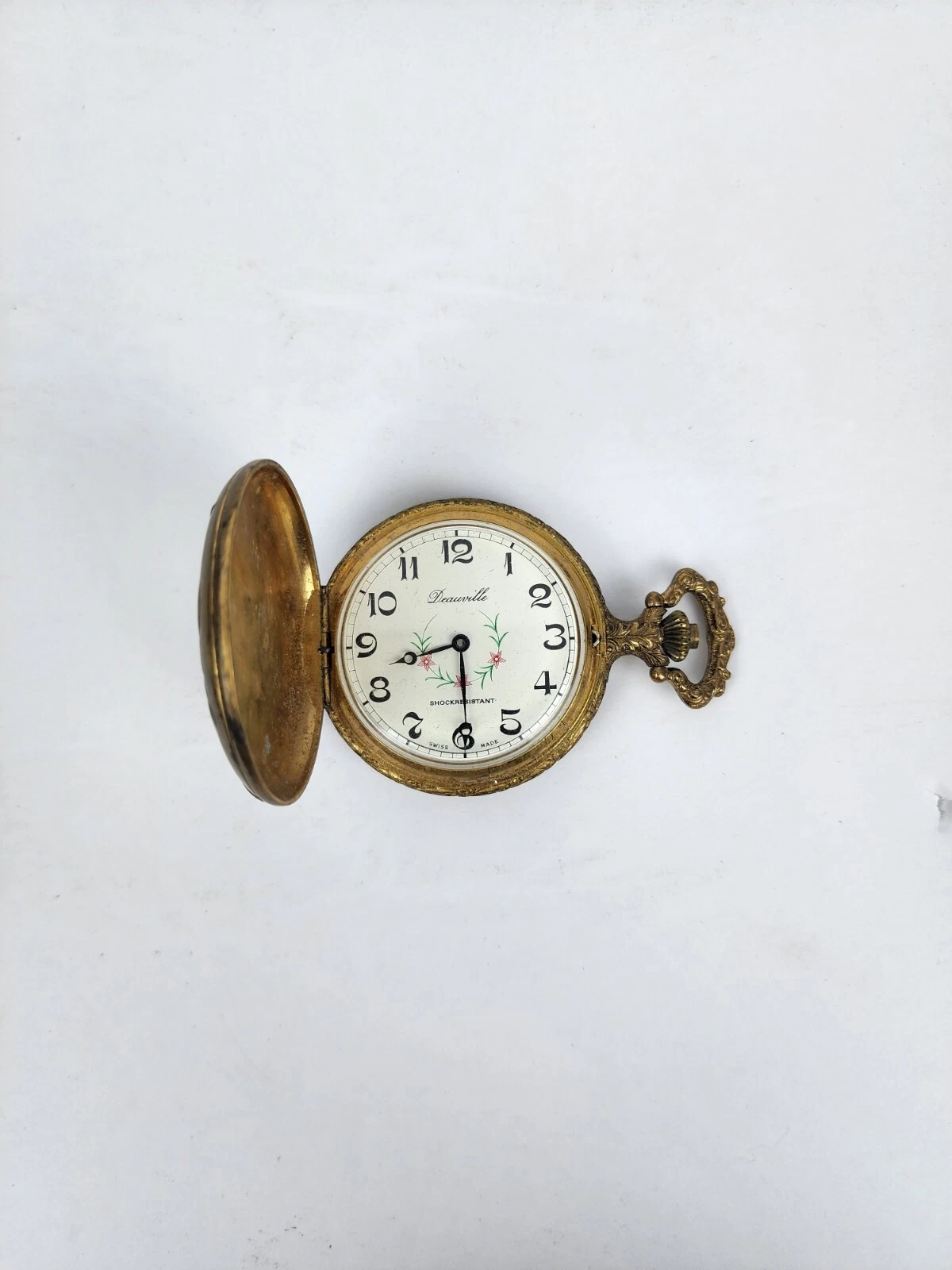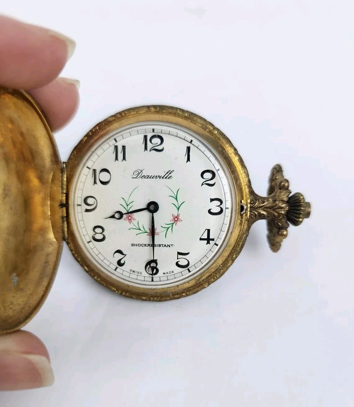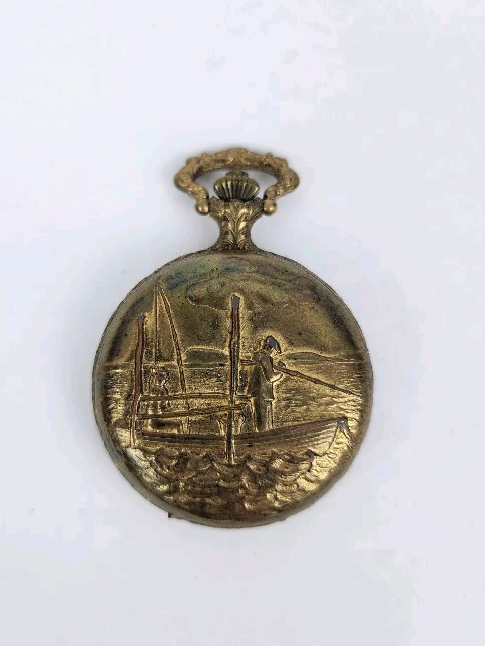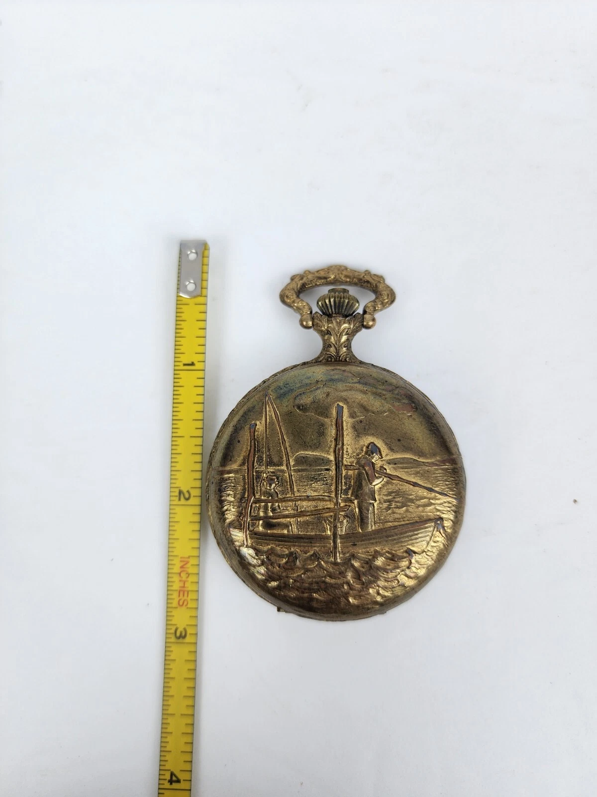 Vintage Deauville Pocket Watch Boat Fishing Scene Manual Wind Swiss Made Untestd