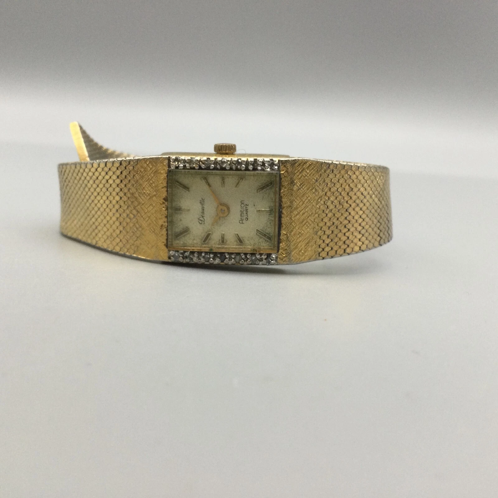 Deauville Armitron Diamond Watch Women Gold Tone BROKEN For Parts or Repair