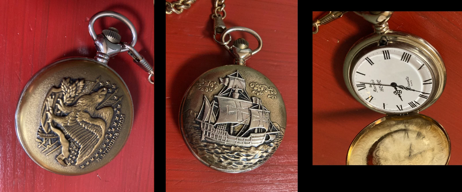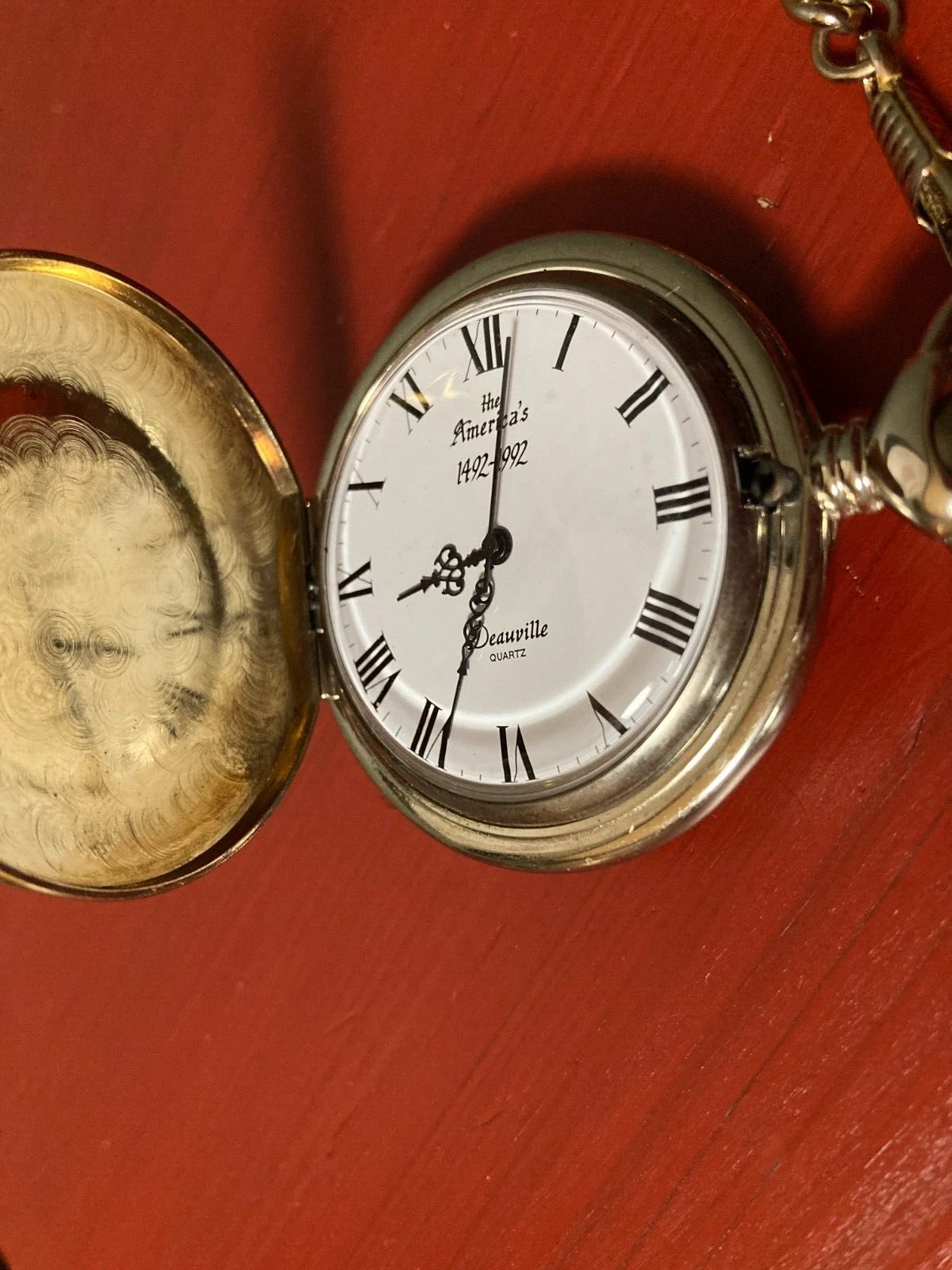 The America's 1492 - 1992 Deauville E Pluribus Unum chain pocket watch Untested