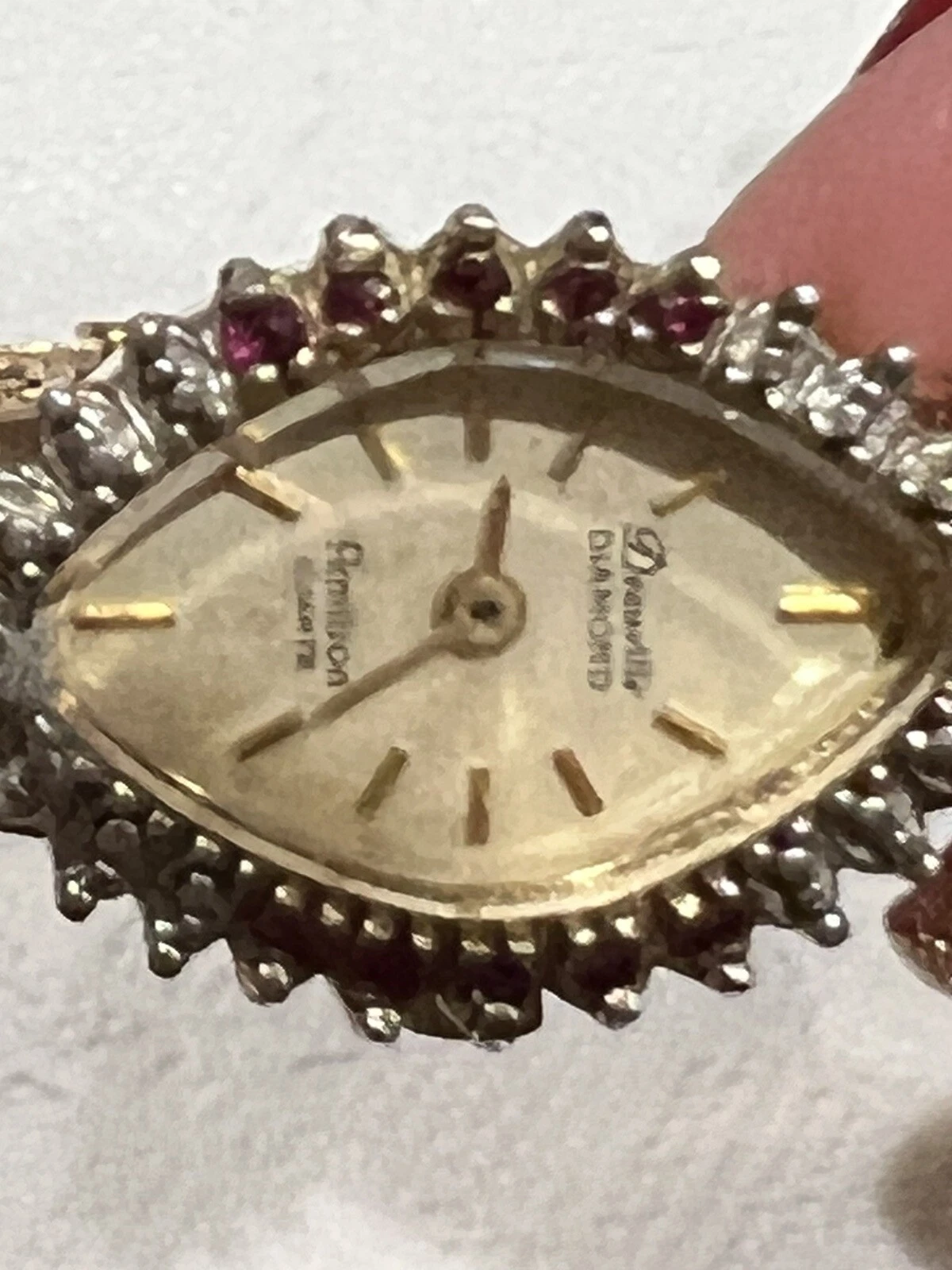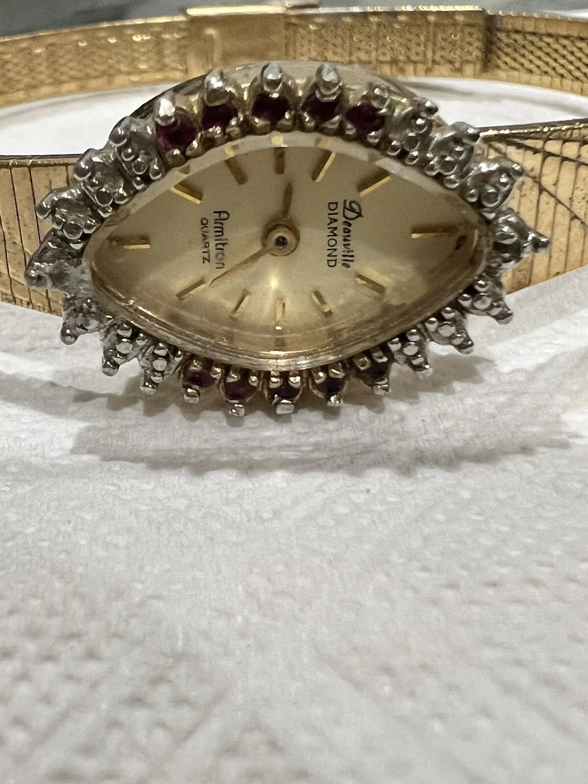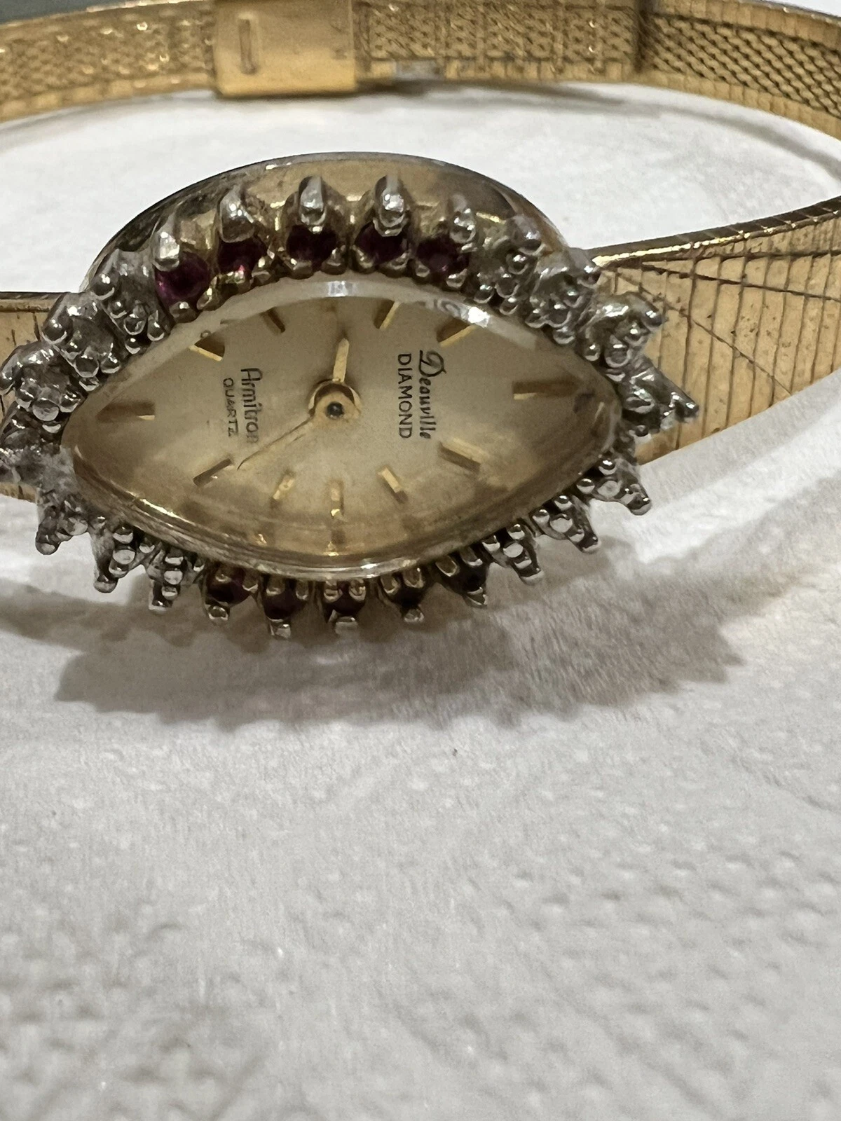 Deauville Genuine Diamonds Ruby Bezel Gold Plated Ladies Watch! Doesn’t Run