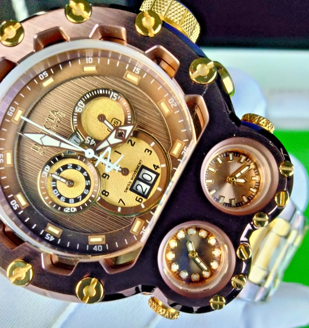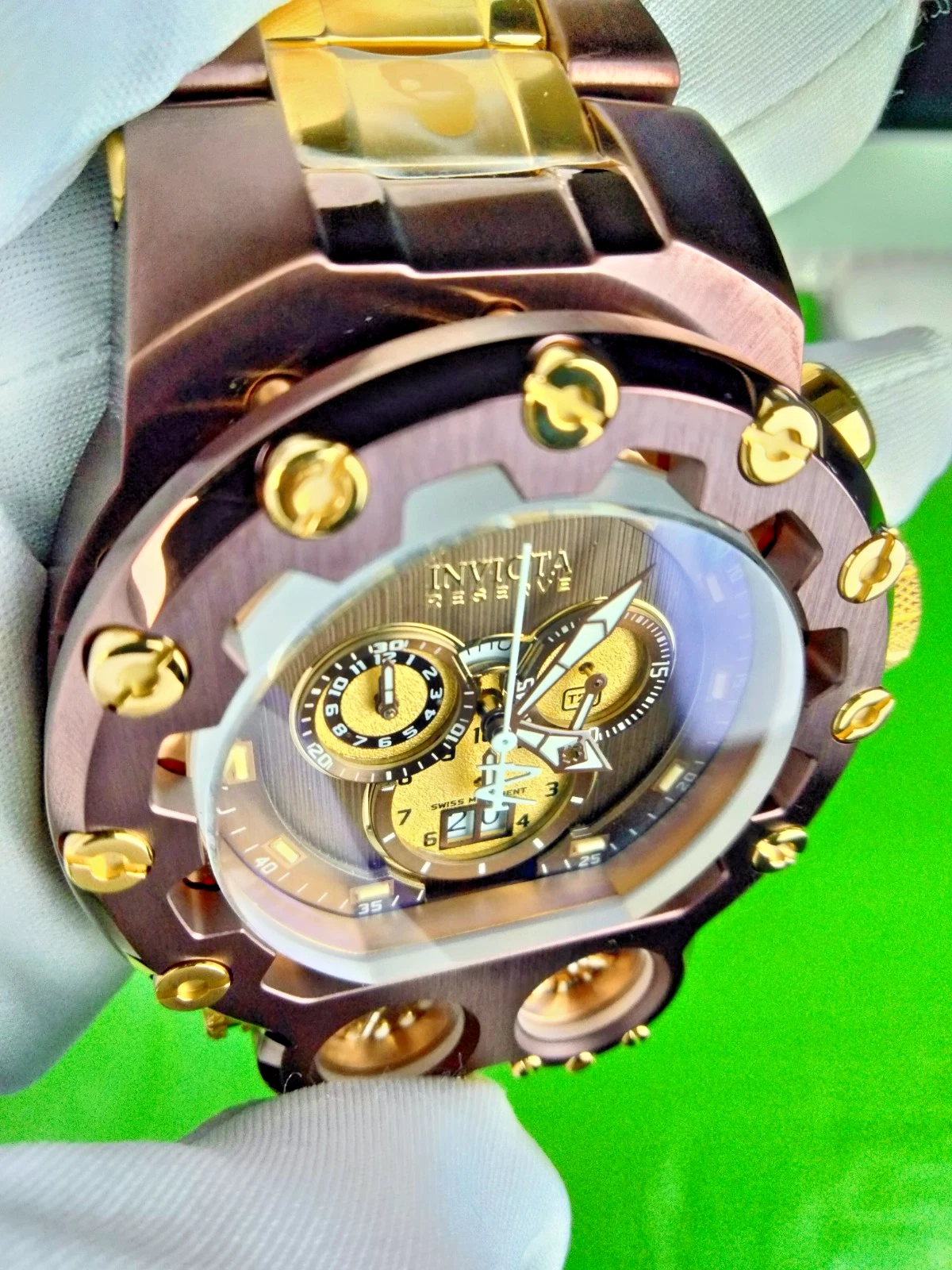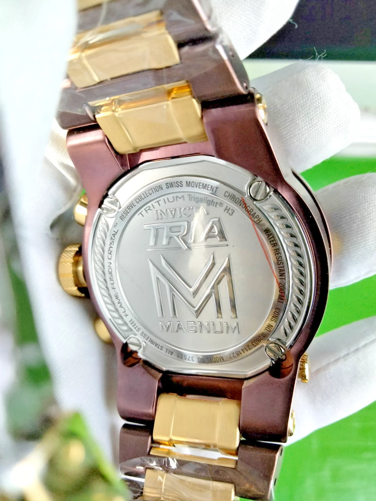 Invicta Reserve Magnum Tria Chrono Men Swiss Quartz Watch 37551 Dual-Time WR200M