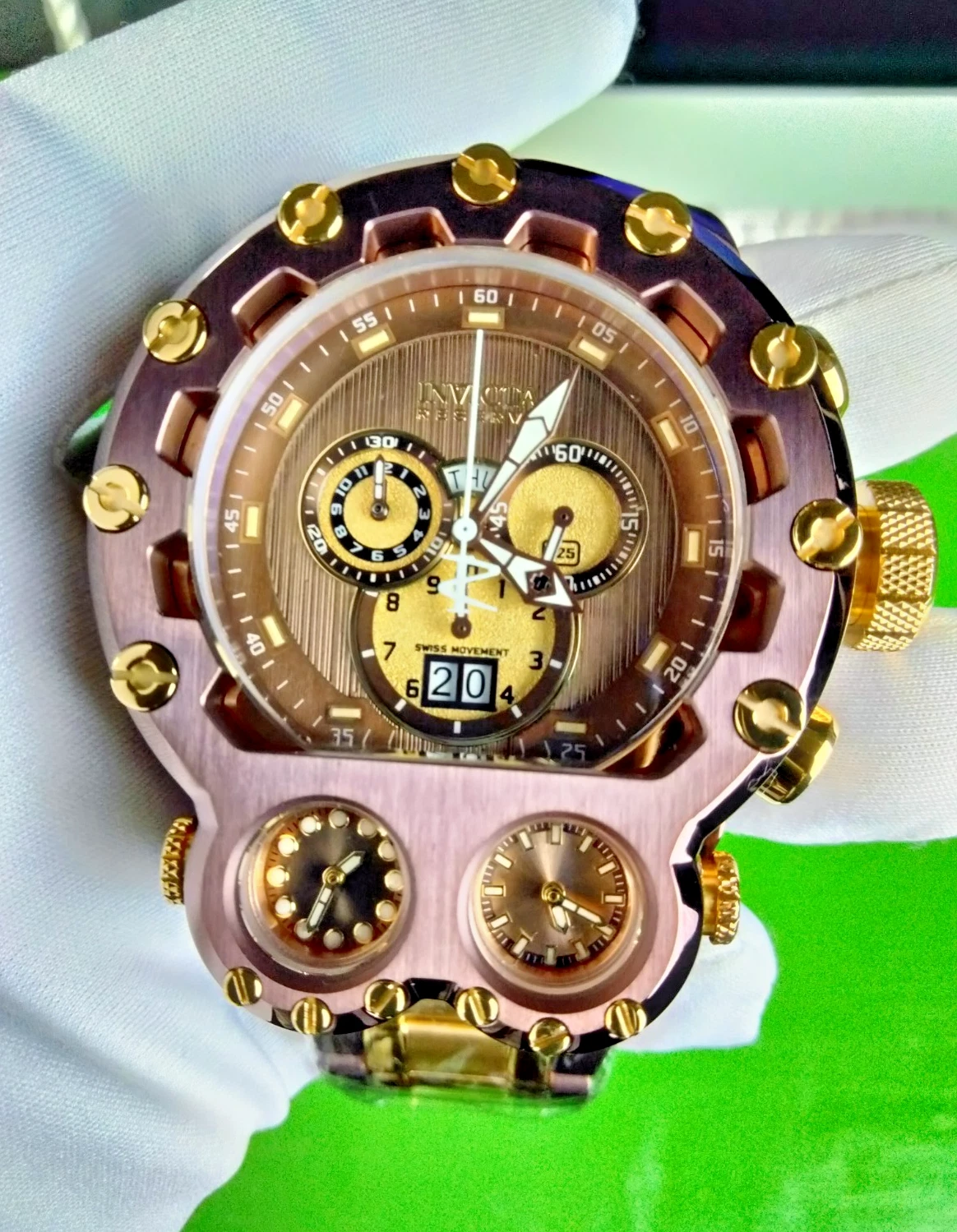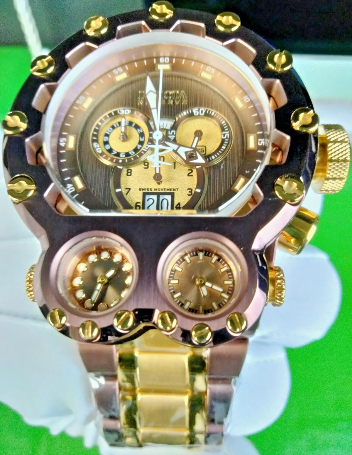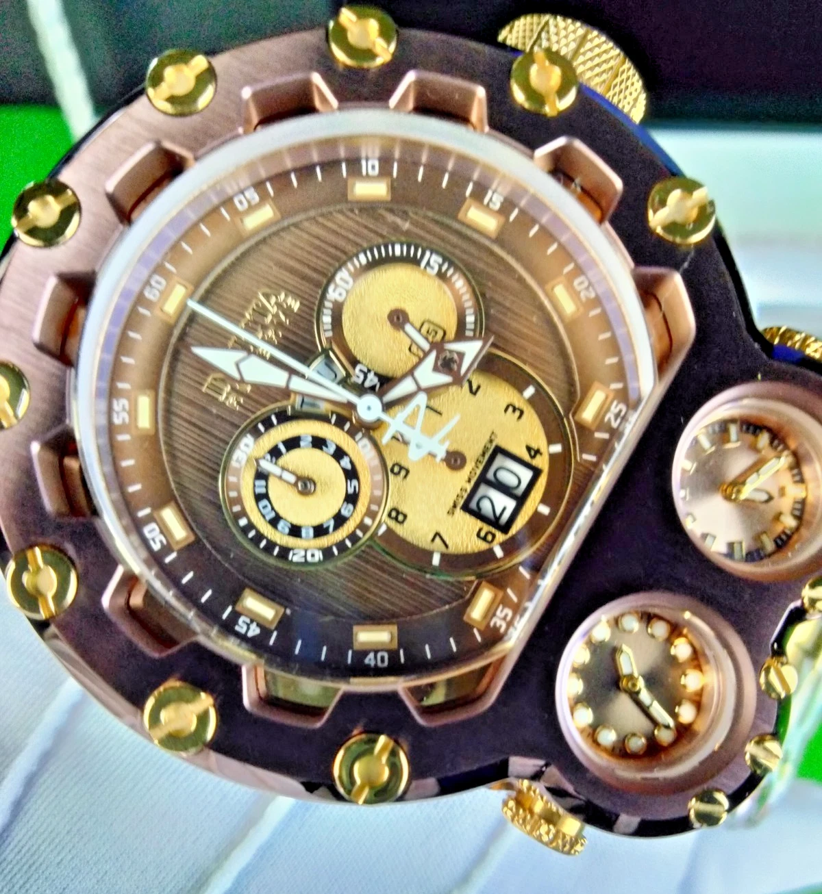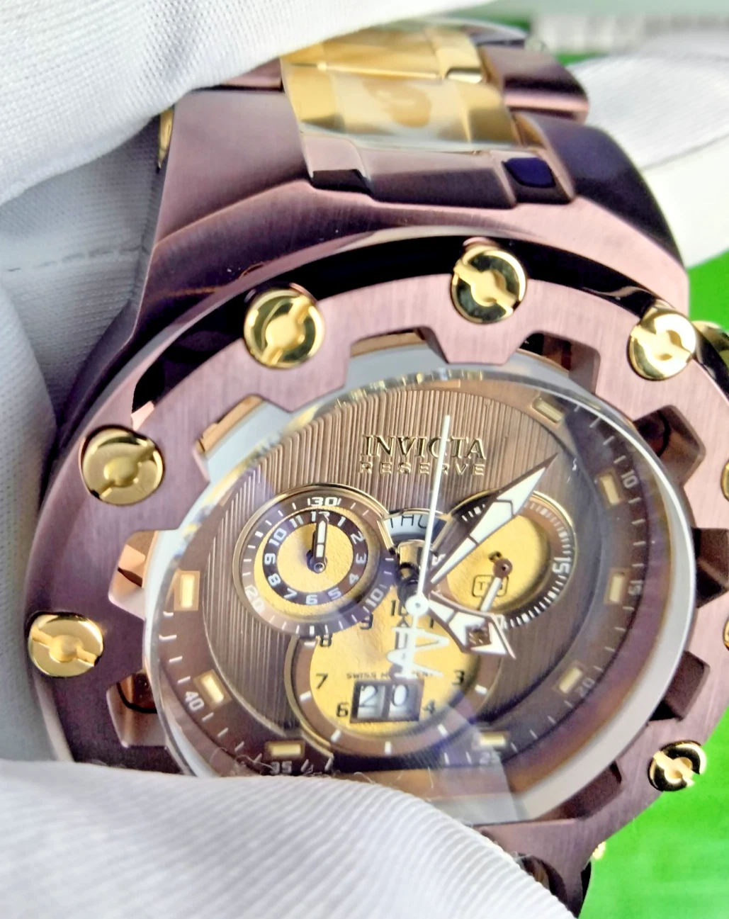 Invicta Reserve Magnum Tria Chrono Men Swiss Quartz Watch 37551 Dual-Time WR200M