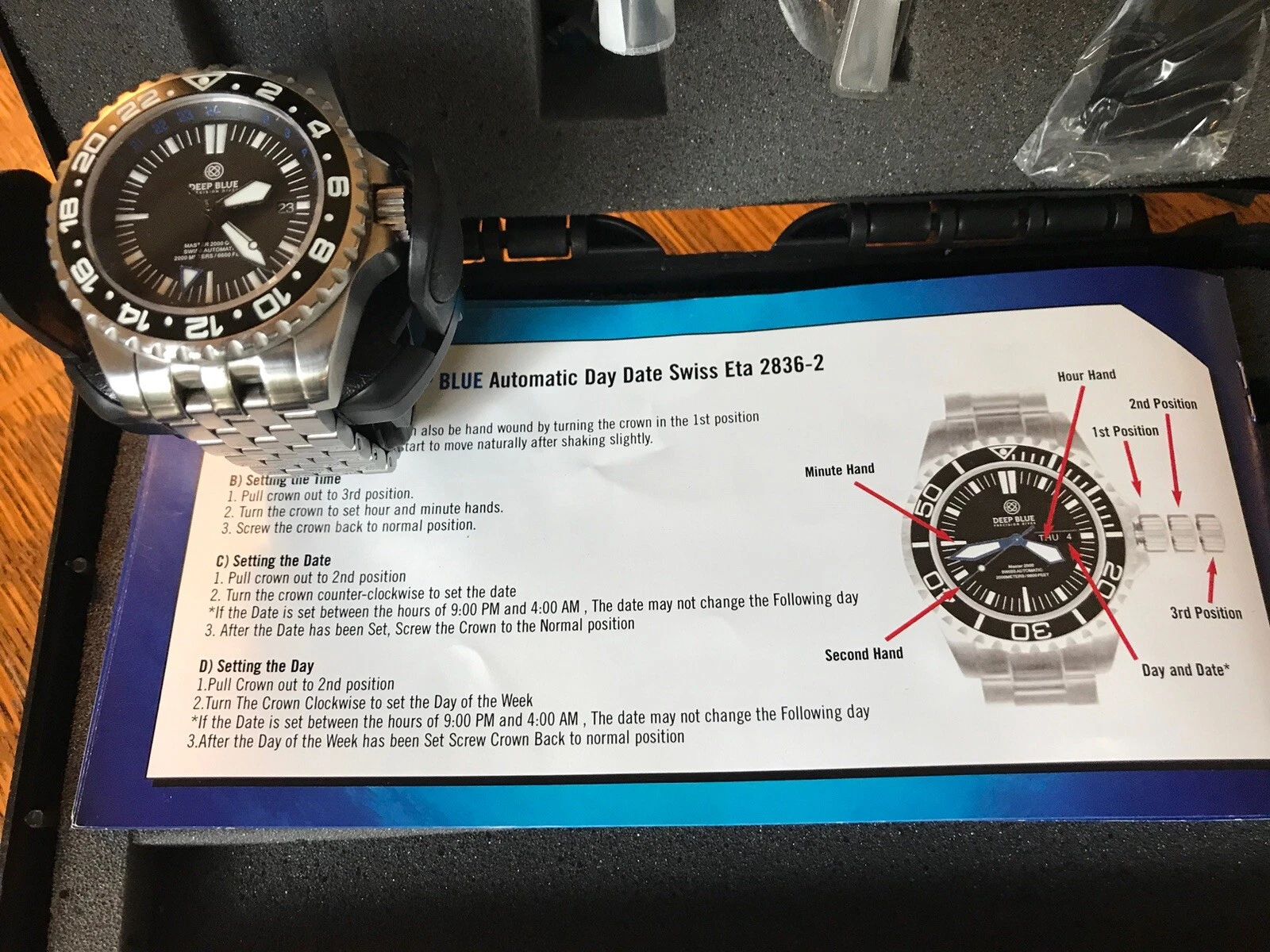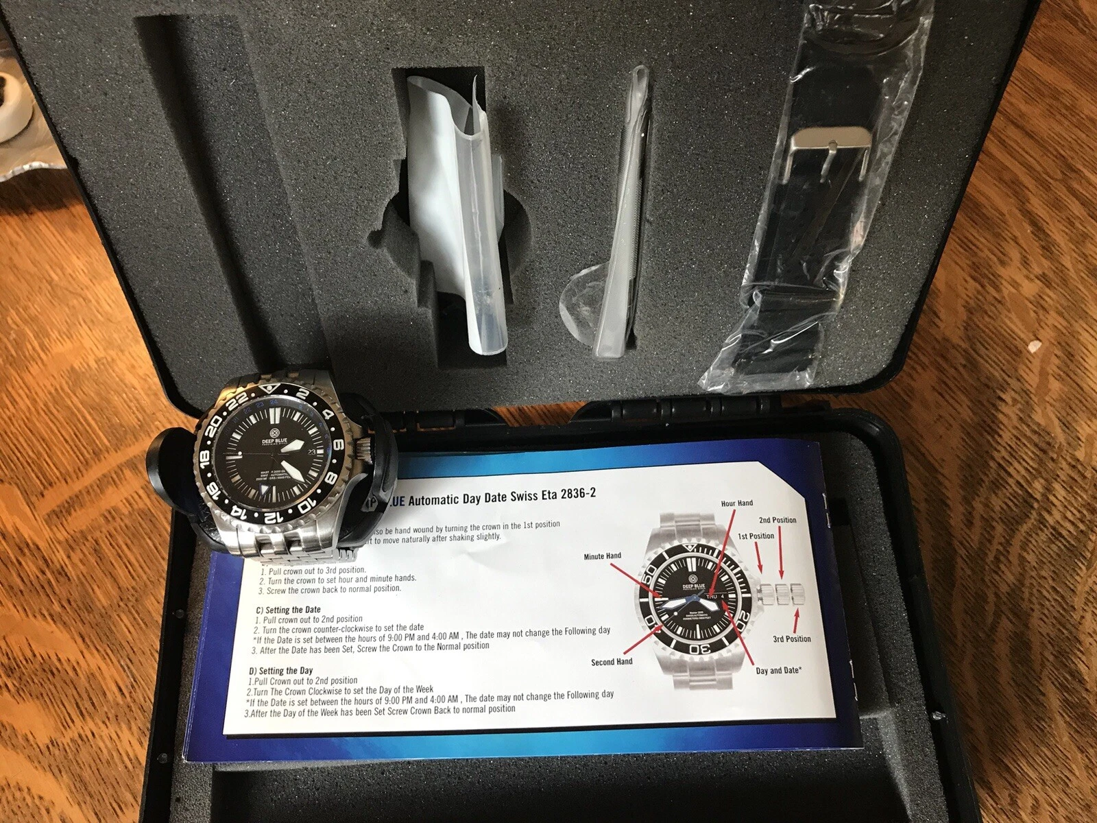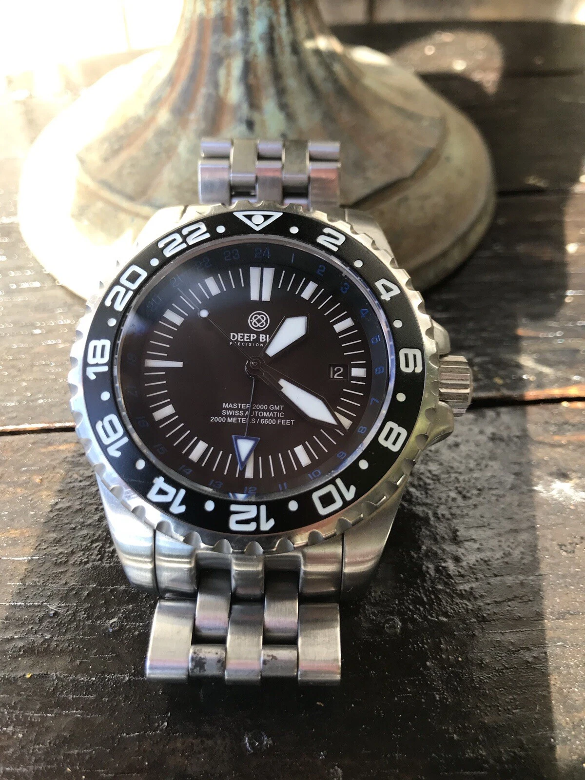 Deep Blue Dive Watch Master 2000 GMT Daynight T-100 Tritium Automatic