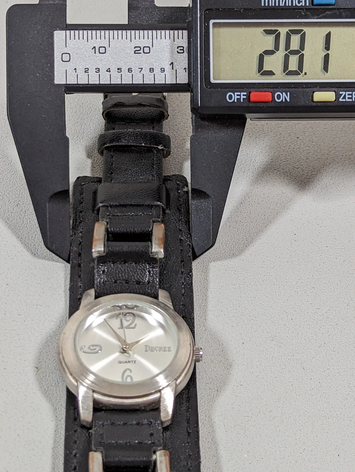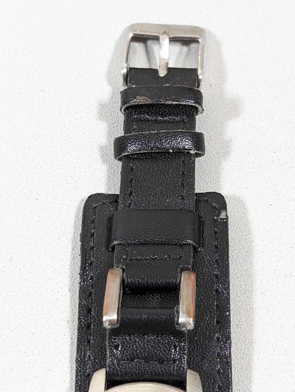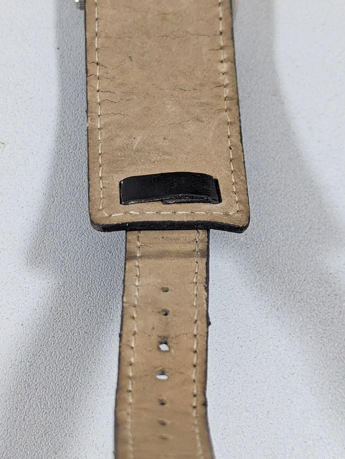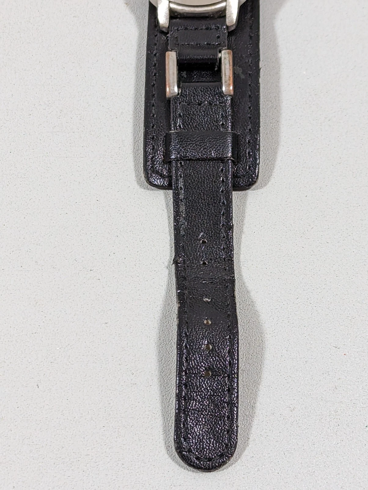 Decree Silver Tone Round Case Black Faux Leather Band Watch