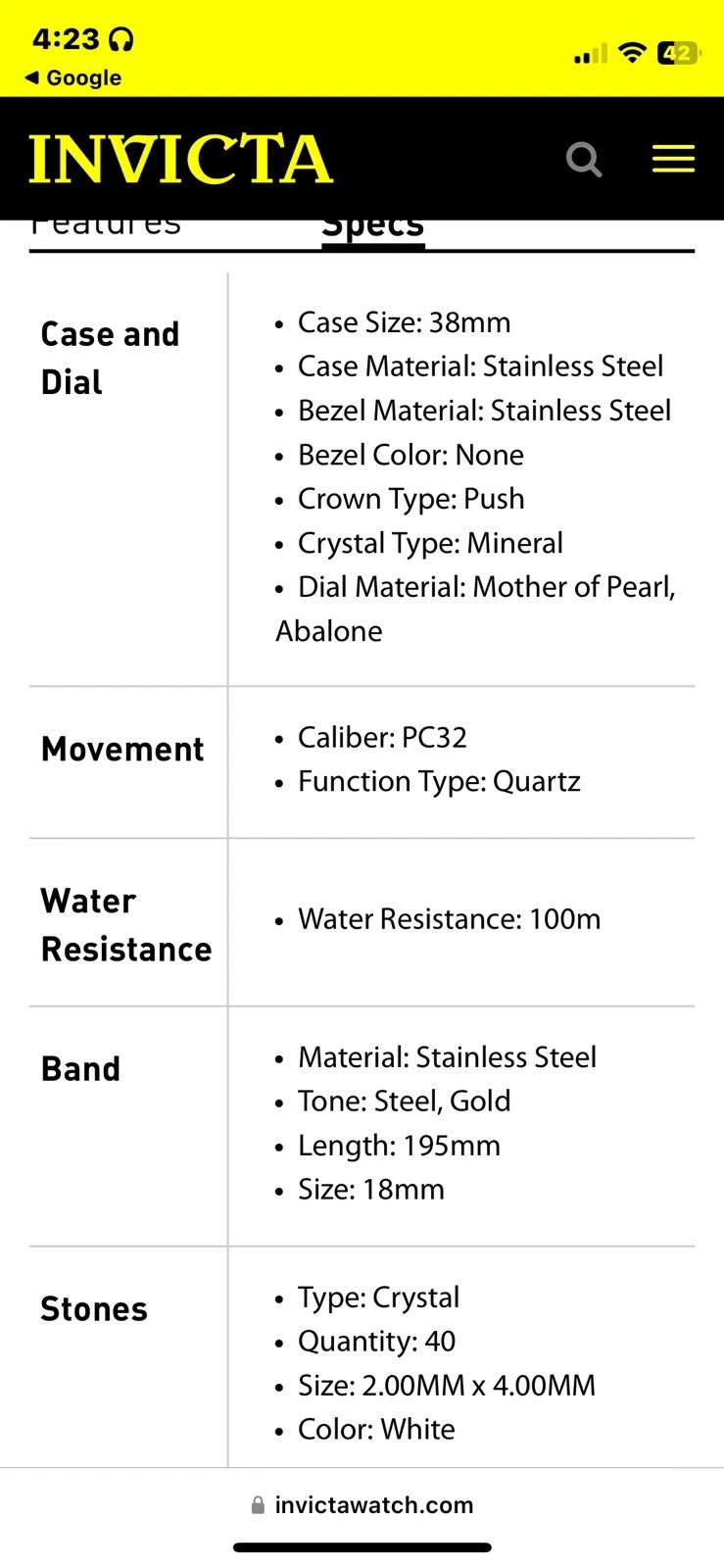 Invicta Women's Watch Angel 36975 Quartz Mother of Pearl Dial Two Tone Steel