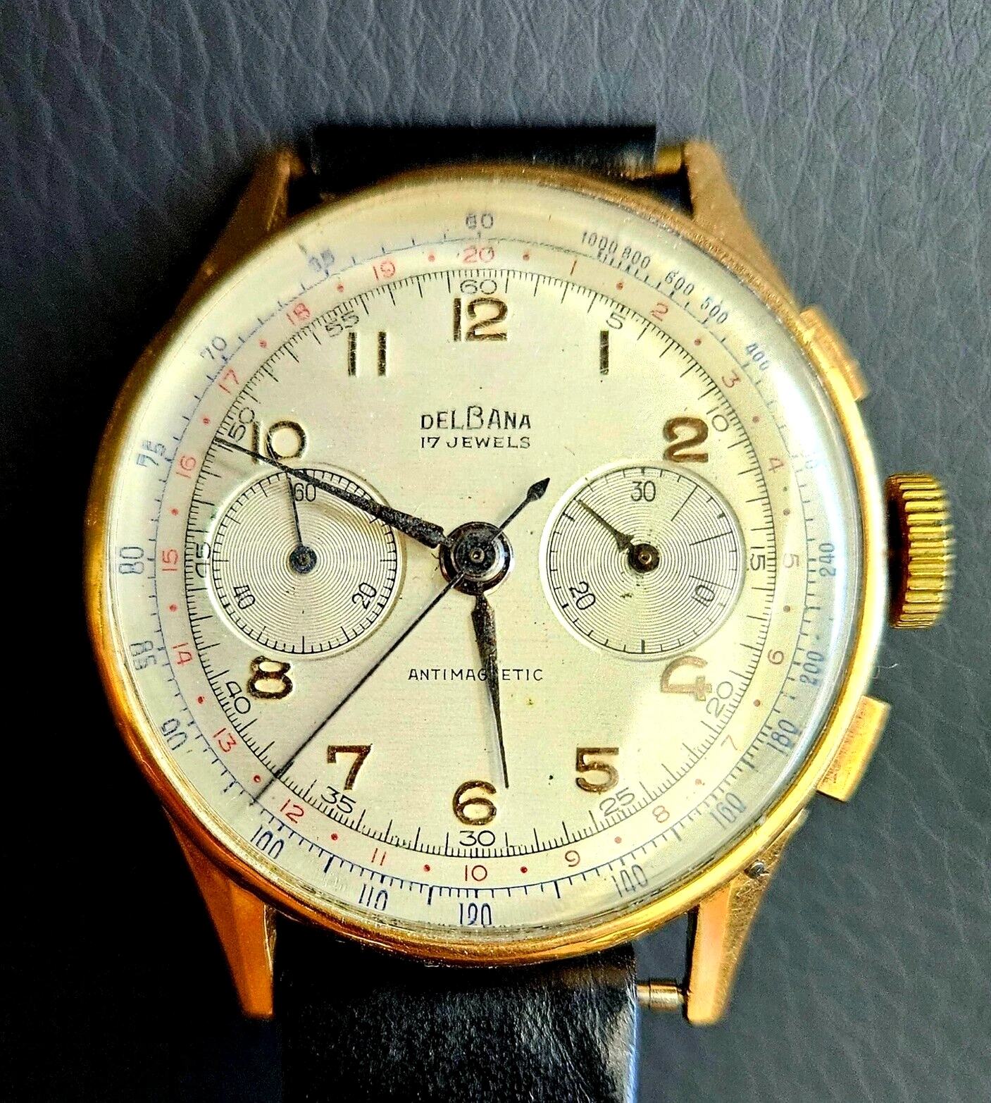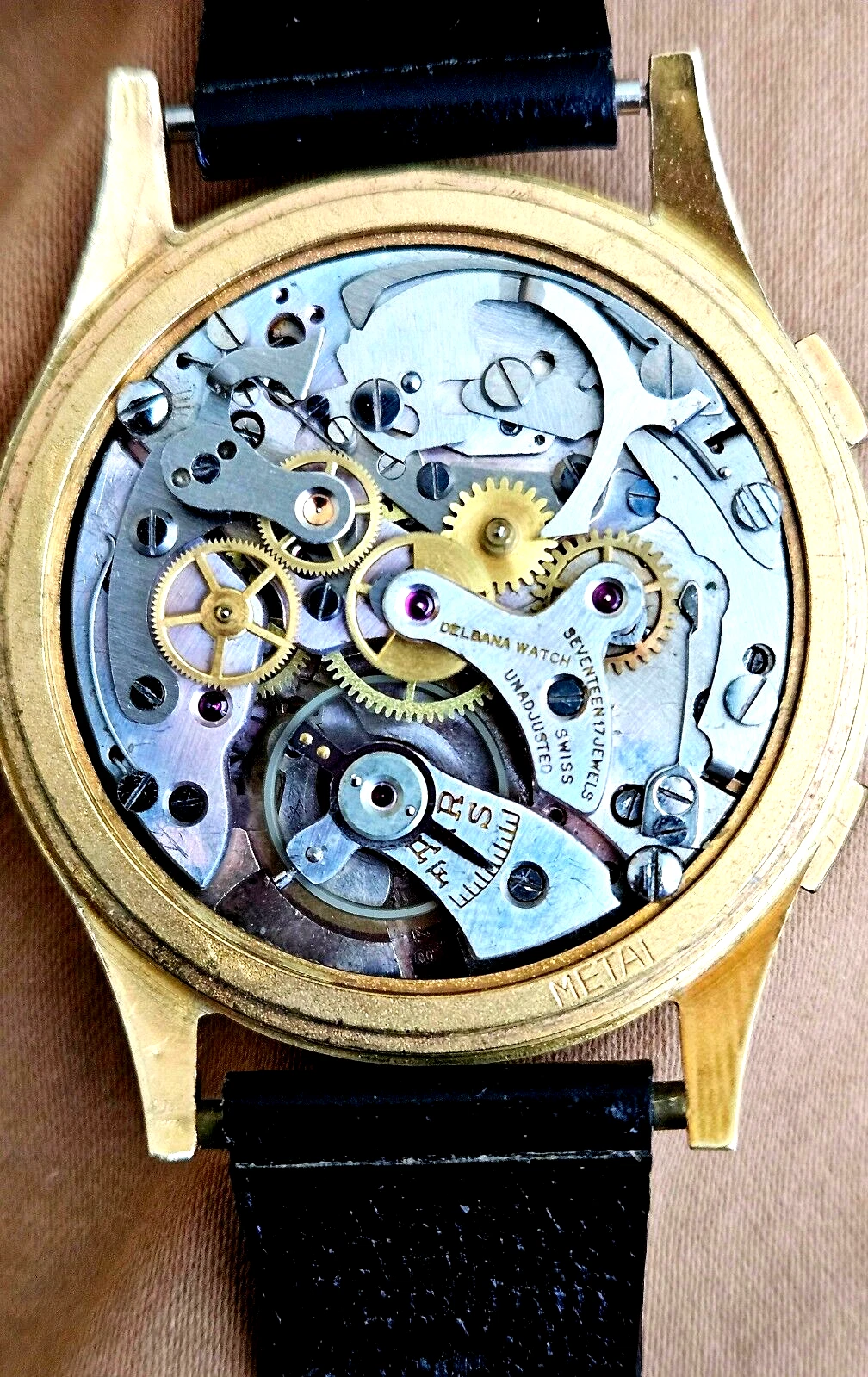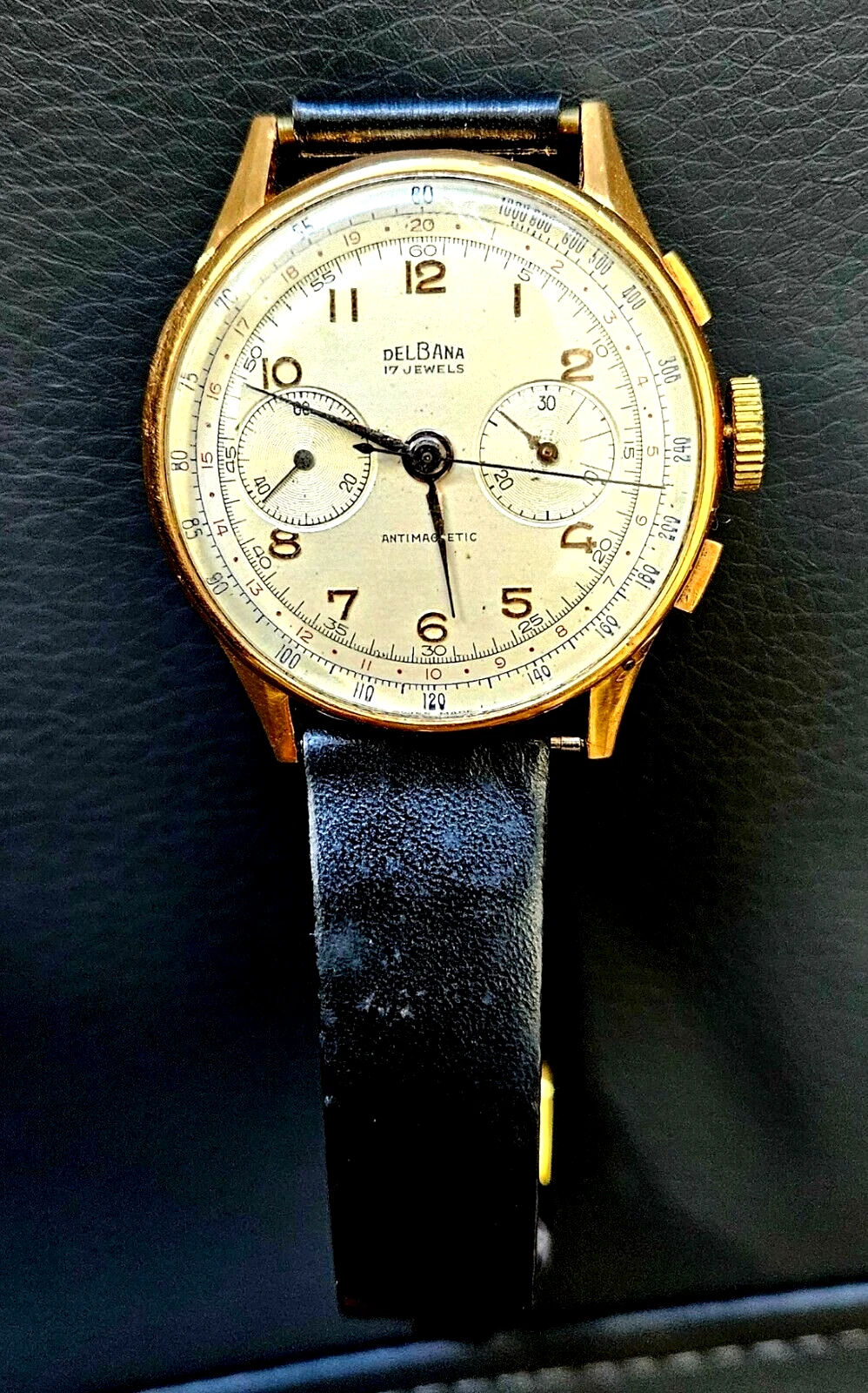 Vintage Delbana mens 18 kt gold case back manual working watch