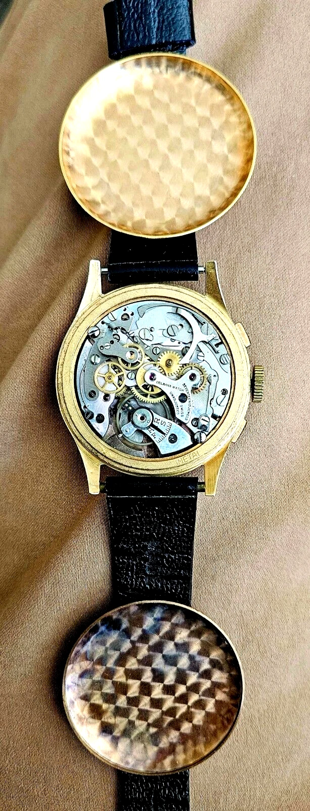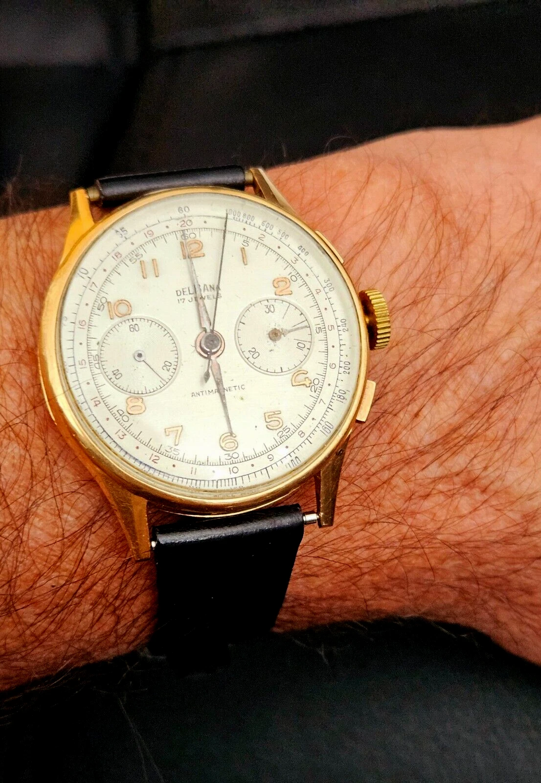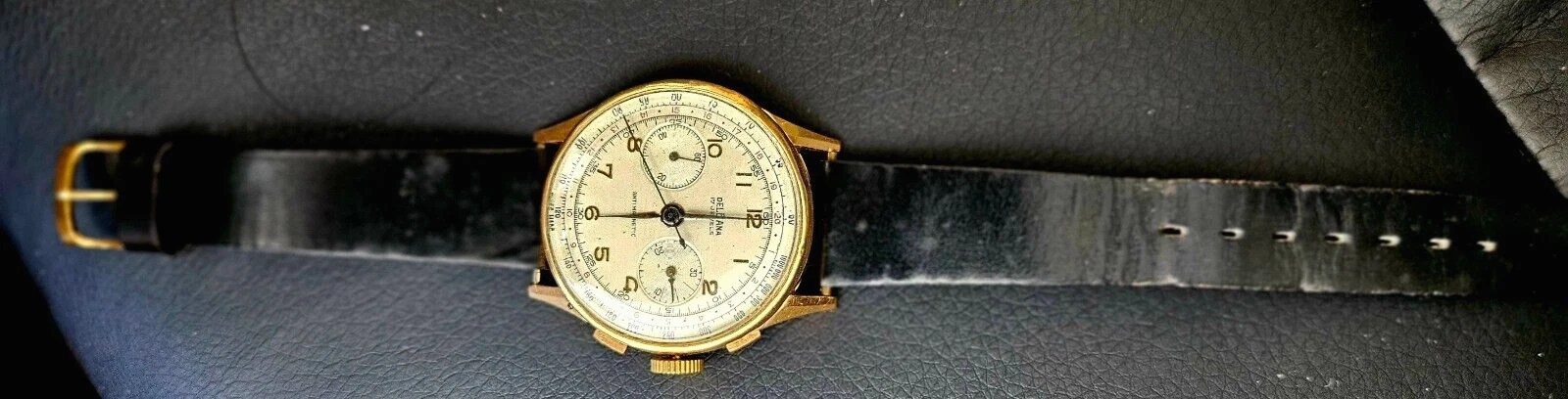 Vintage Delbana mens 18 kt gold case back manual working watch