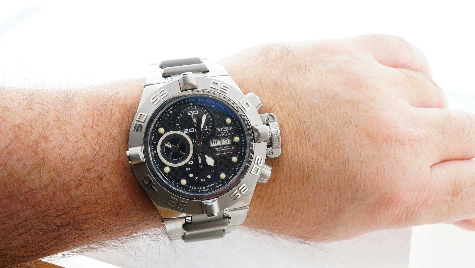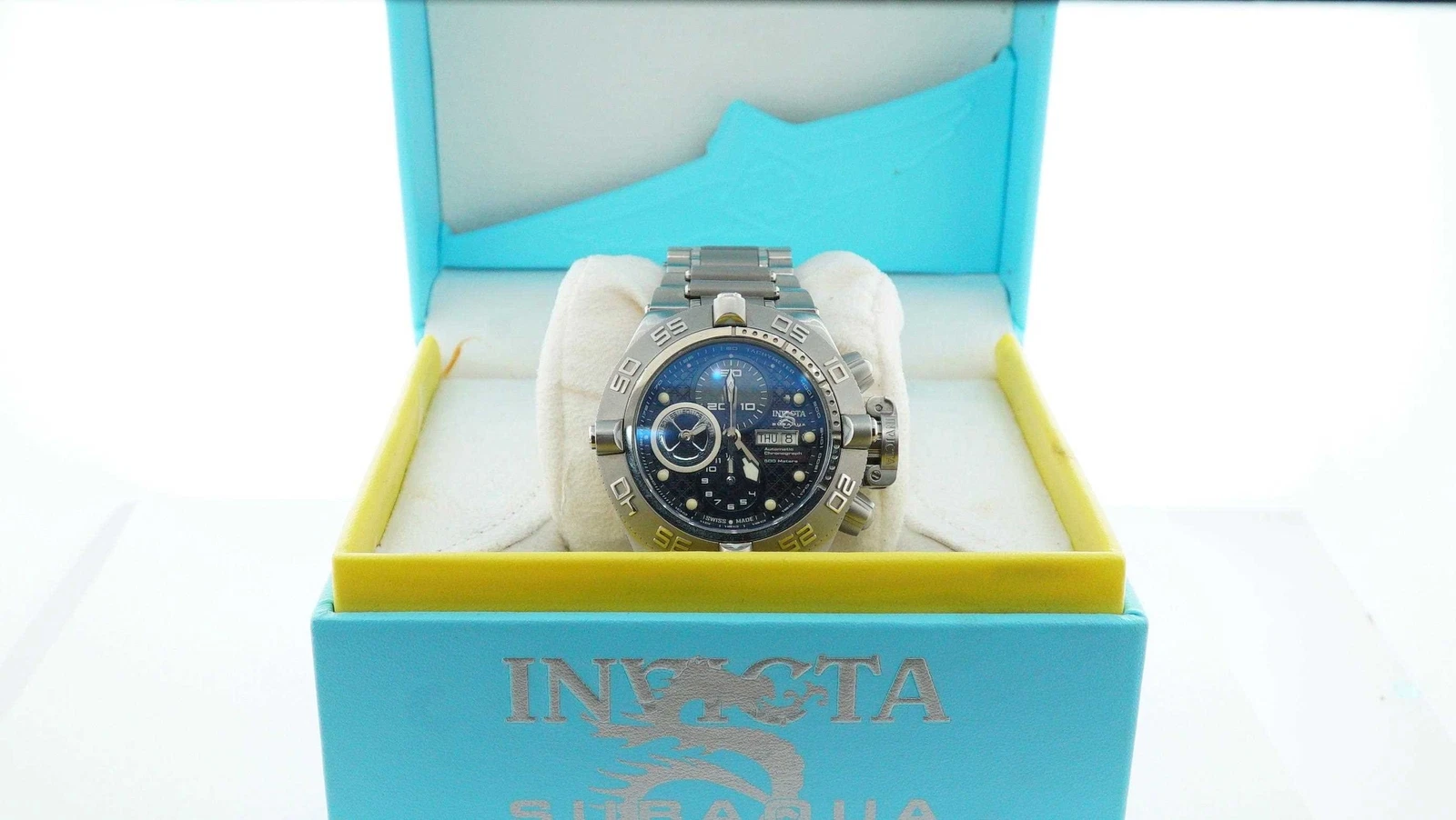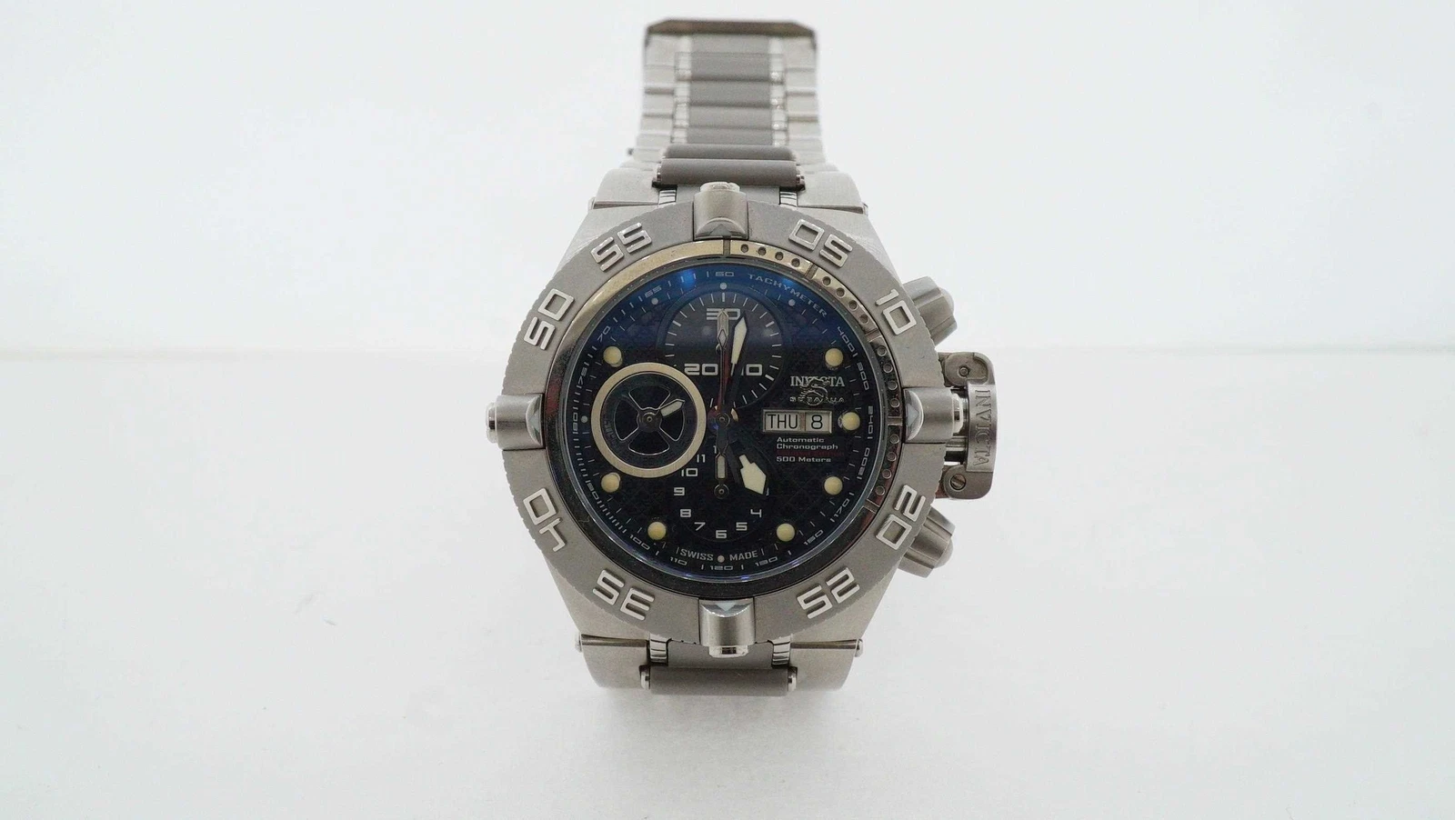 Estate Sale Invicta Men's Stainless Steel Bracelet Wristwatch 50mm - Black Dial