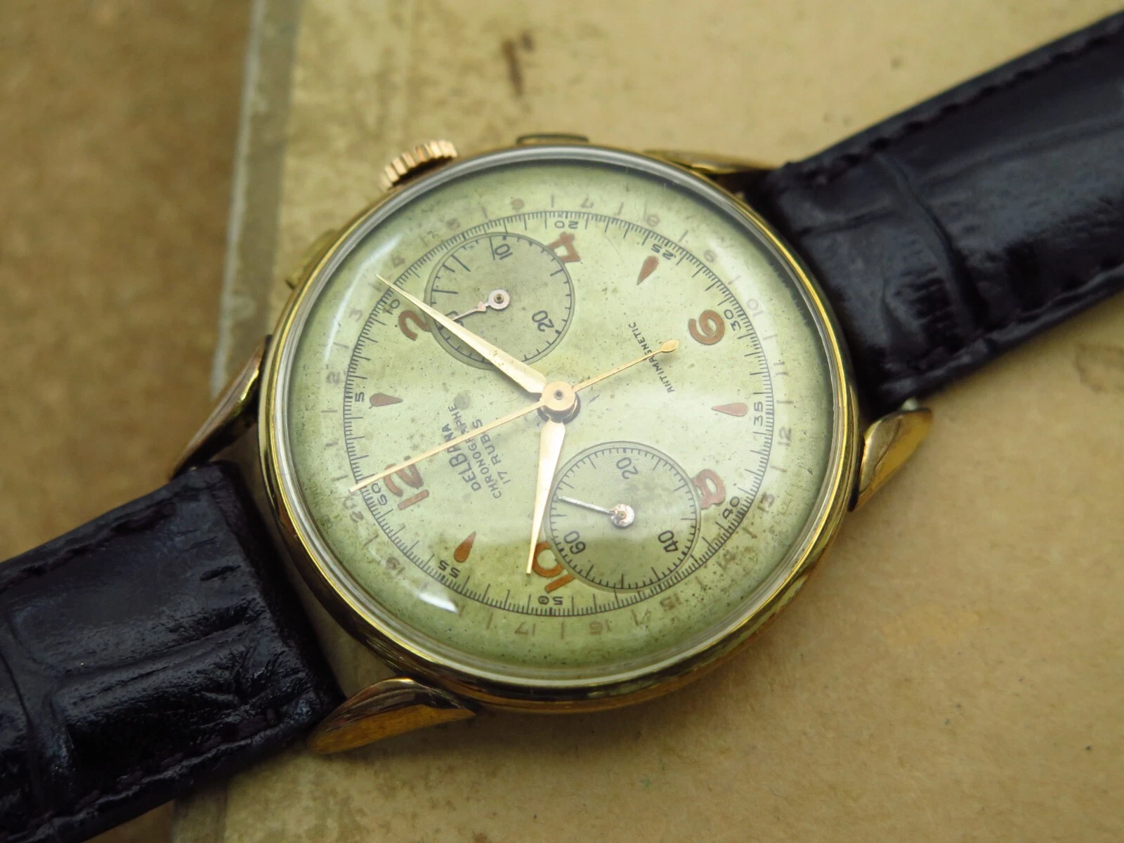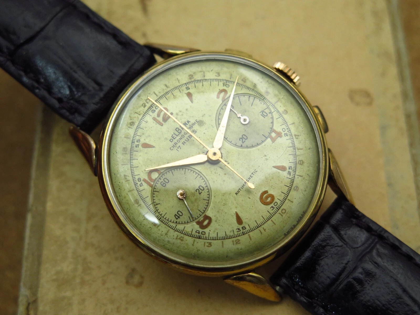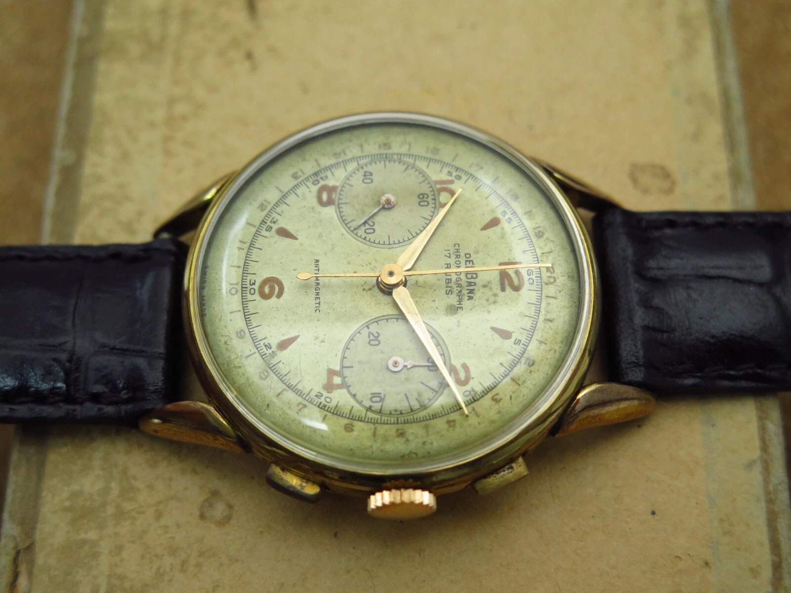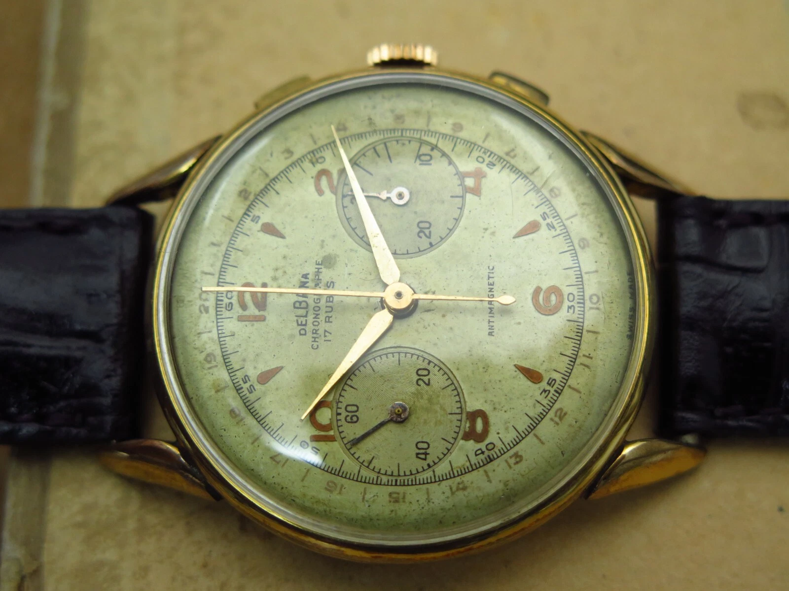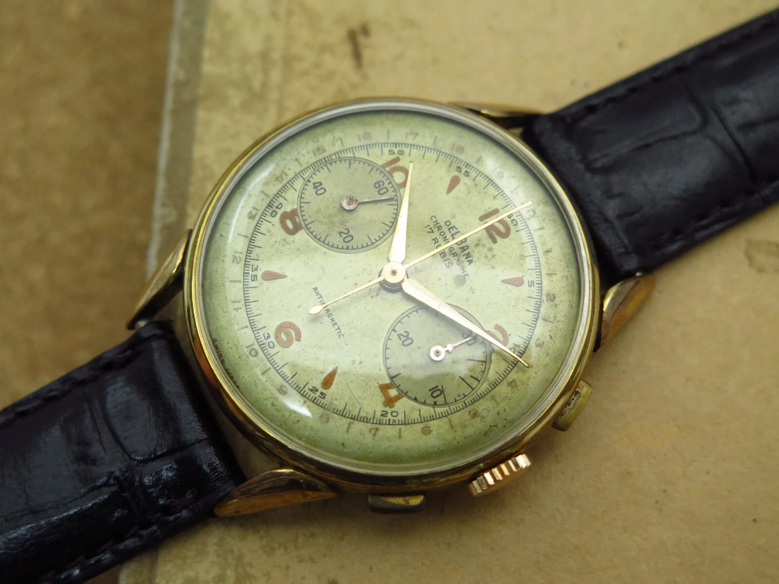 Vintage mens Delbana manual wind chronograph fancy lugs VENUS 175 movement!!!