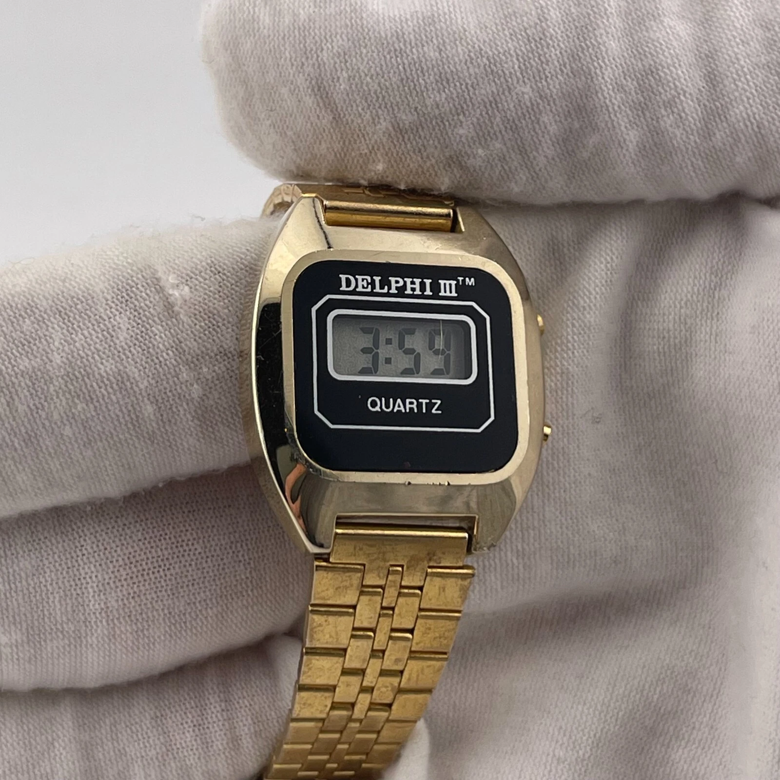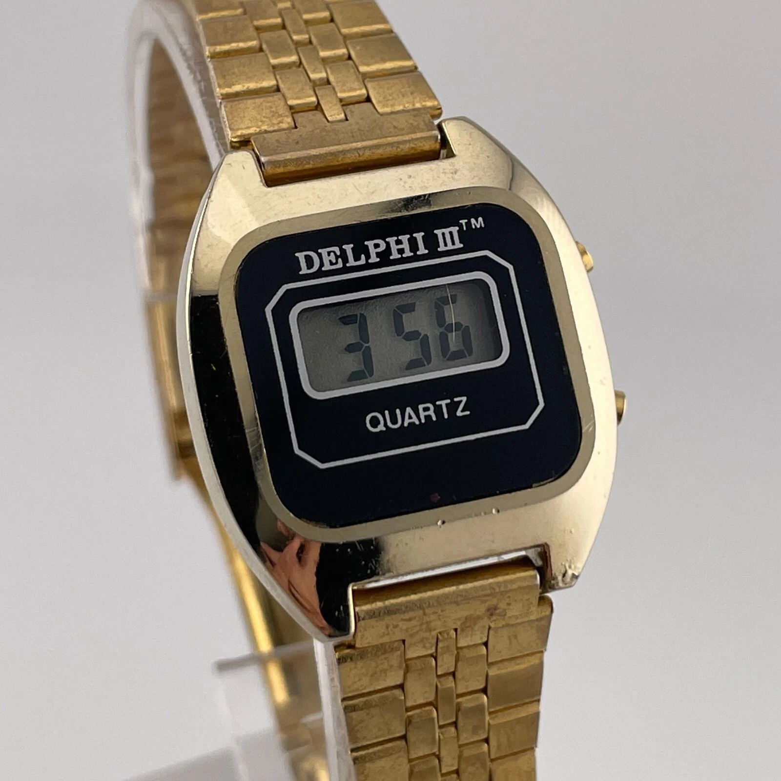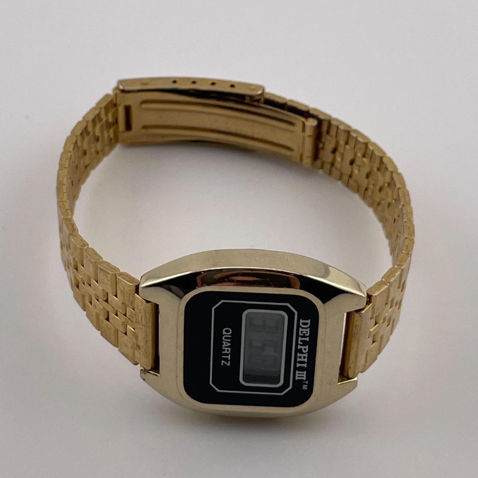 Delphi III Watch Unisex Digital Month Date 26mm Gold Tone Case Band