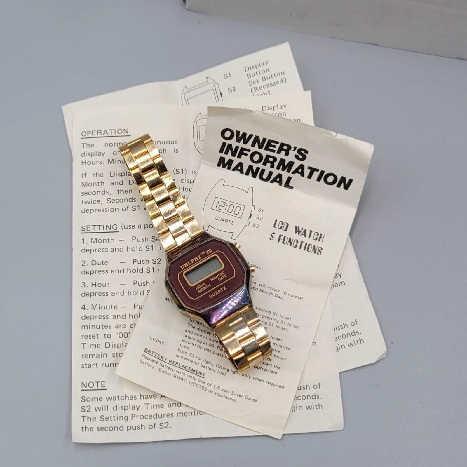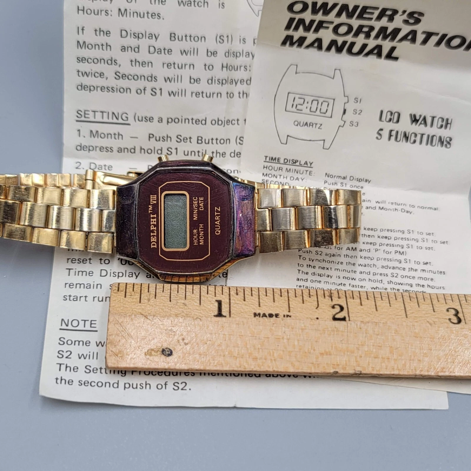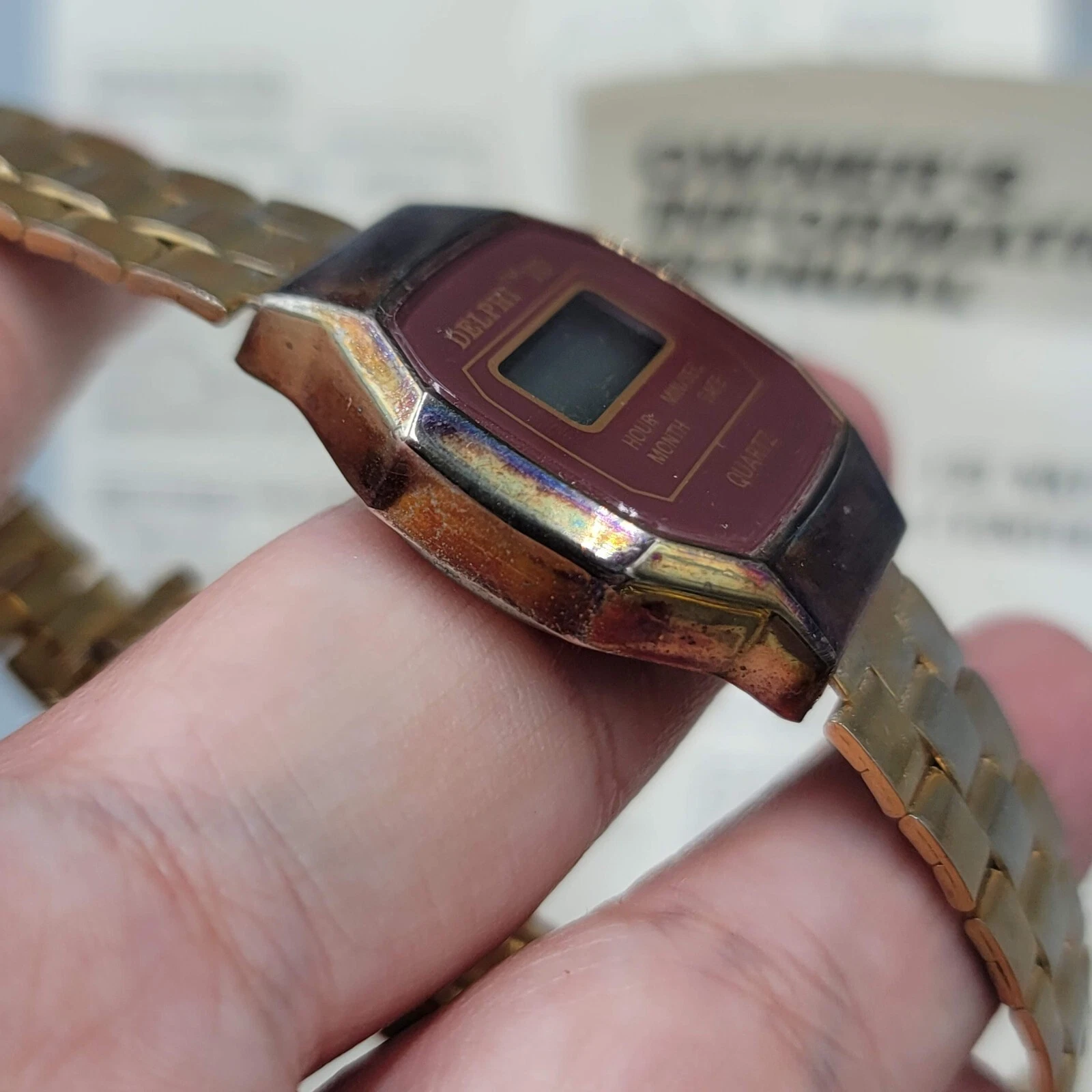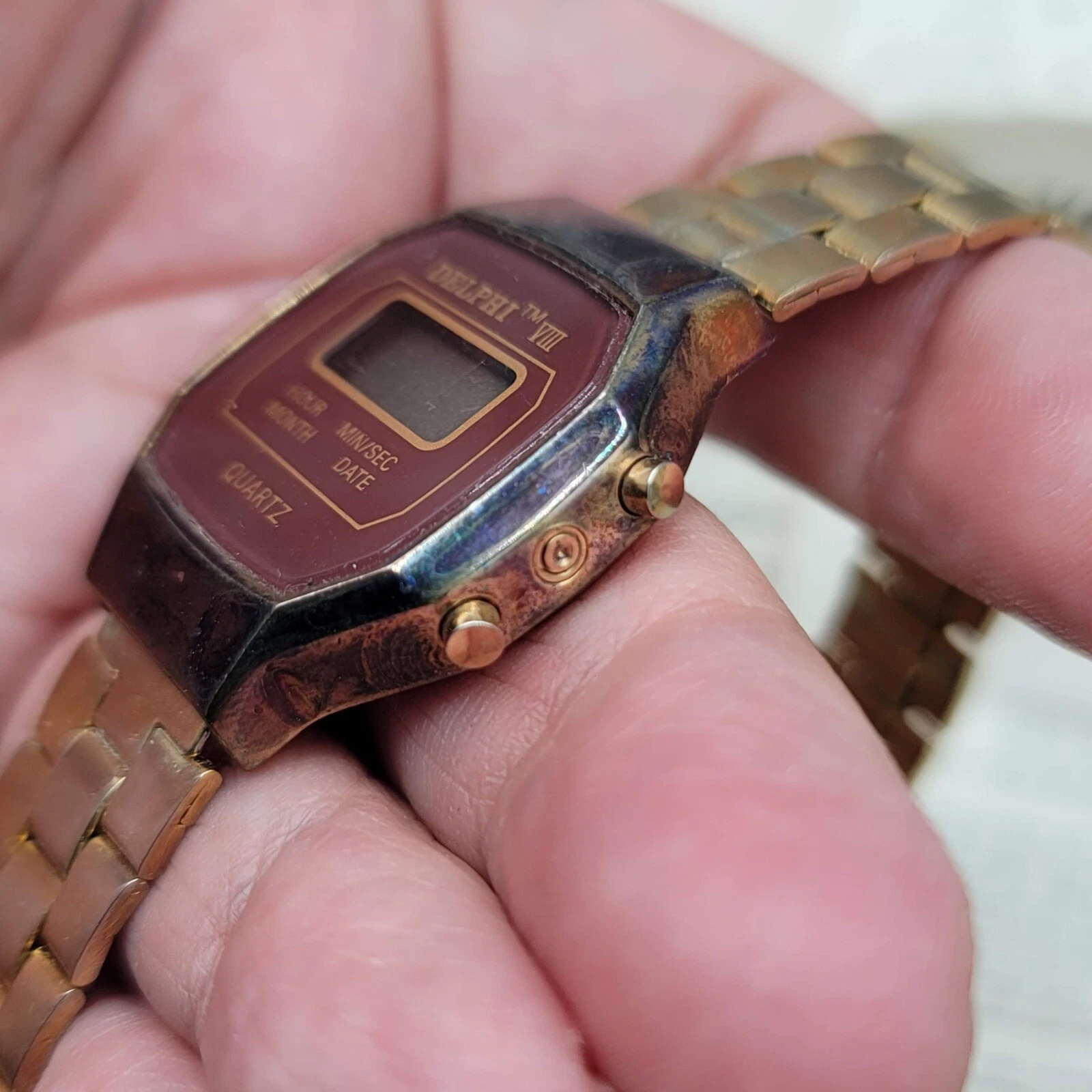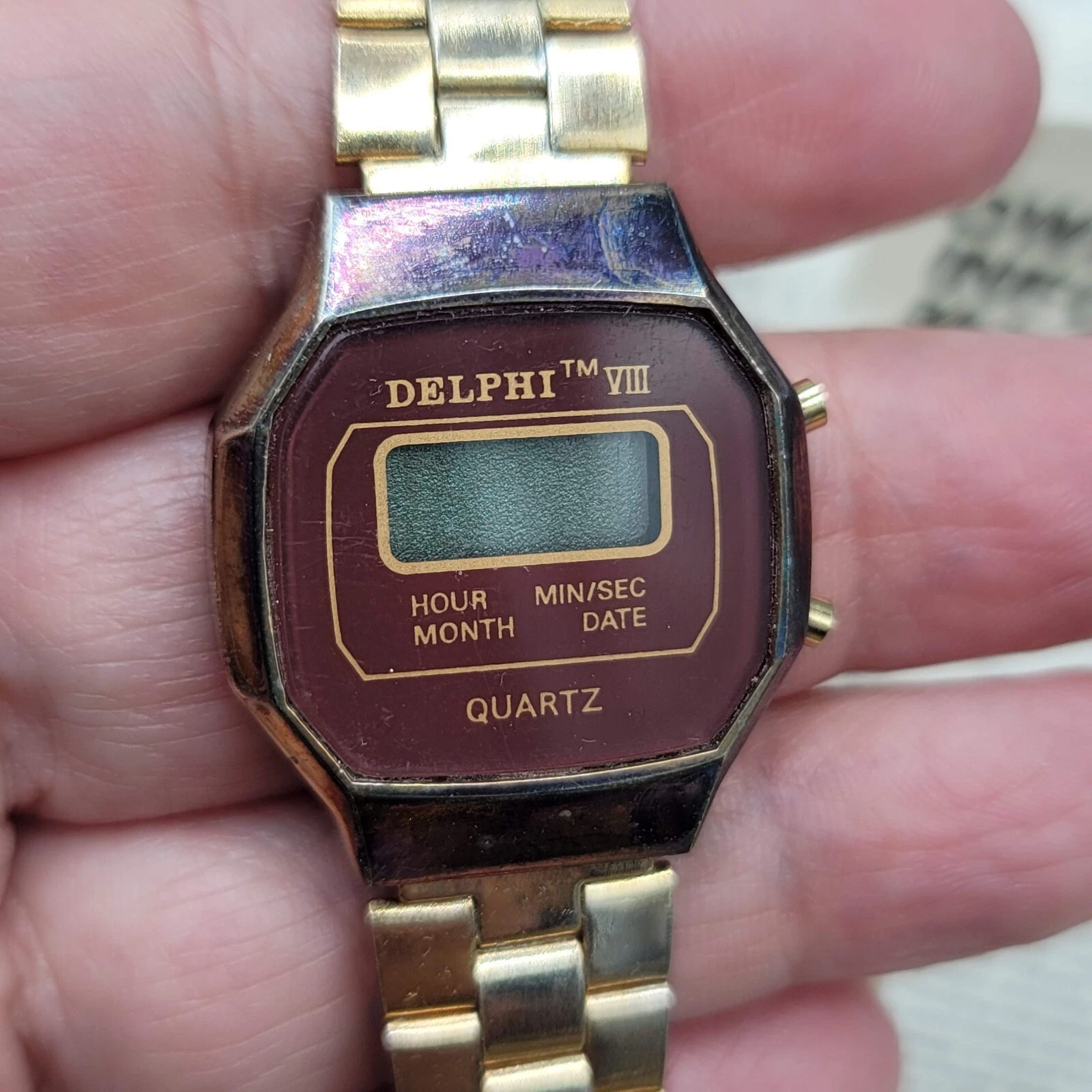 Vintage DELPHI VIII Mens Gold LCD Digital Hong Kong Watch Untested