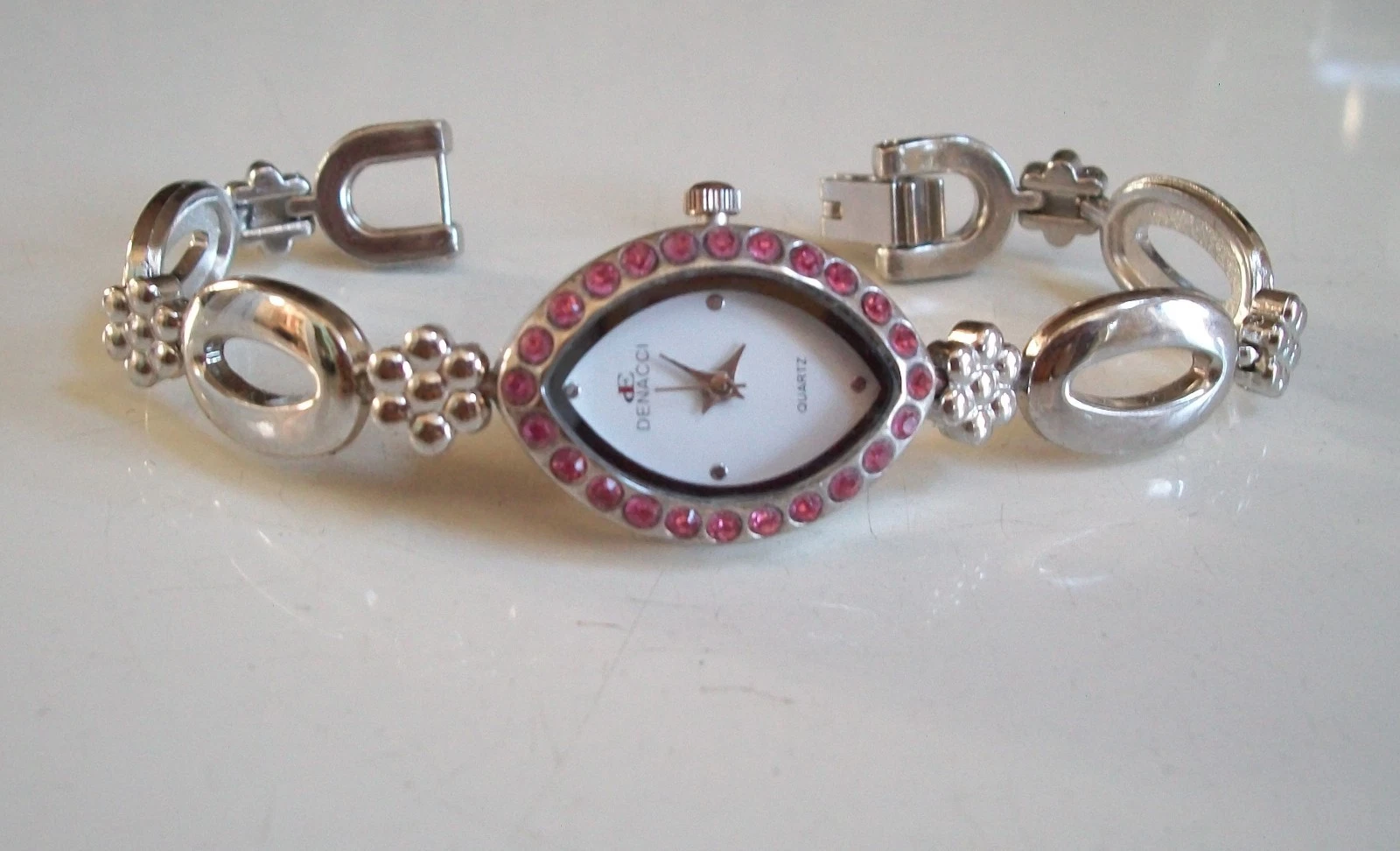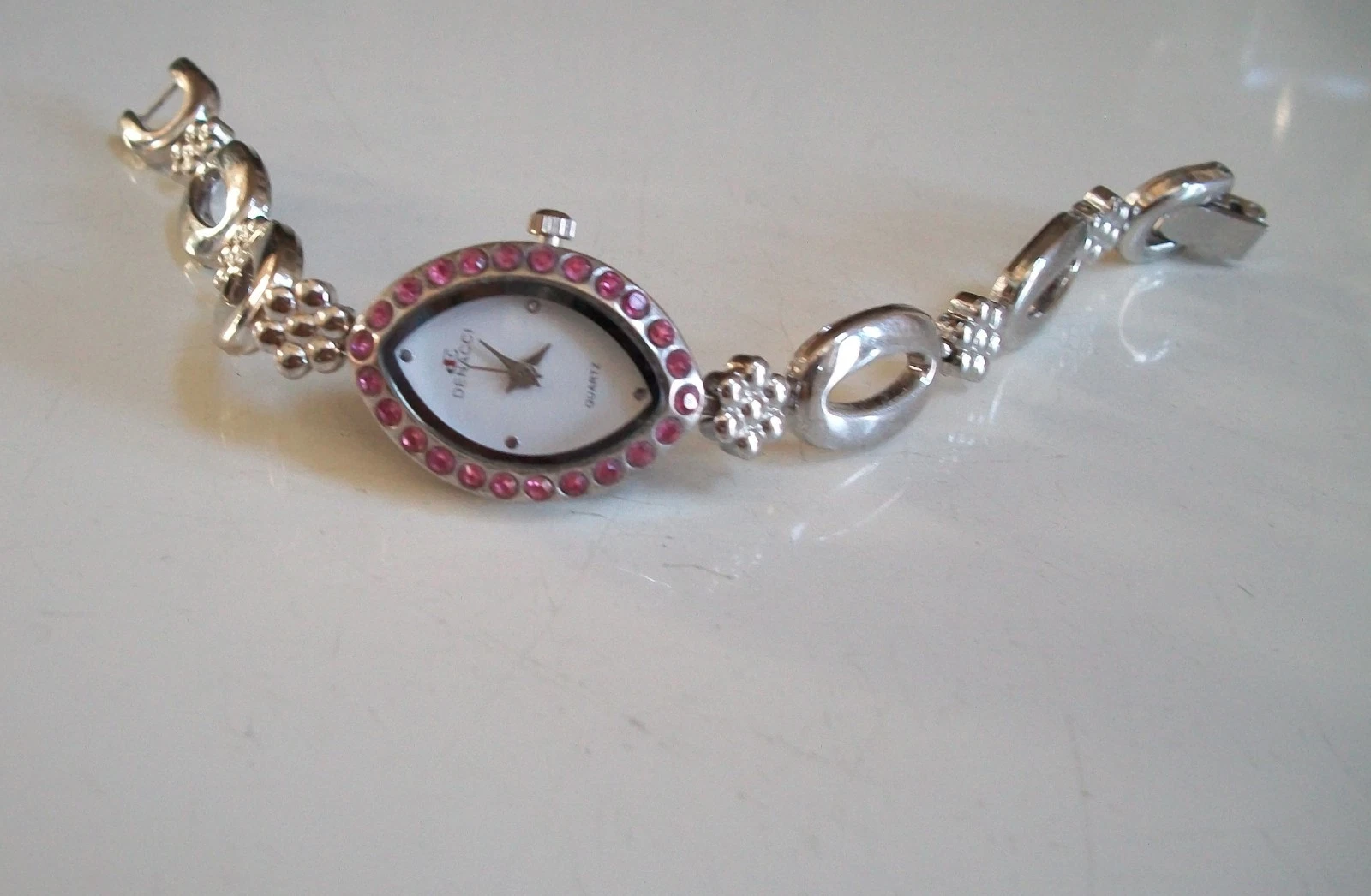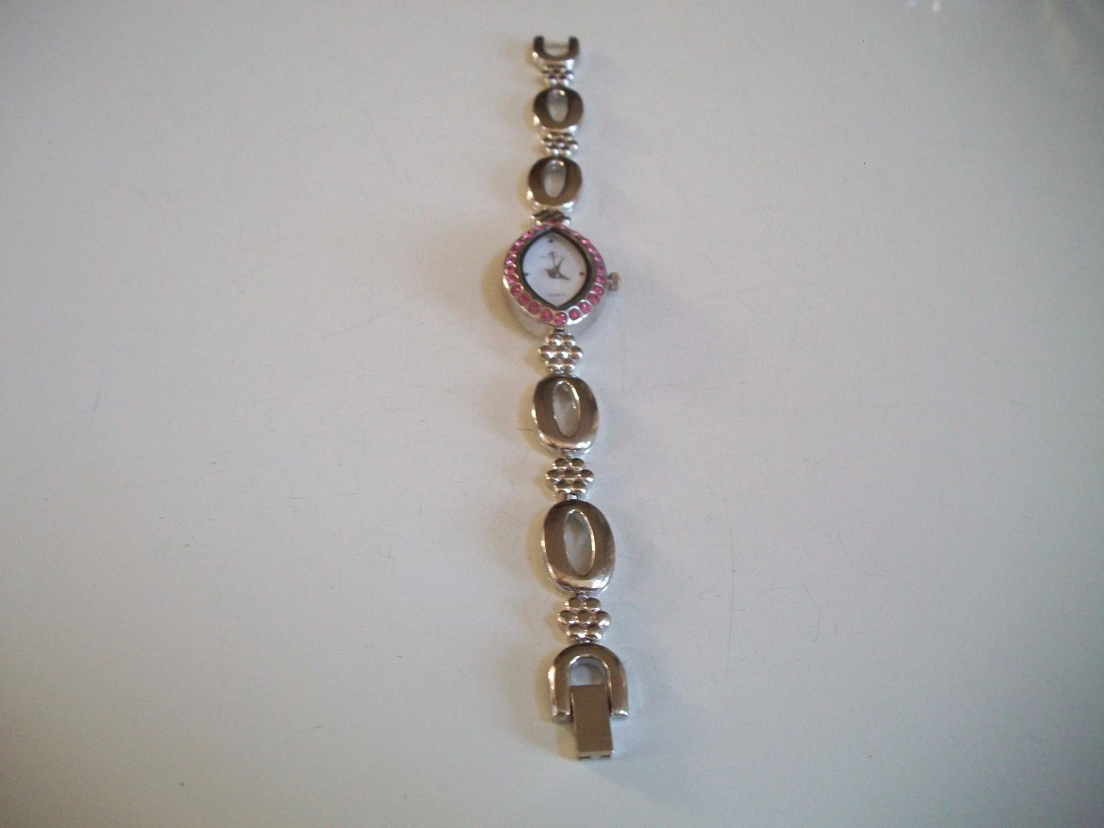 Fashion dressy casual silver finish with pink rhinestone women's watch