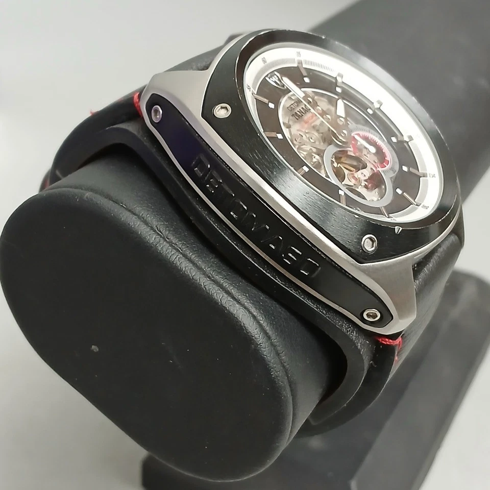 Detomaso Tanagro DT2042 Automatic Wrist Watch Skeleton Dial Black Boxed -CP