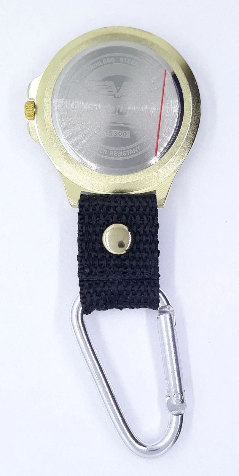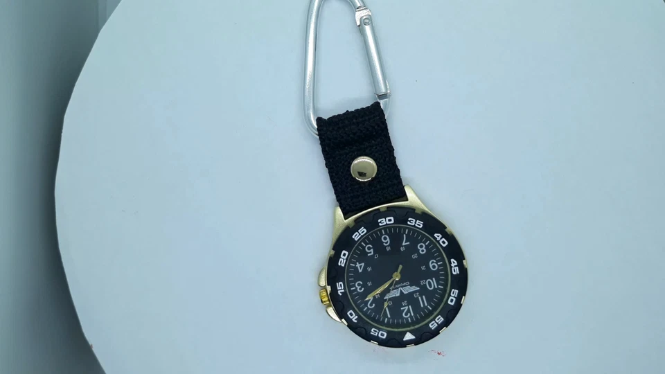 Deporte Gold Tone Carbiner Clip-on Sport Watch With Black Nylon Fob