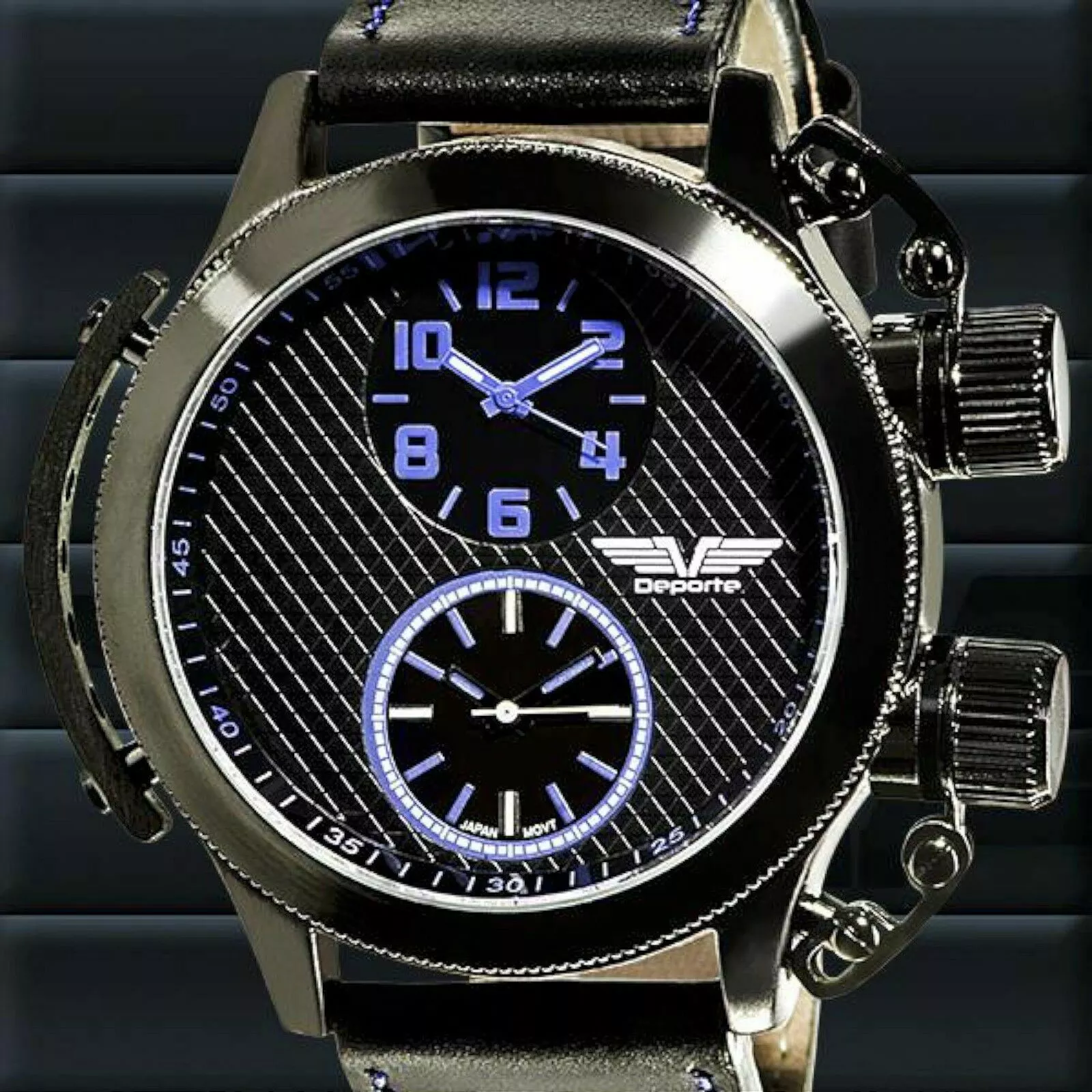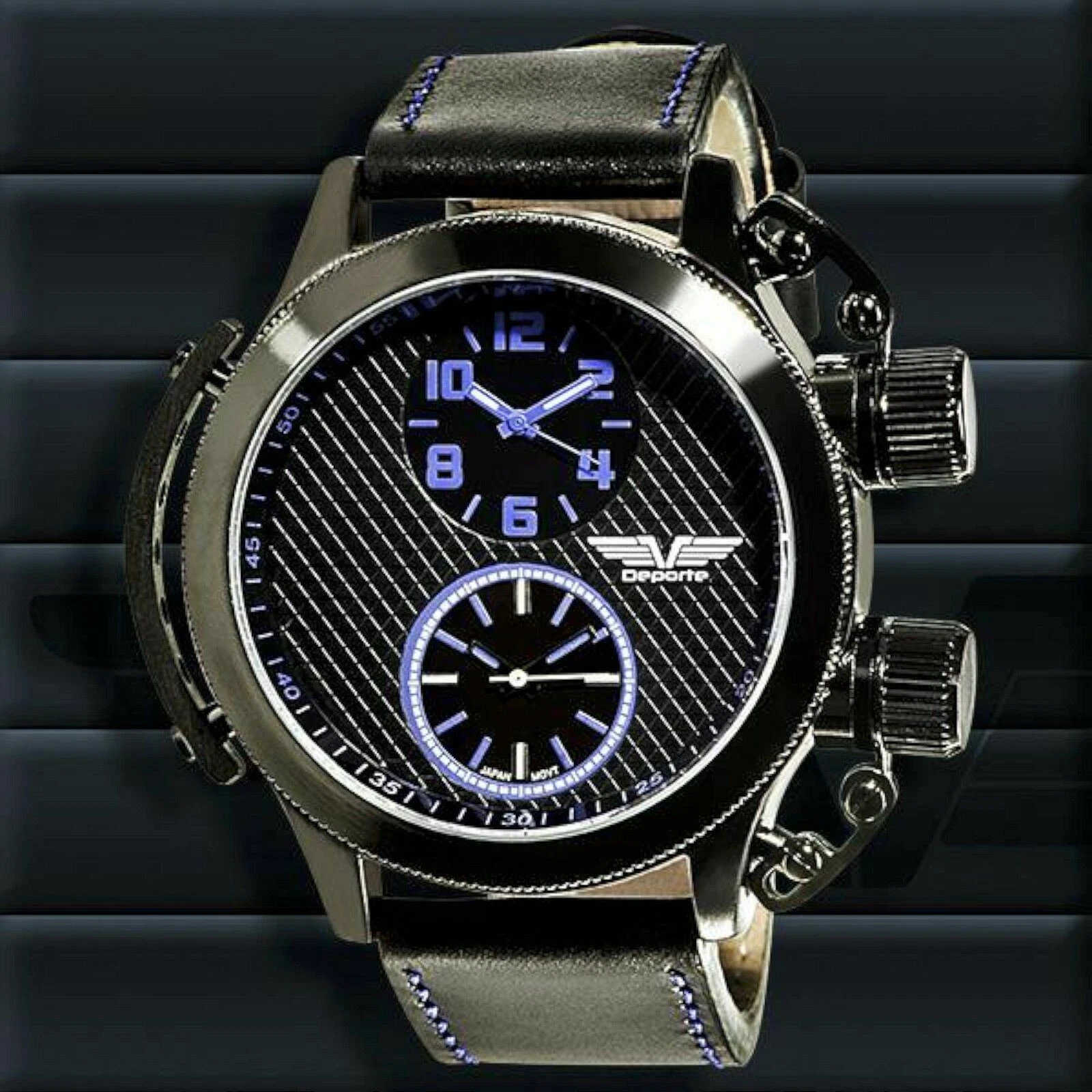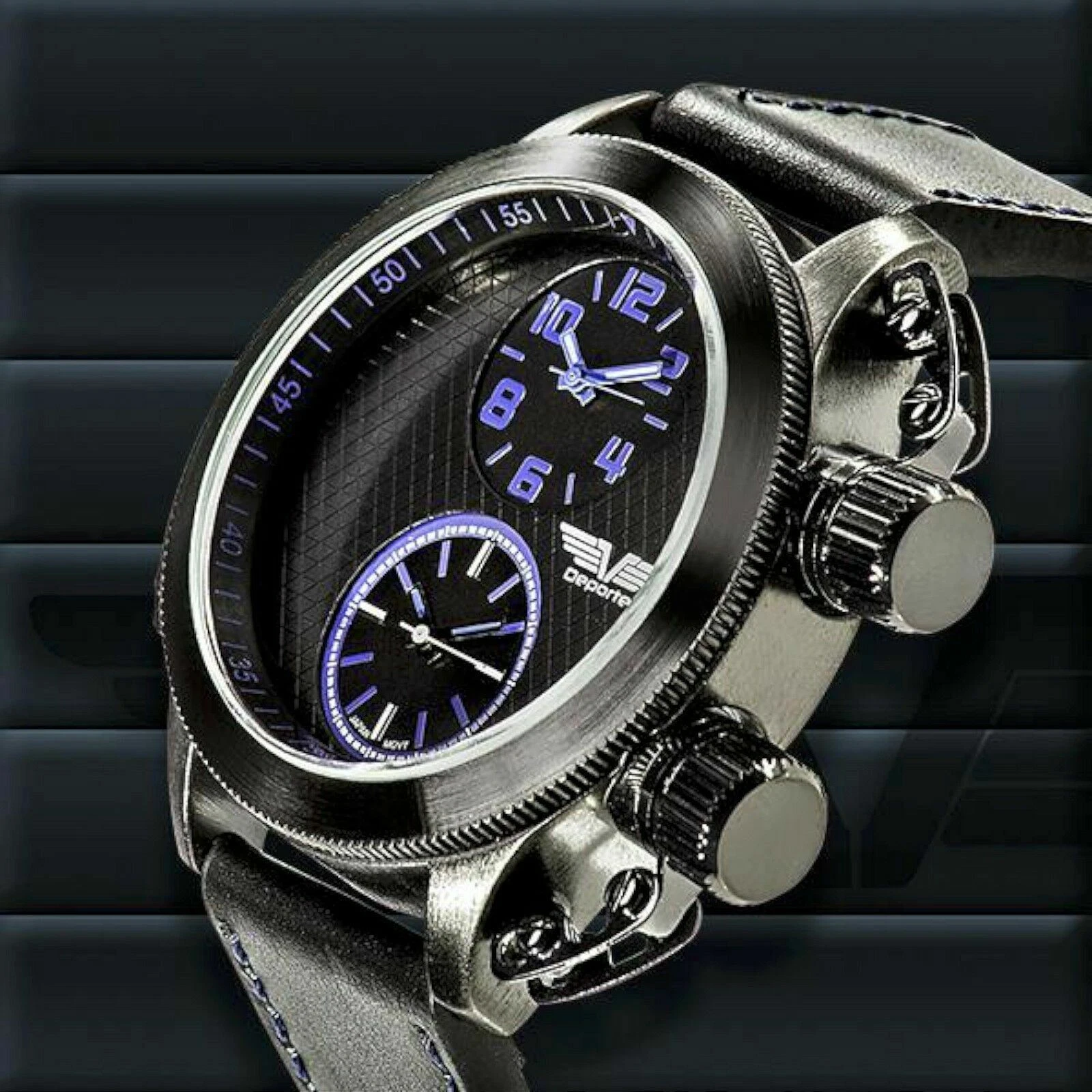 NEW Deporte 9830-BLU Men's Sutton Watch SS Case Dual Time Chronograph Blue