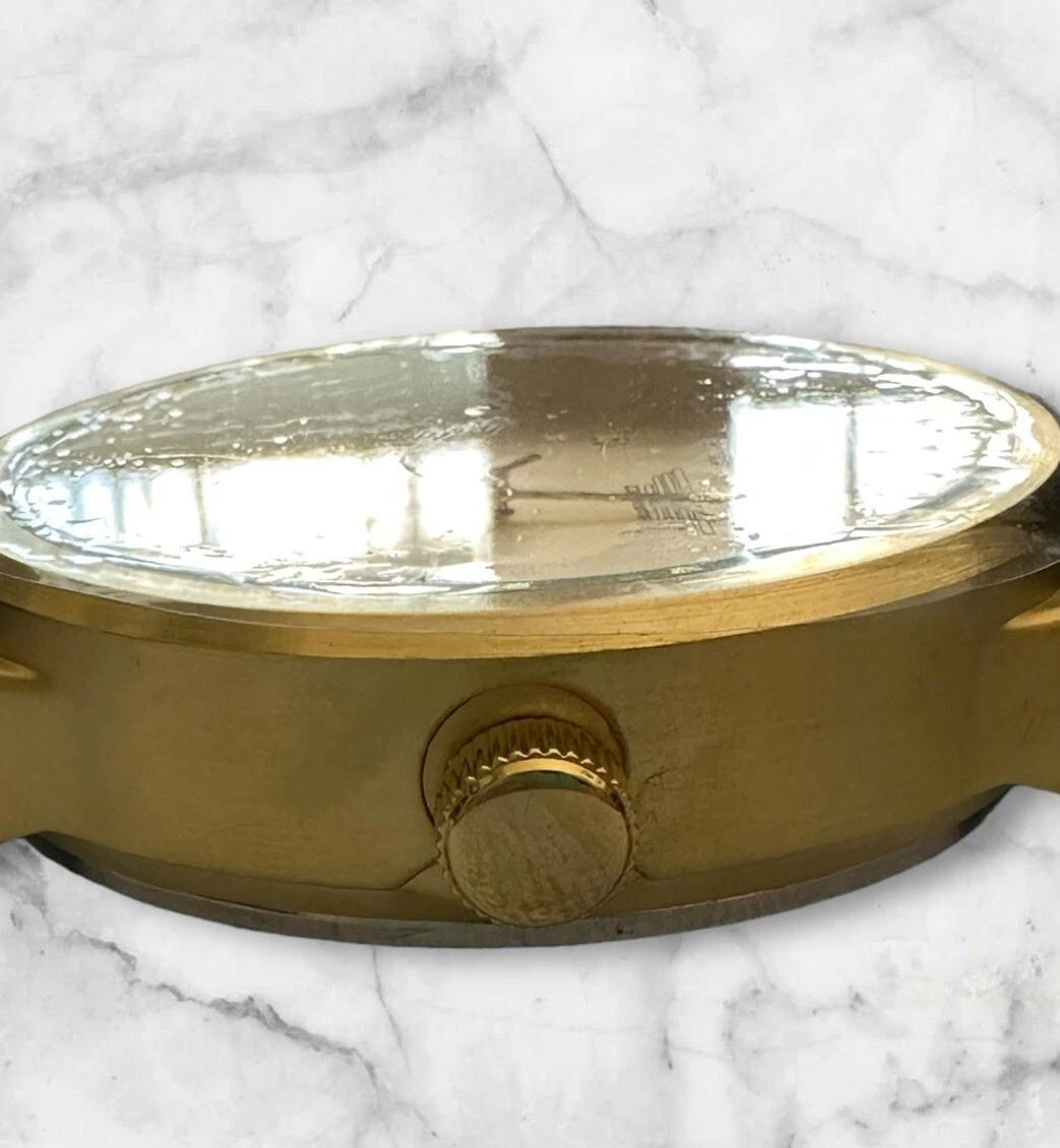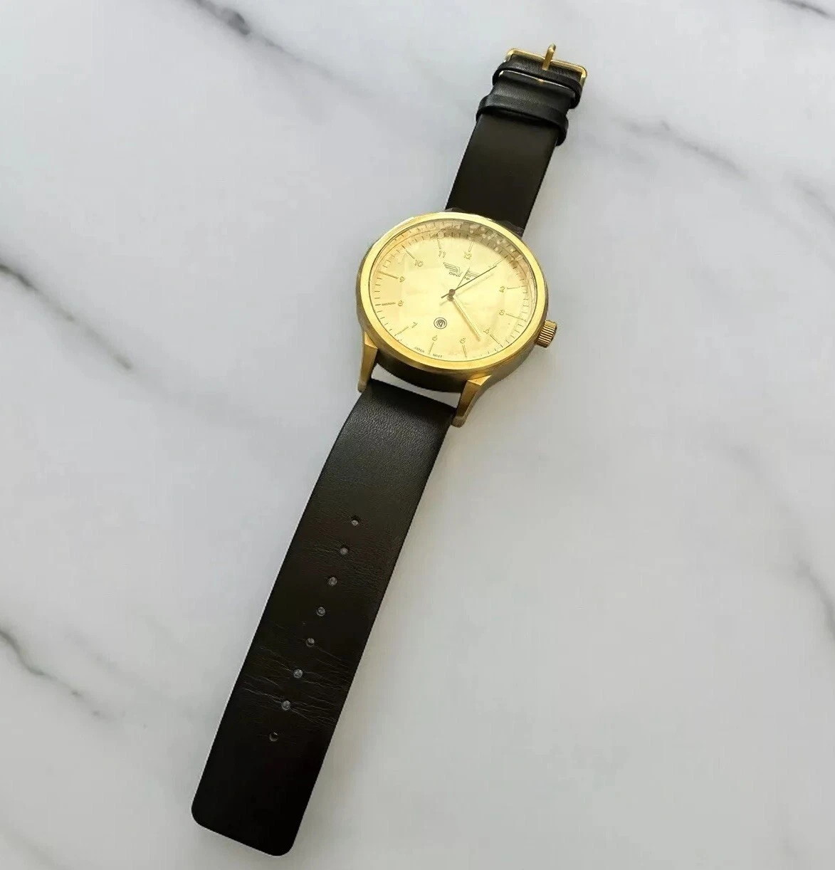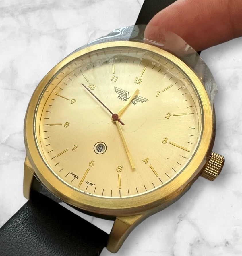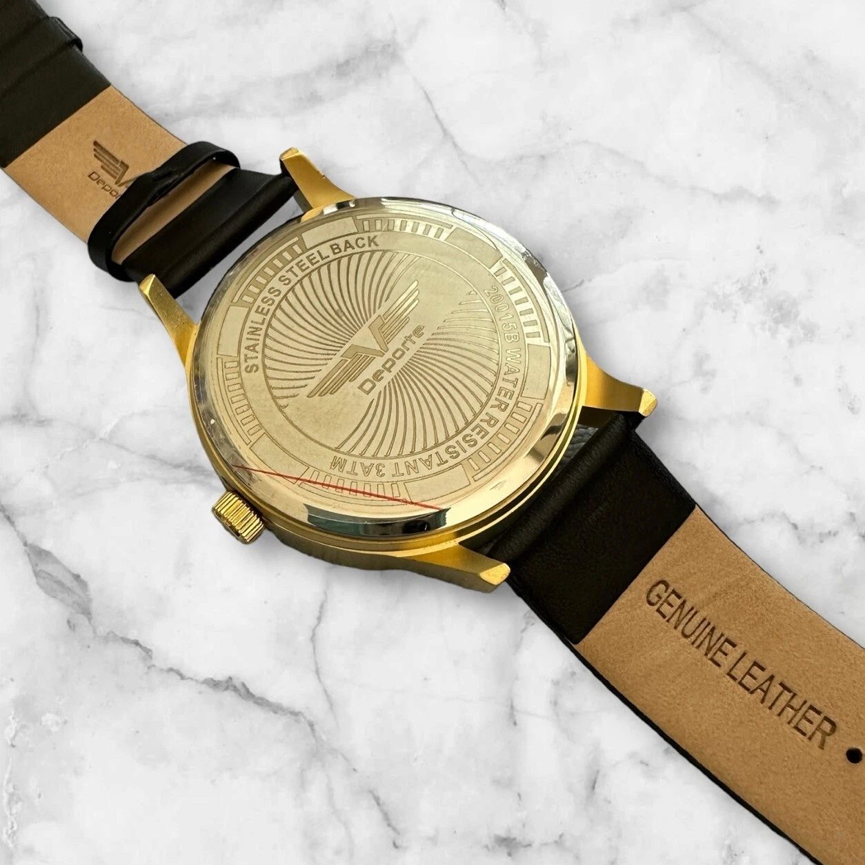 Deporte 20015B Men's Watch Gold Dial Gold Case Black Leather Band