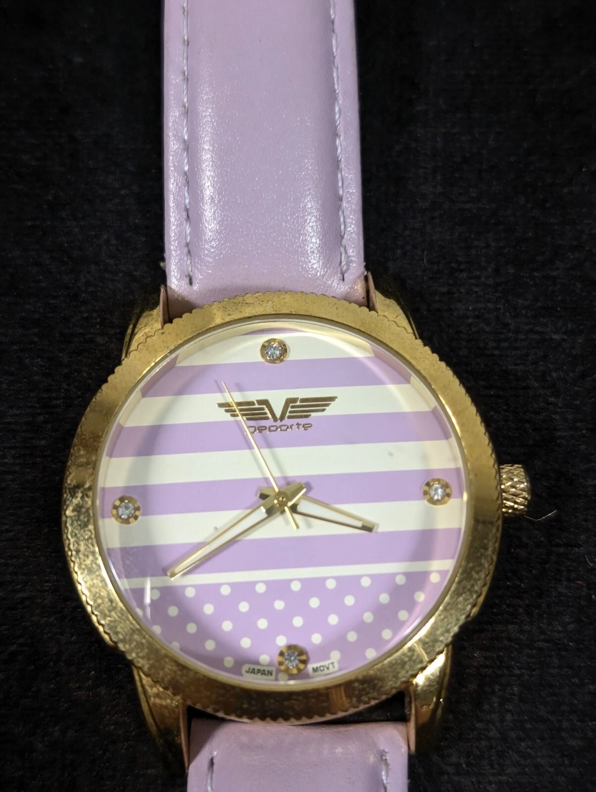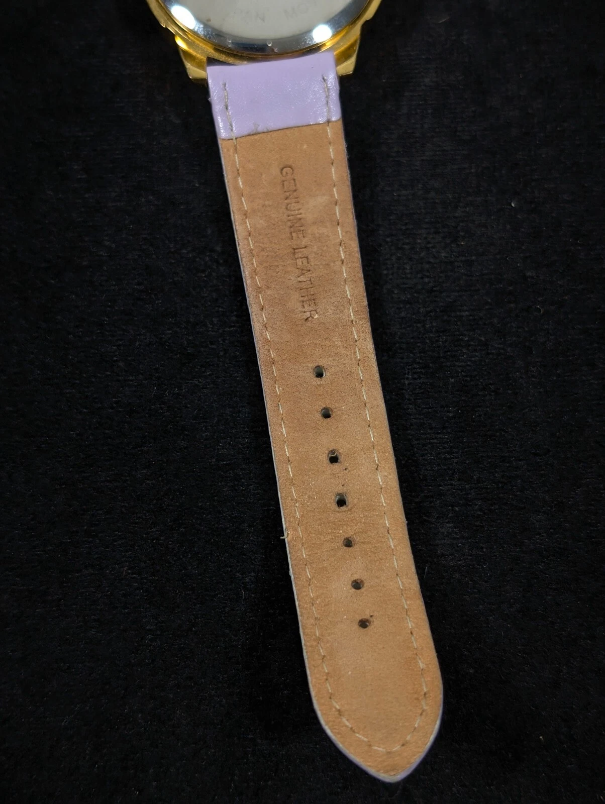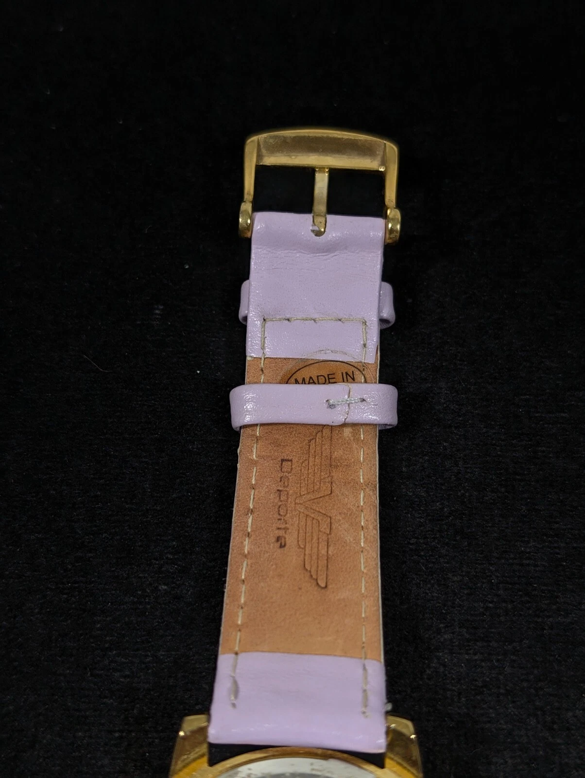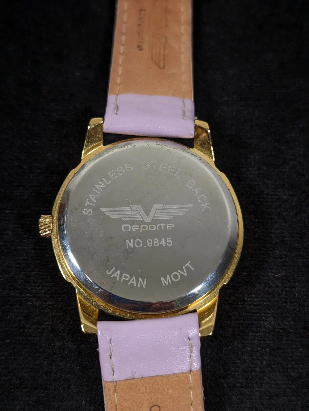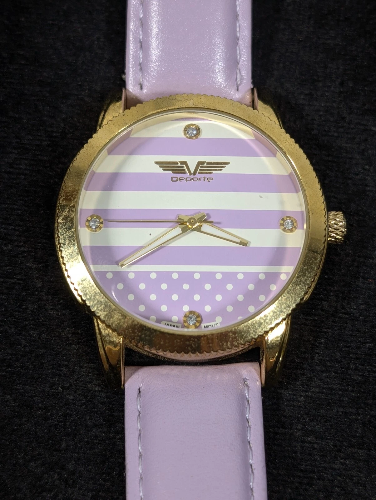 Deporte Womens Purple Leather Stripe Gold Tone Round Case Watch 40mm