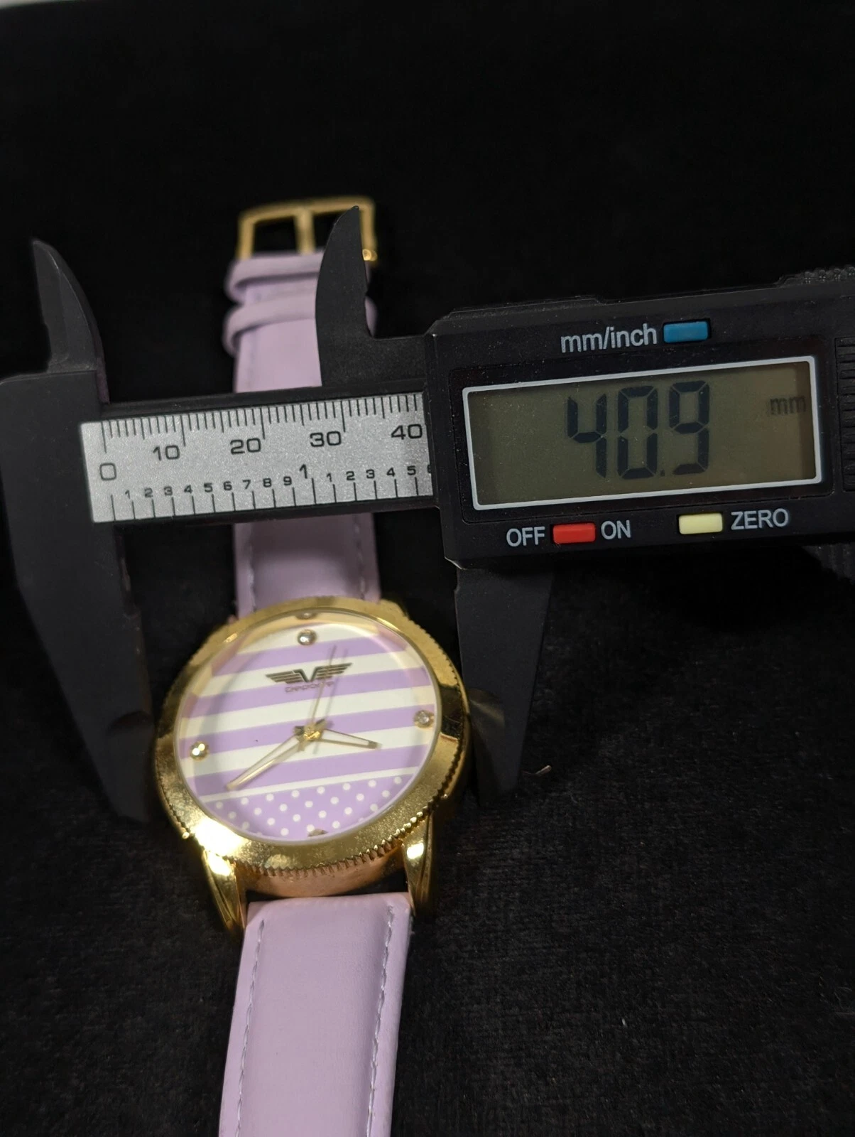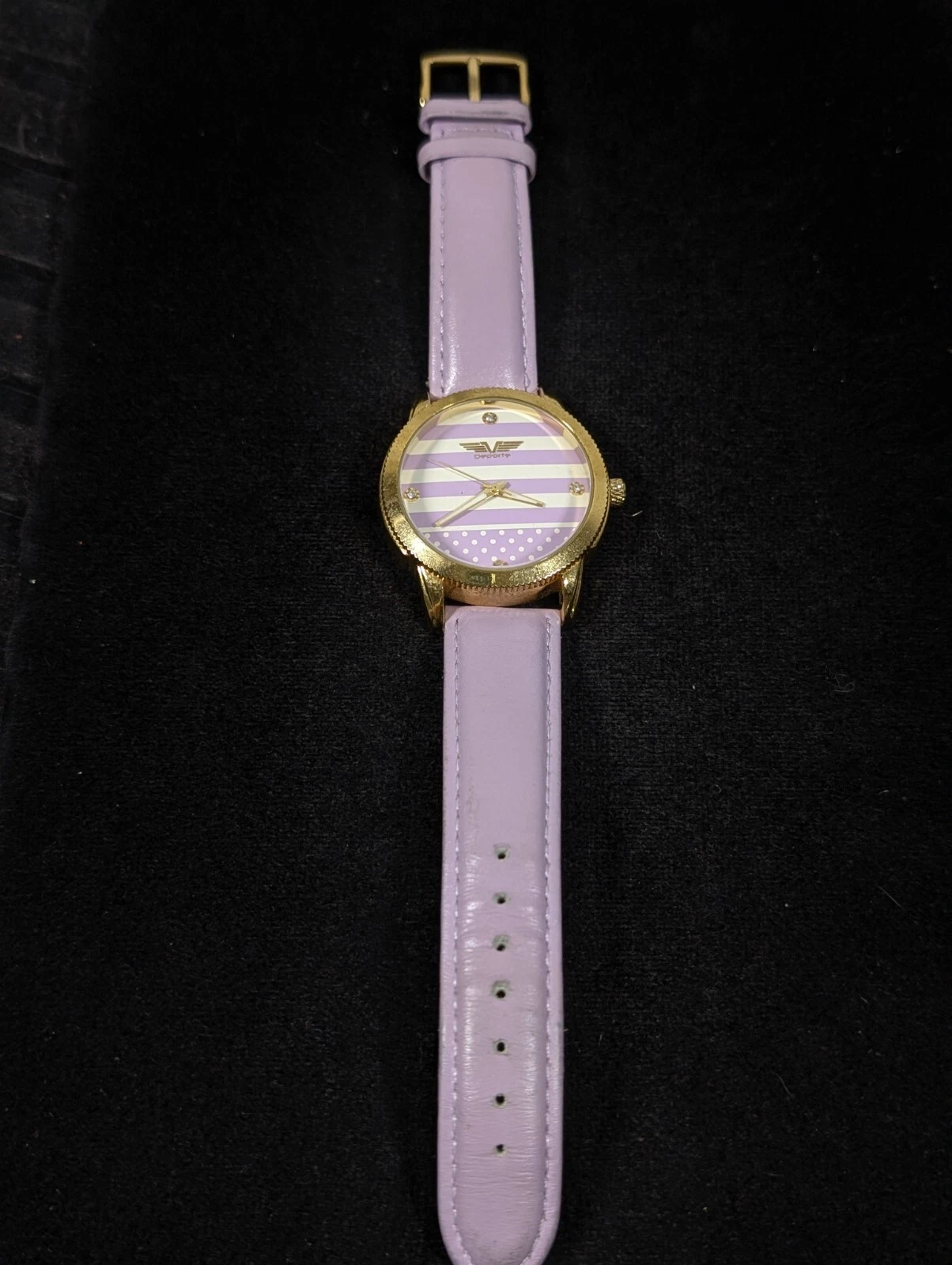 Deporte Womens Purple Leather  Stripe Gold Tone Round Case Watch 40mm