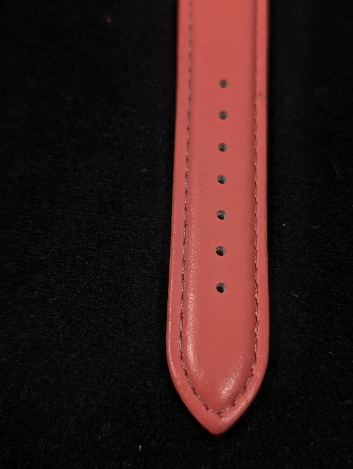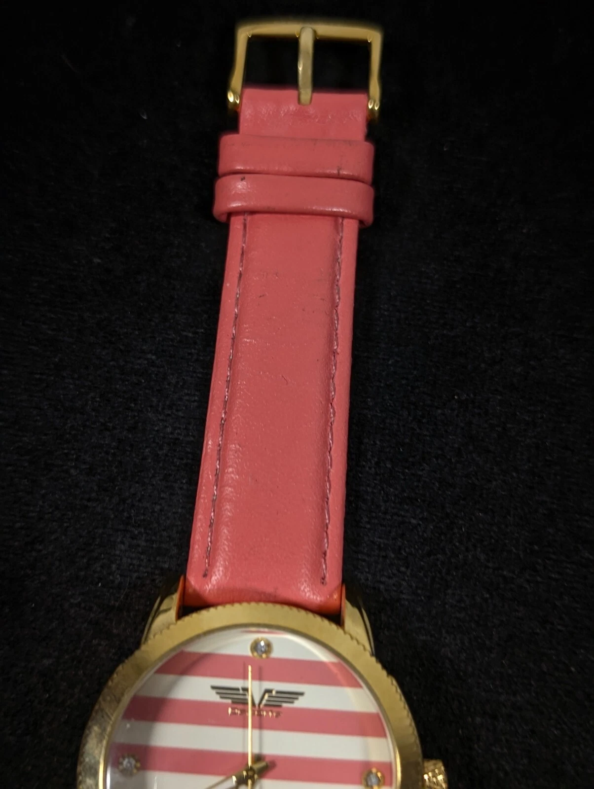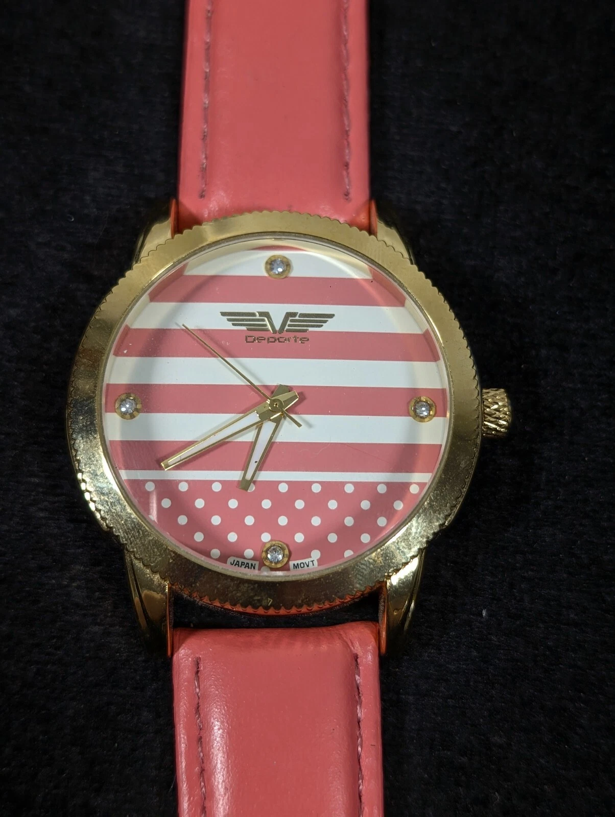 Deporte Womens Coral Pink Leather  Stripe Gold Tone Round Case Watch 40mm