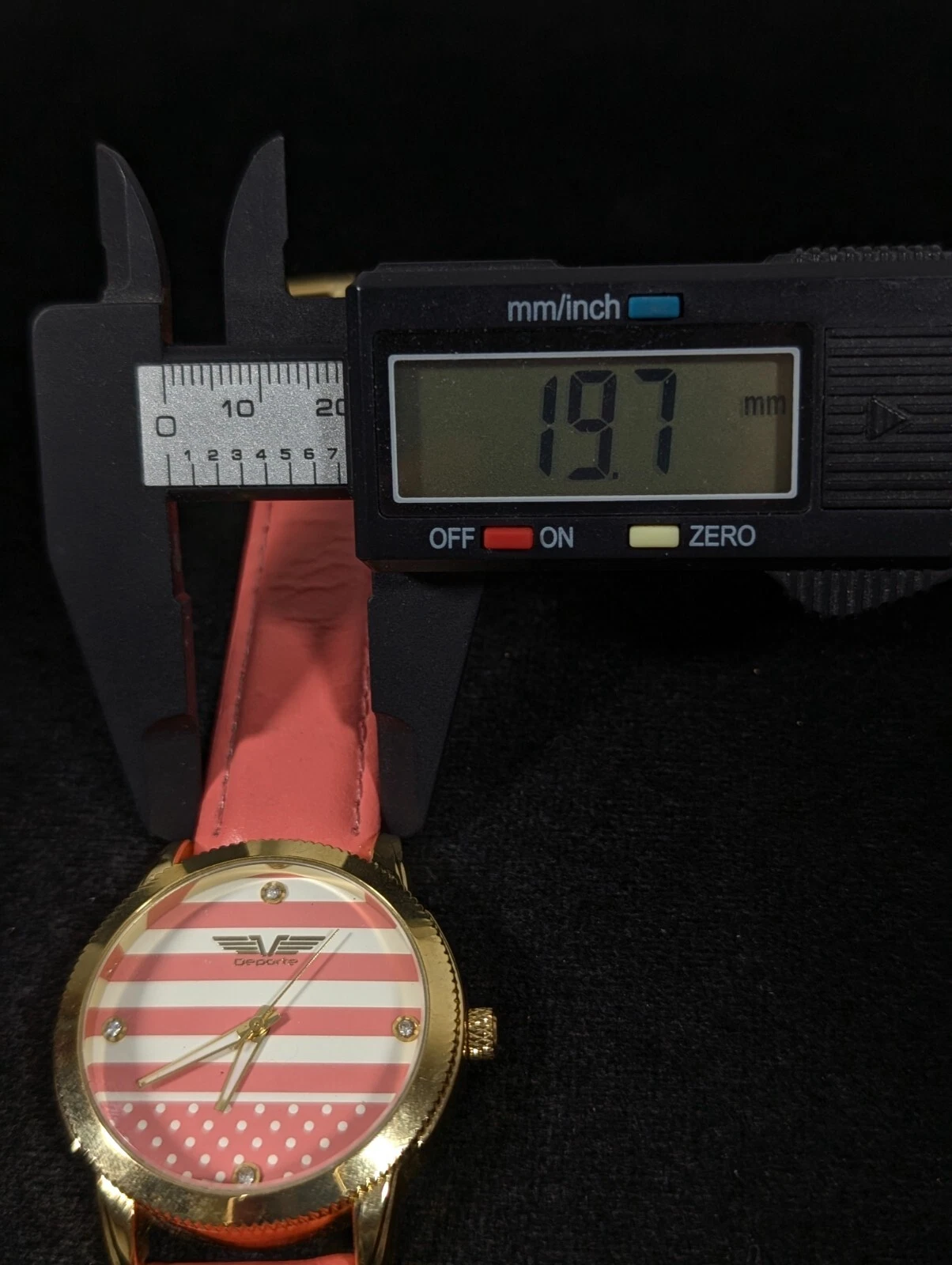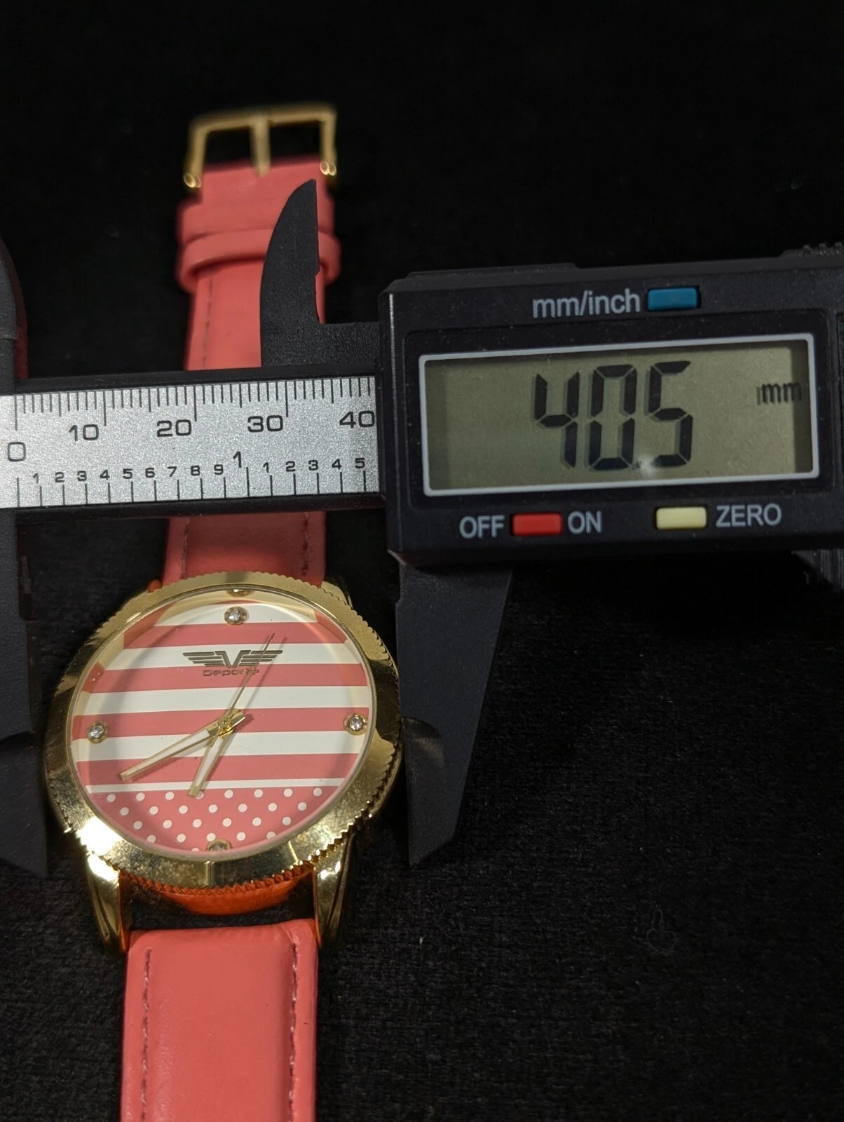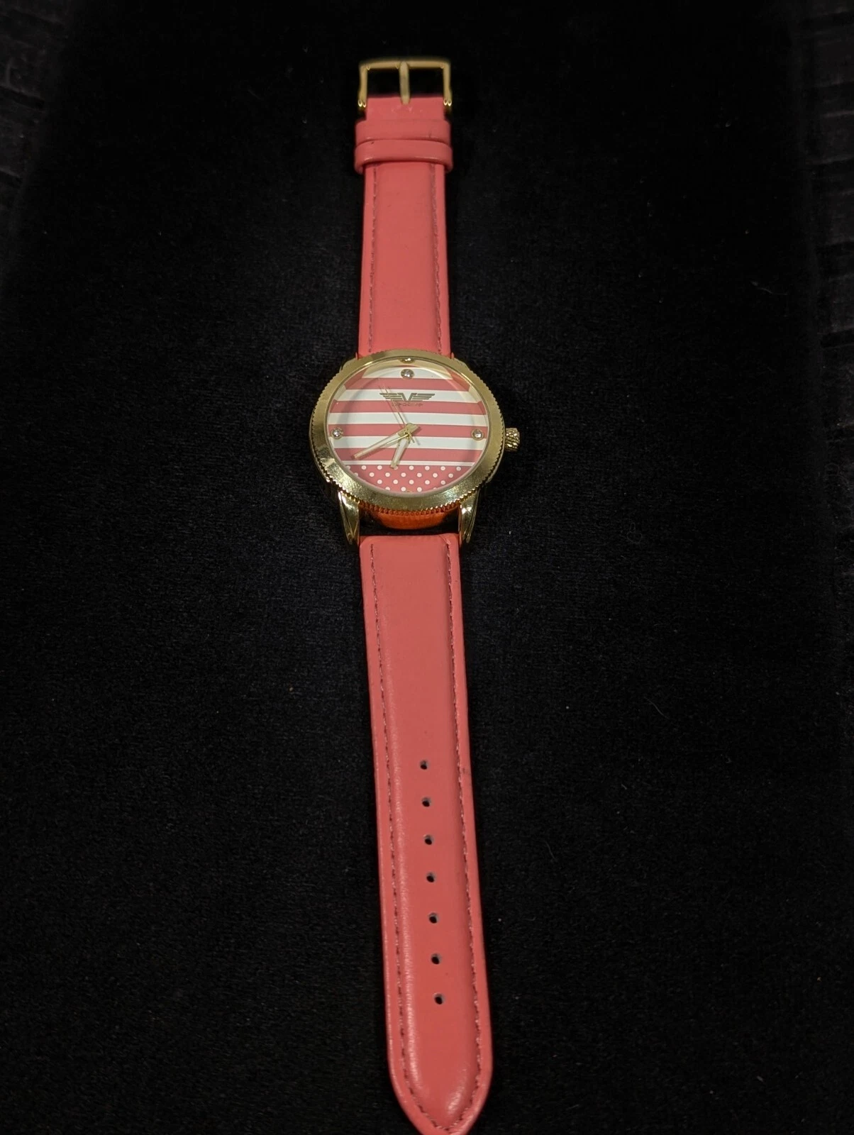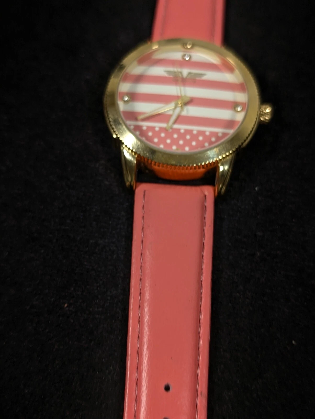 Deporte Womens Coral Pink Leather  Stripe Gold Tone Round Case Watch 40mm