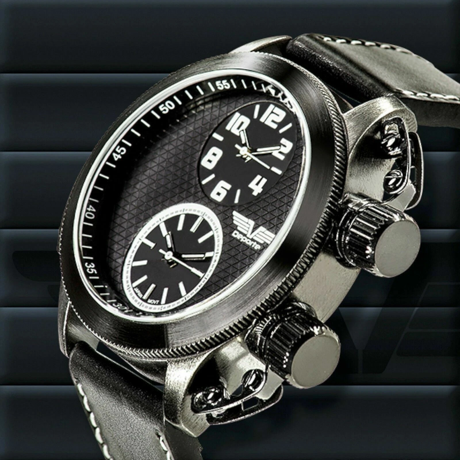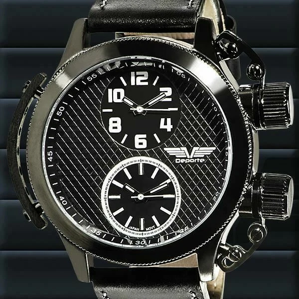 Deporte Sutton 62623274 Mens Black Leather Band Watch With Black Metal Case