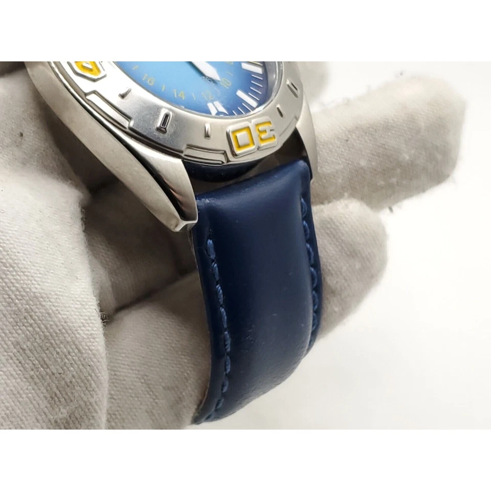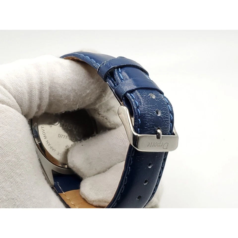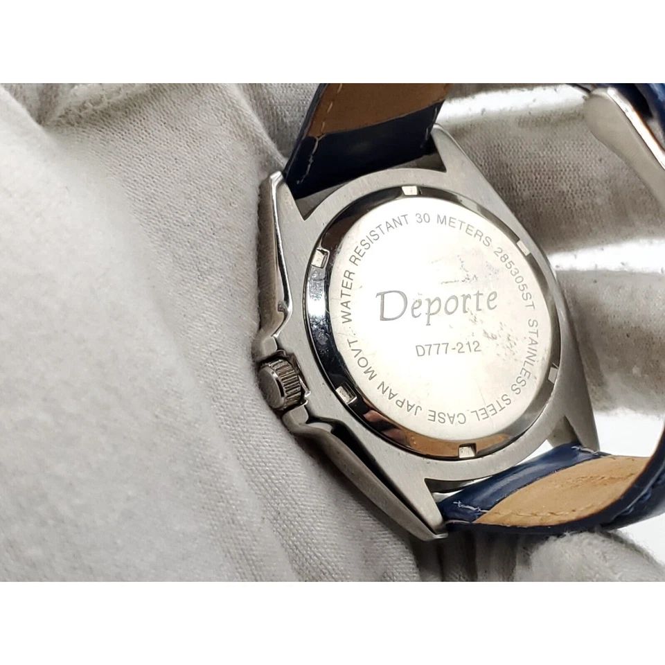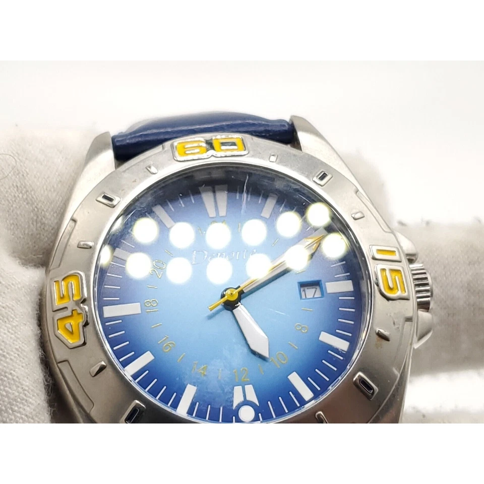 Deporte Watch Mens New Battery Blue/Yellow Date Dial 40mm Blue Band