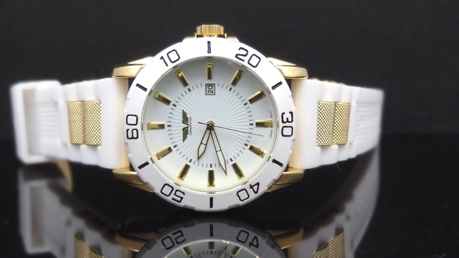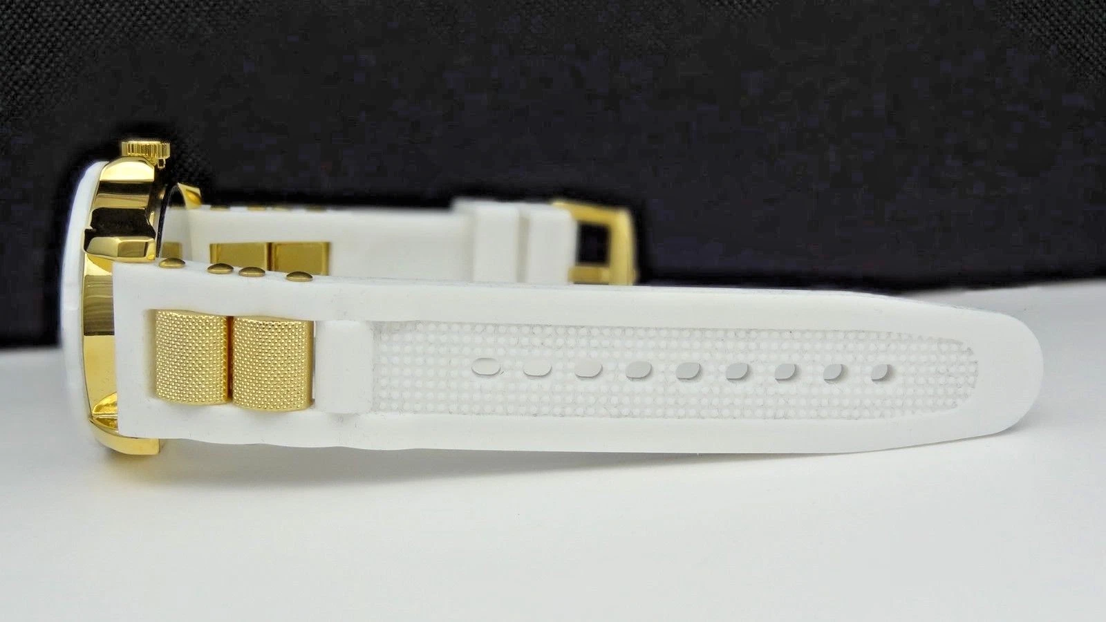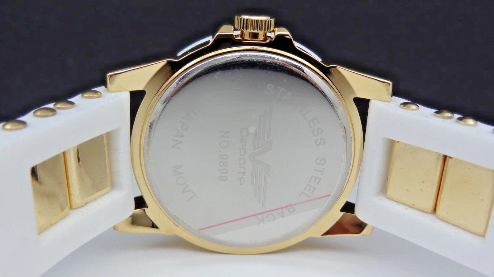 Deporte 9899 White Dial & Rubber Strap Gold Tone Case Men's Watch - GREAT GIFT