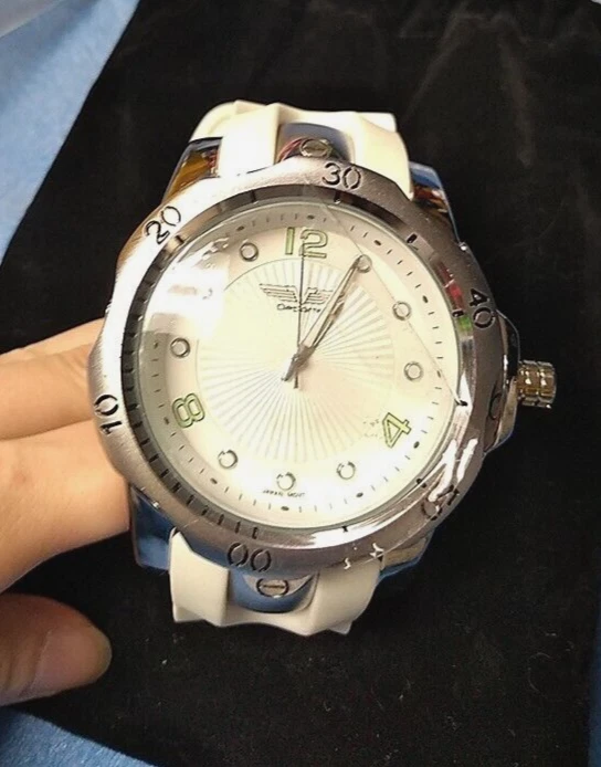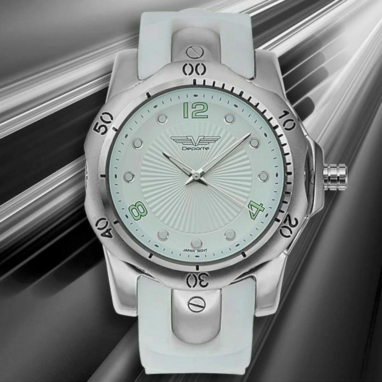 Deporte 9849 Mens Toretta Silver Case White Silicone w/Green Watch huge man