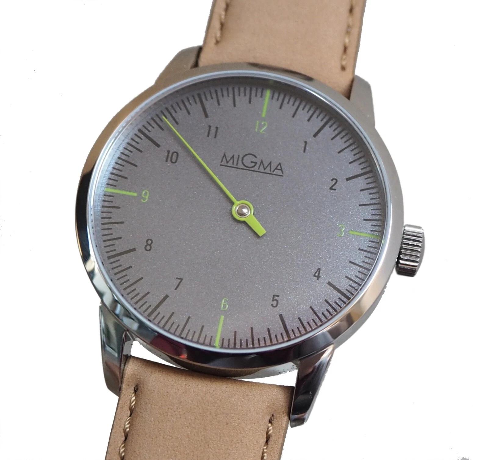 MIGMA ONE HAND WATCH ETA 6497-1 SWISS SAPPHIRE RUTHENIUM DIAL GREEN HAND NEW
