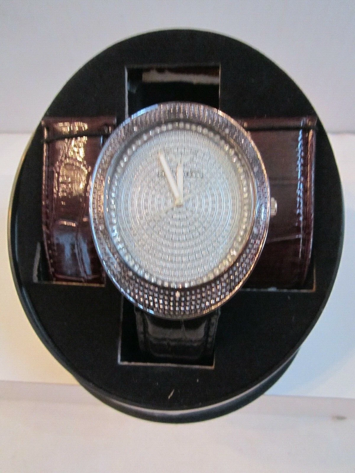 DIAMOND KING WATCH 10 AUTHENTIC DIAMONDS ON BEZEL DKBST07051 THICK CASE EXT BAND