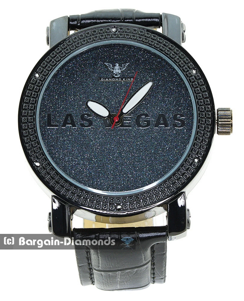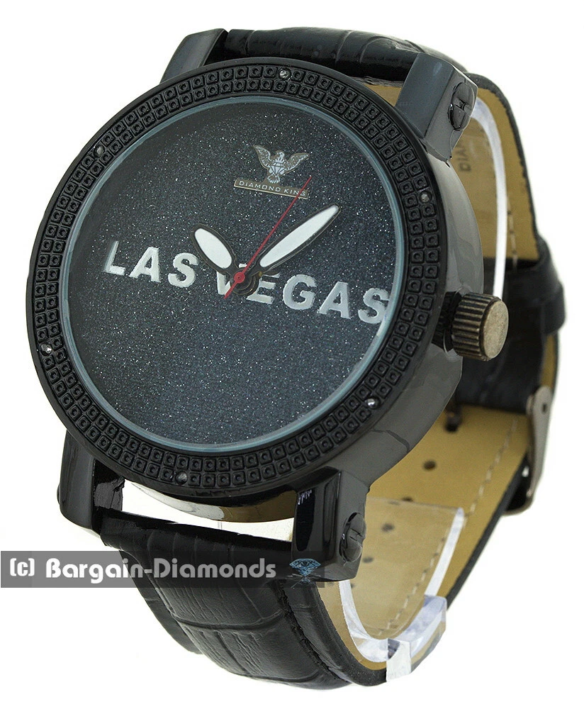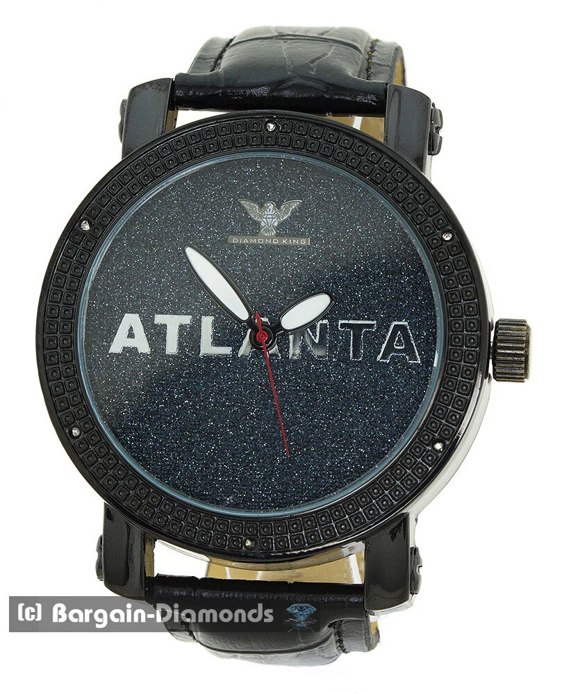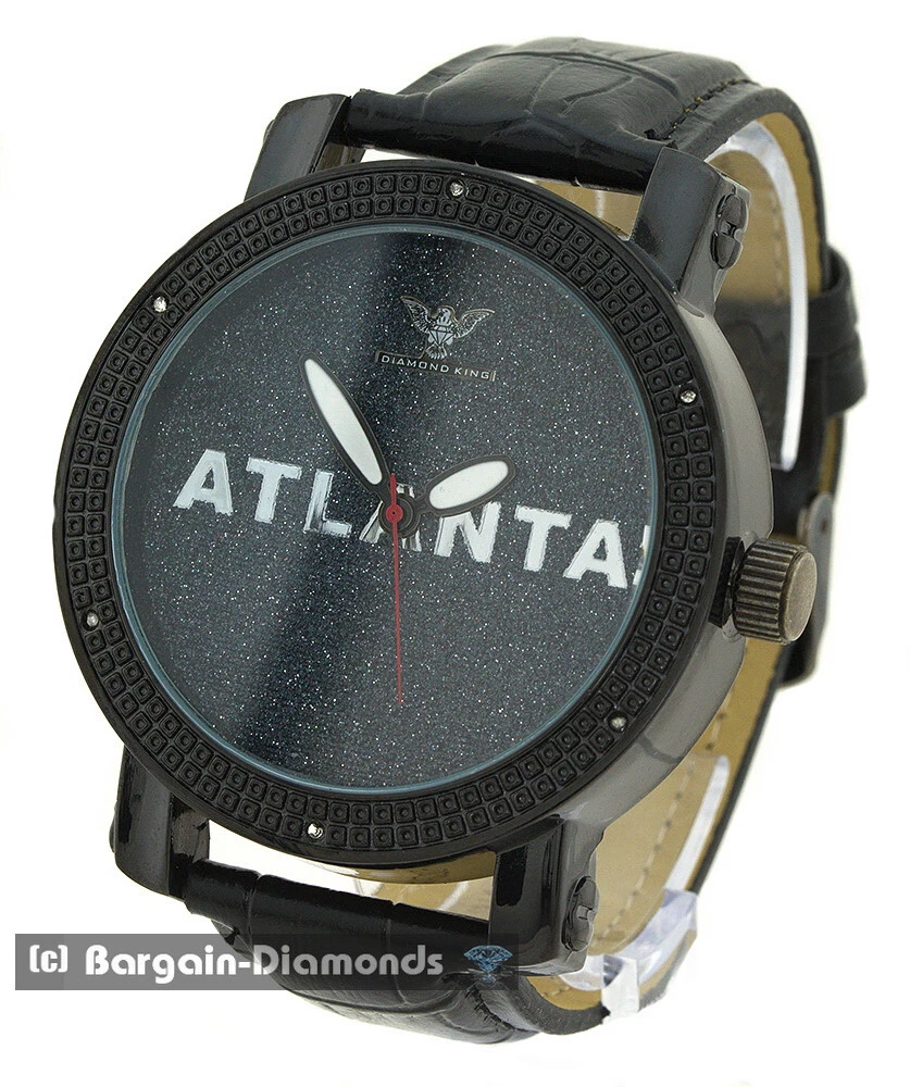 Mens ATLANTA Natural Diamond Black Clubbing Watch Bling Dial to 8.5" Leather