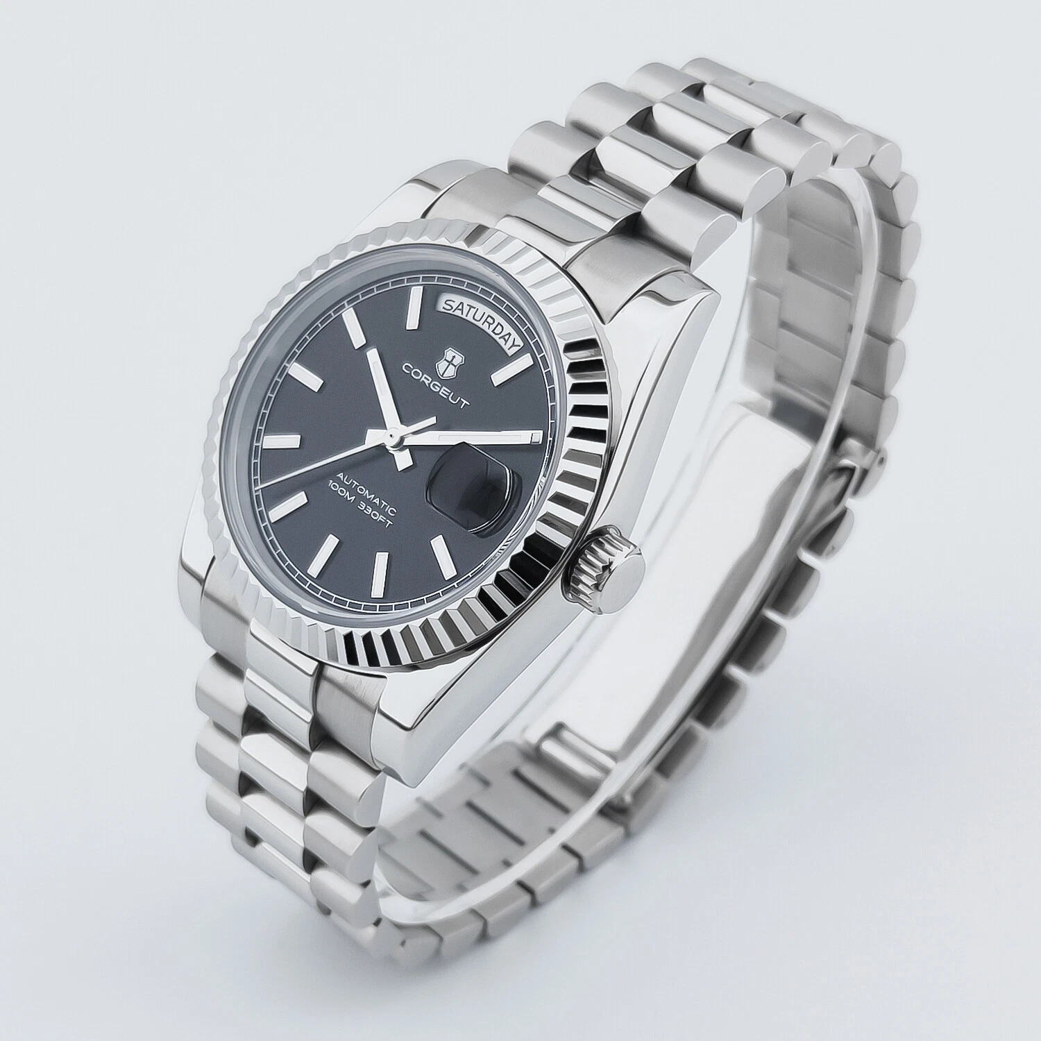 CORGEUT Formal Luxury Automatic Mens ST1644 Mechanical Watch Sapphire Steel Band