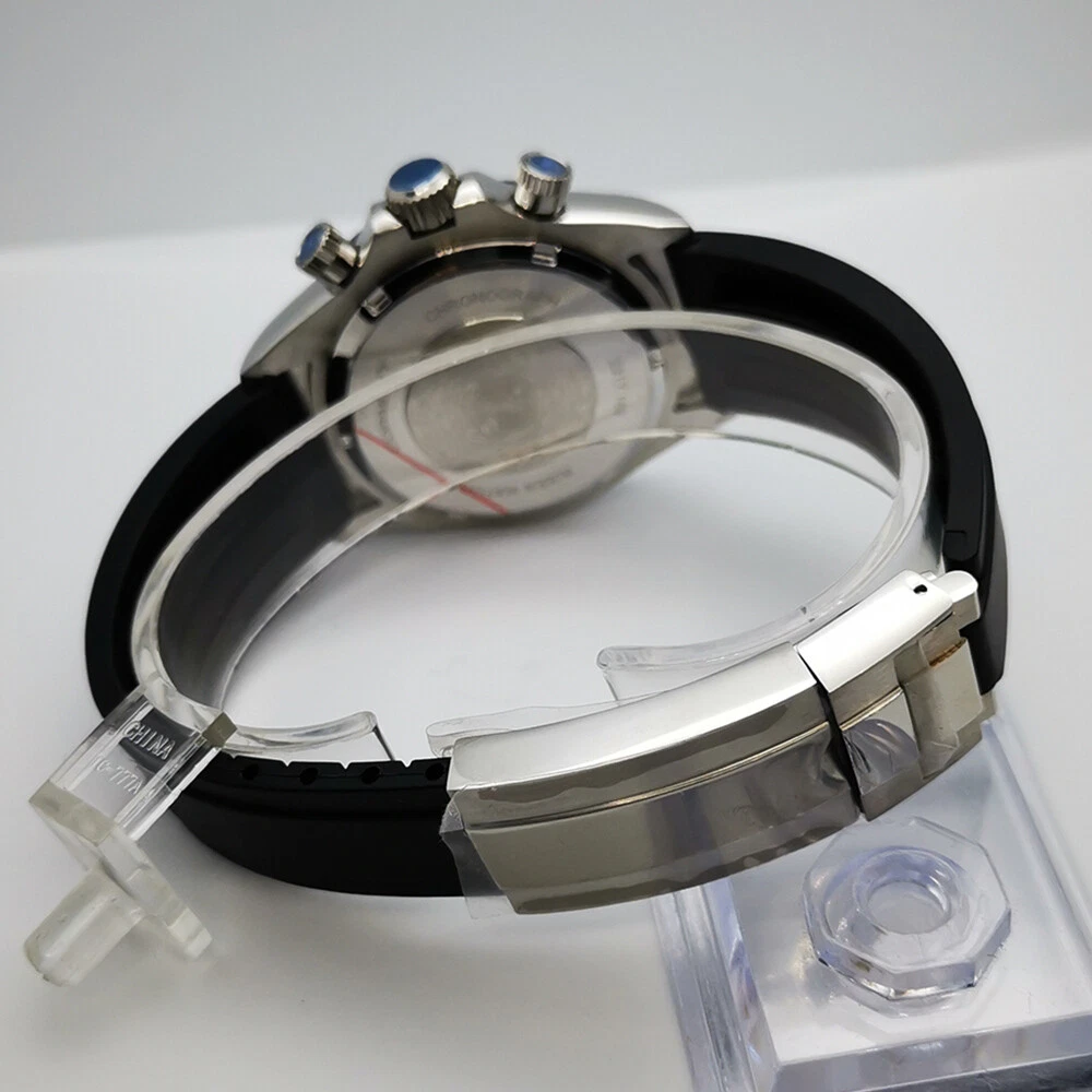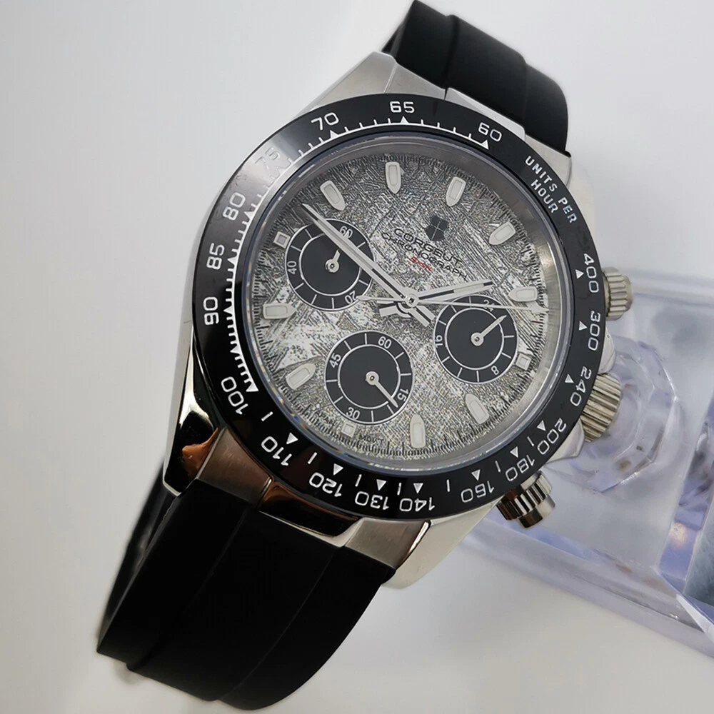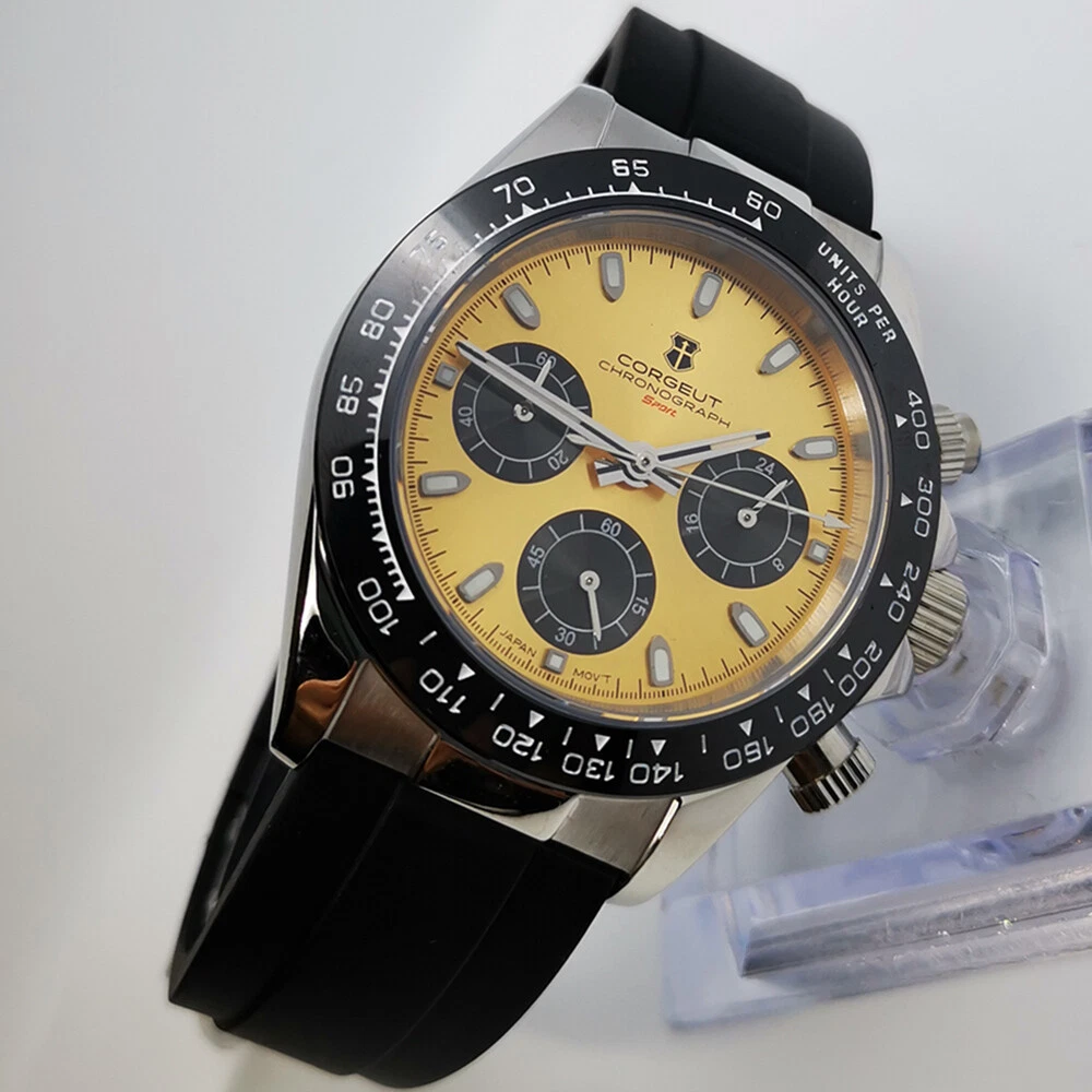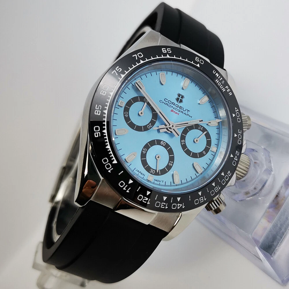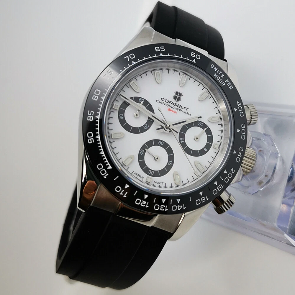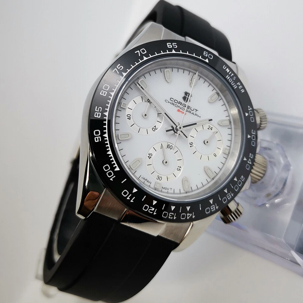 40mm Corgeut chronograph sapphire glass rubber strap sport quartz mens watch