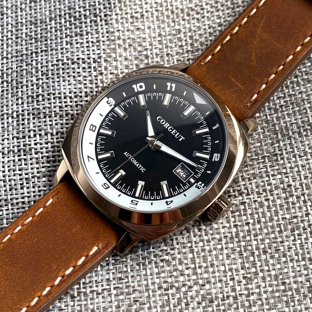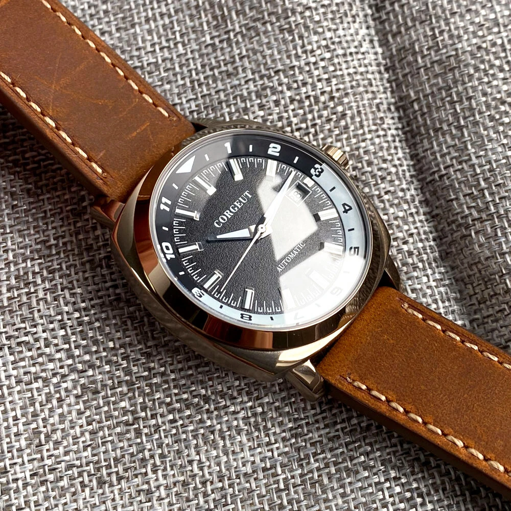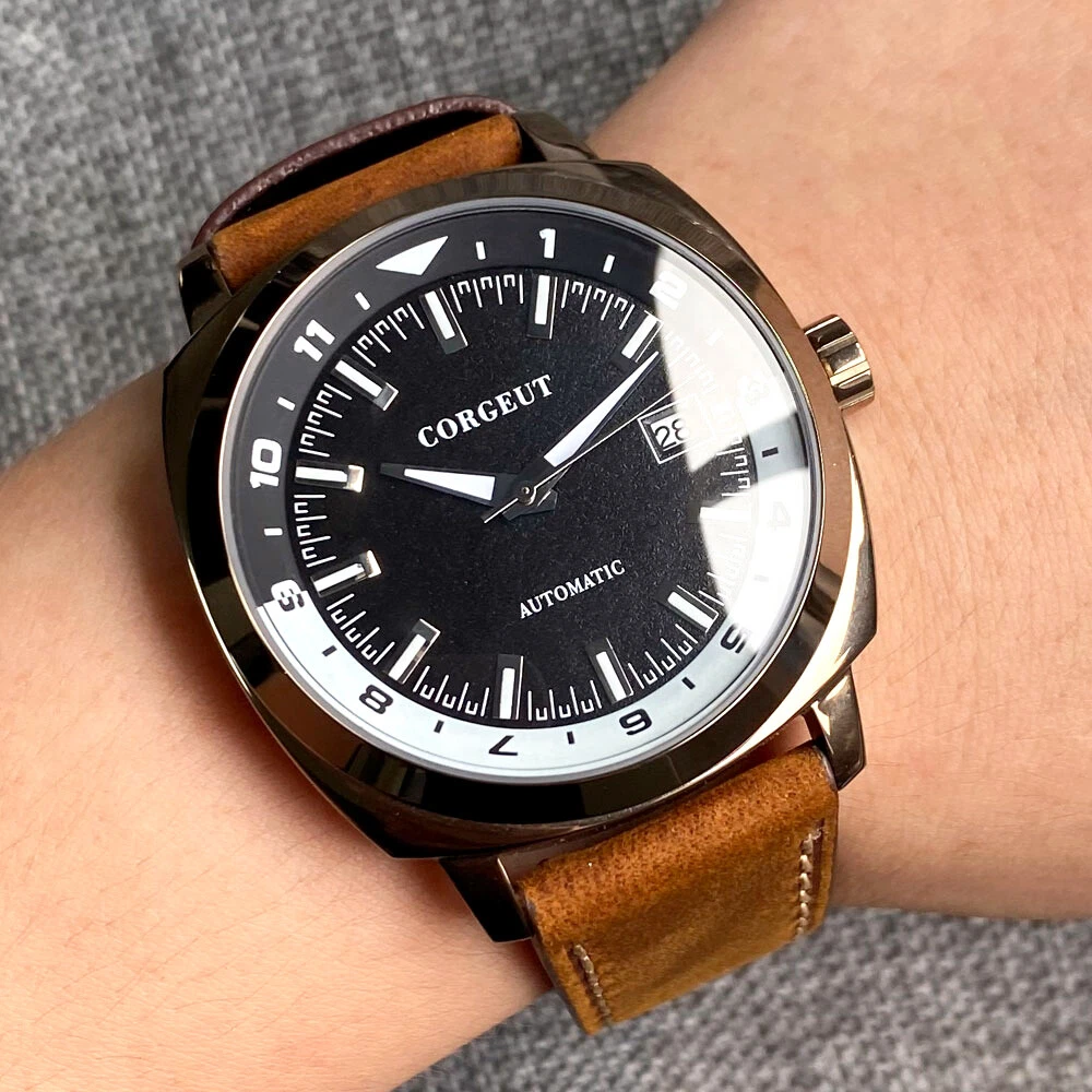 Square 42mm Corgeut Black Dial Japan 24 Jewels NH35A Automatic Mens Watch