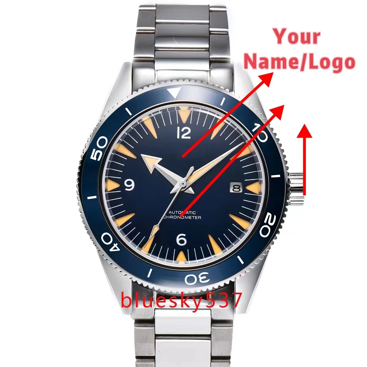 41mm black blue dial Sapphire Glass Japan NH35 Automatic Mens Watch CUSTOM LOGO