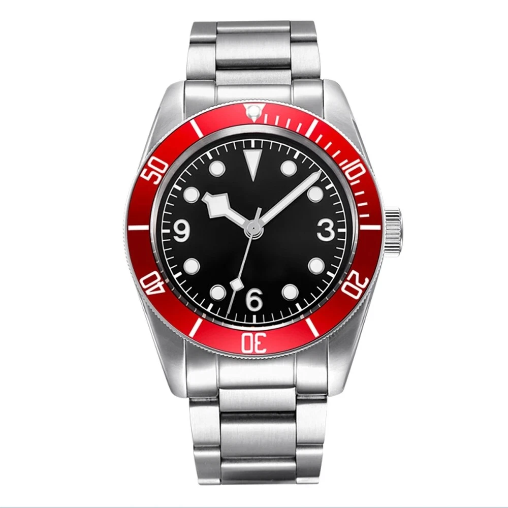 Custom 41mm Black Blue Red Bezel Sapphire Men Watch 8215 NH35 Automatic Luminous