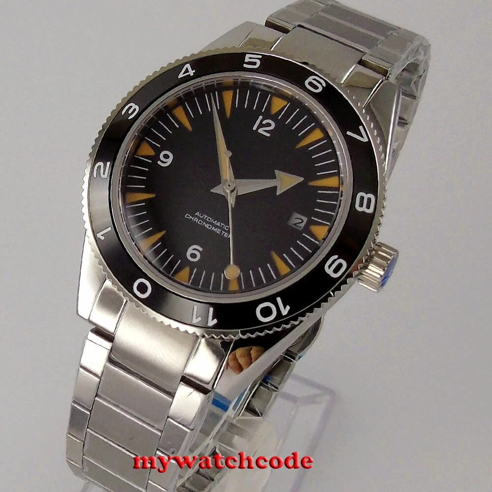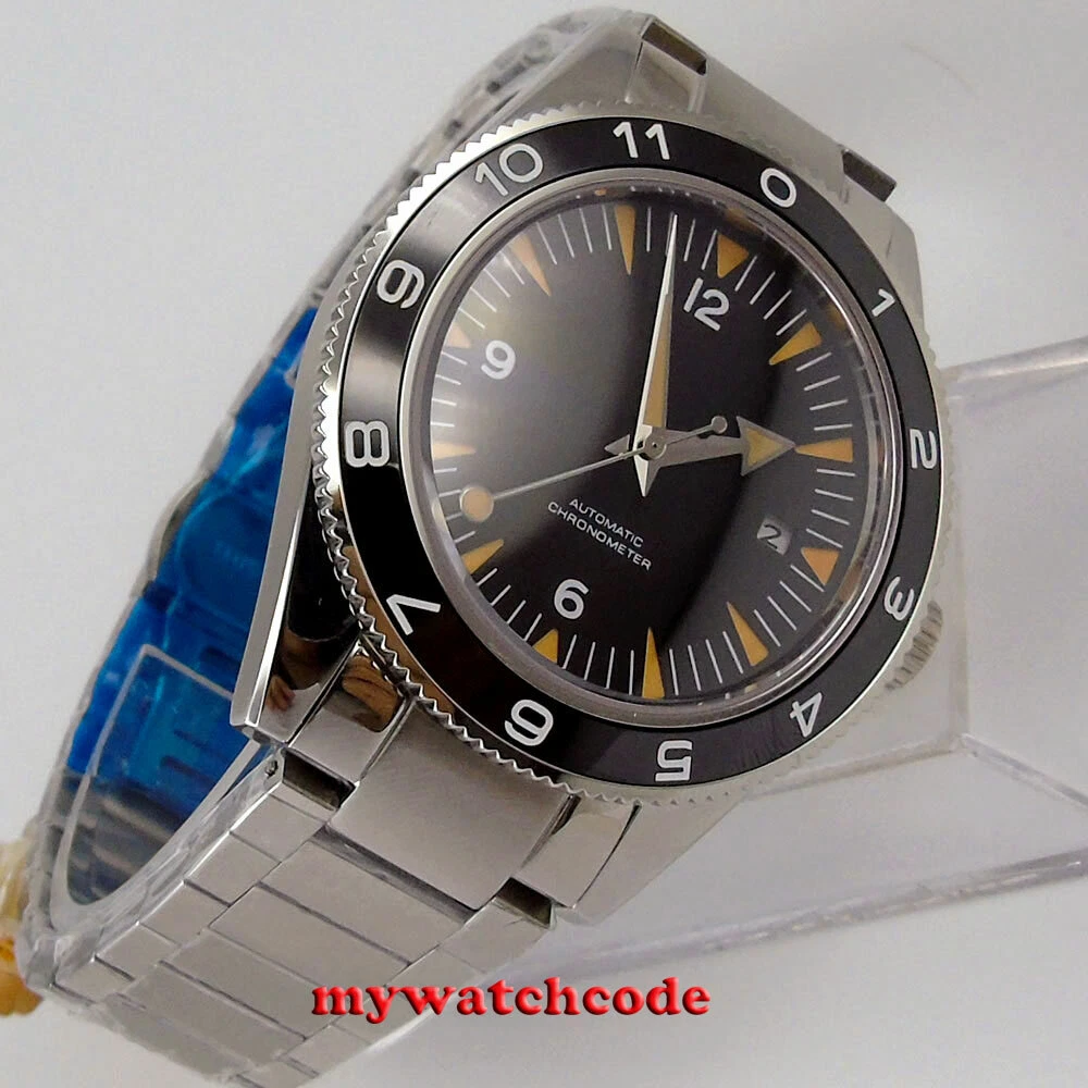 41mm CORGUET Black Dial Japan Miyota NH35A Automatic Mens Watch Sapphire Glass