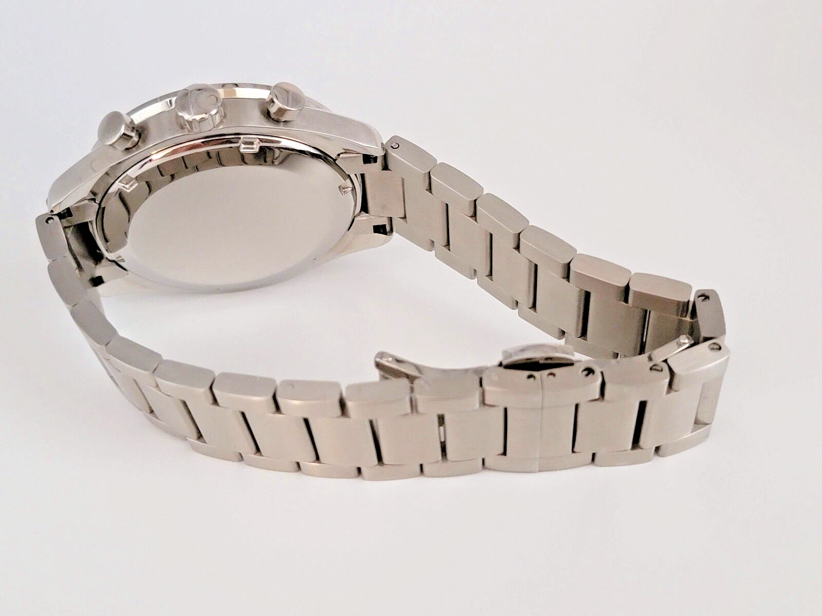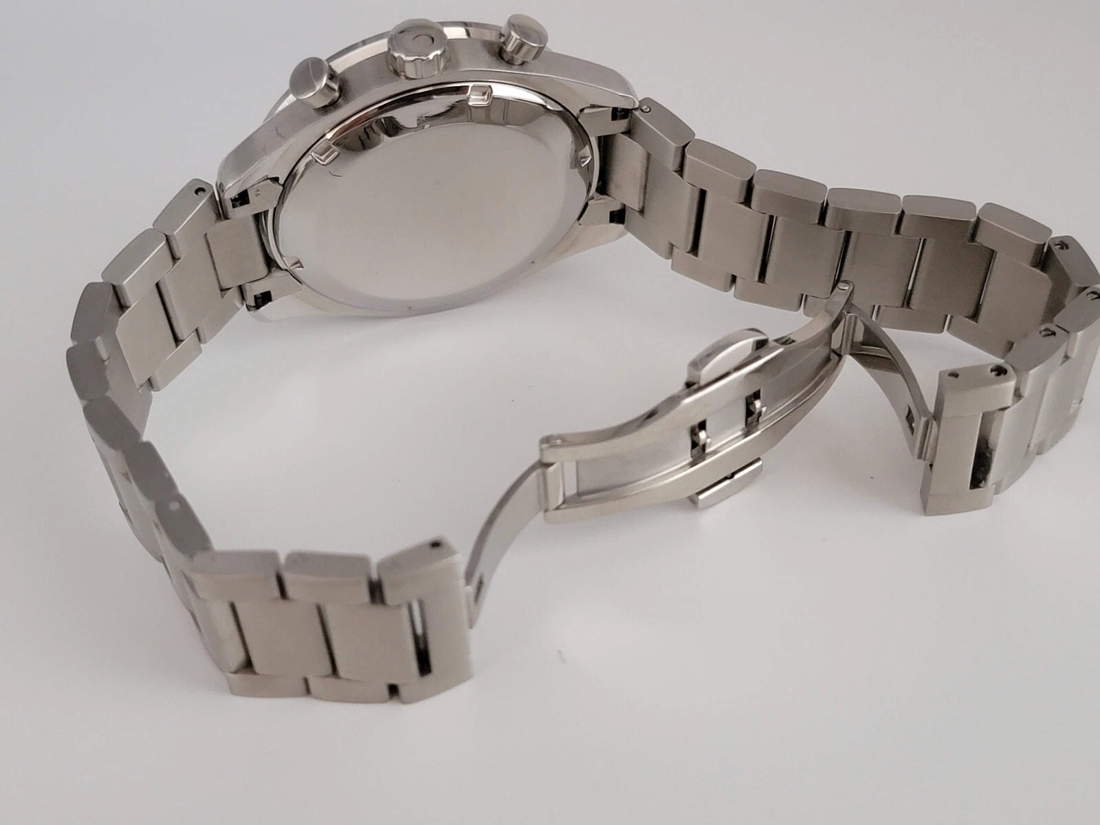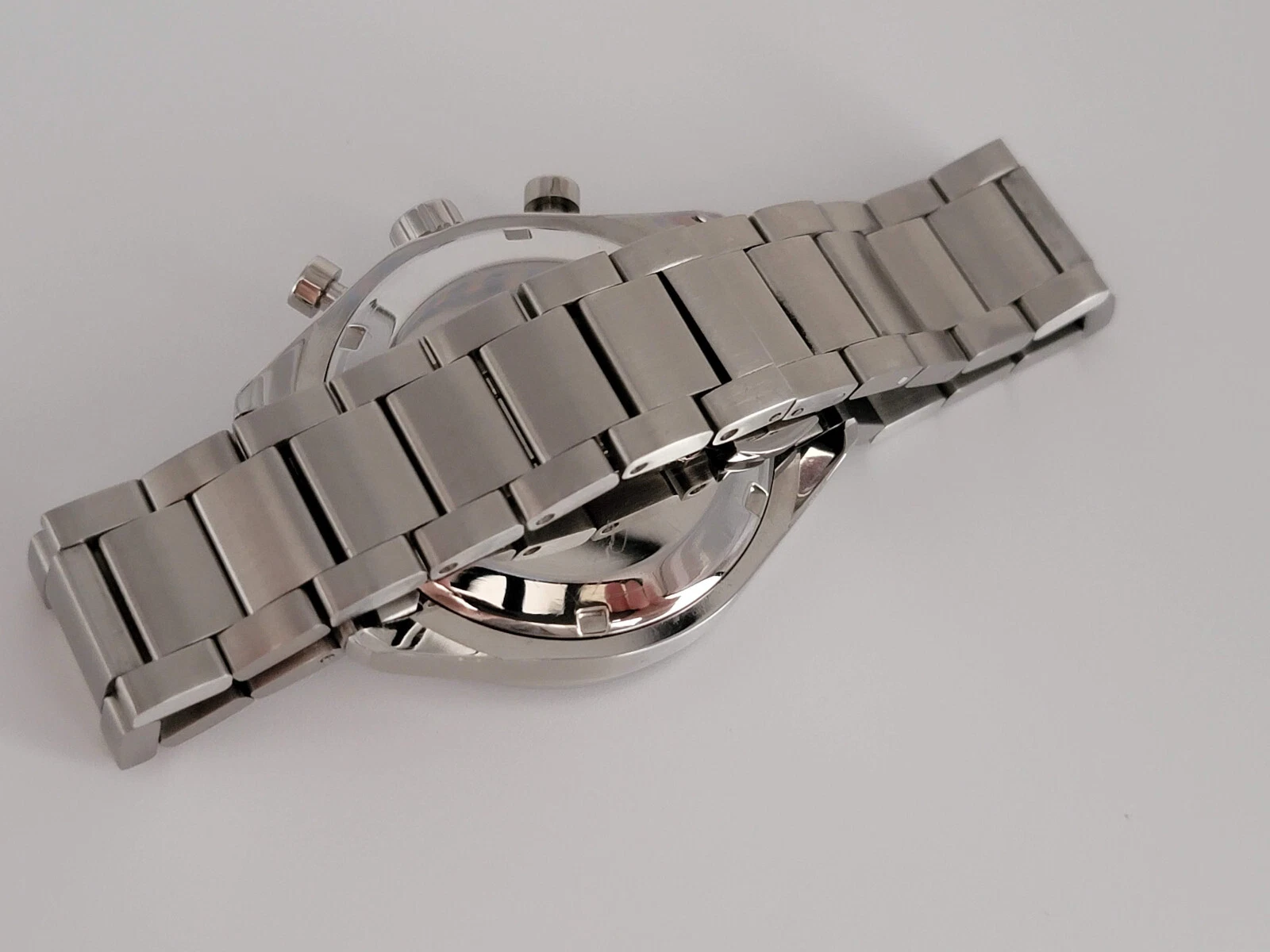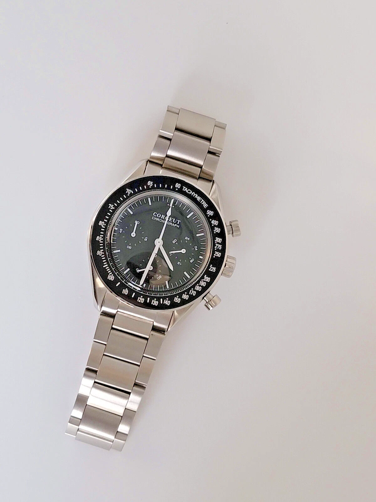 40mm corgeut black dial steel bracelet quartz full chronograph mens watch