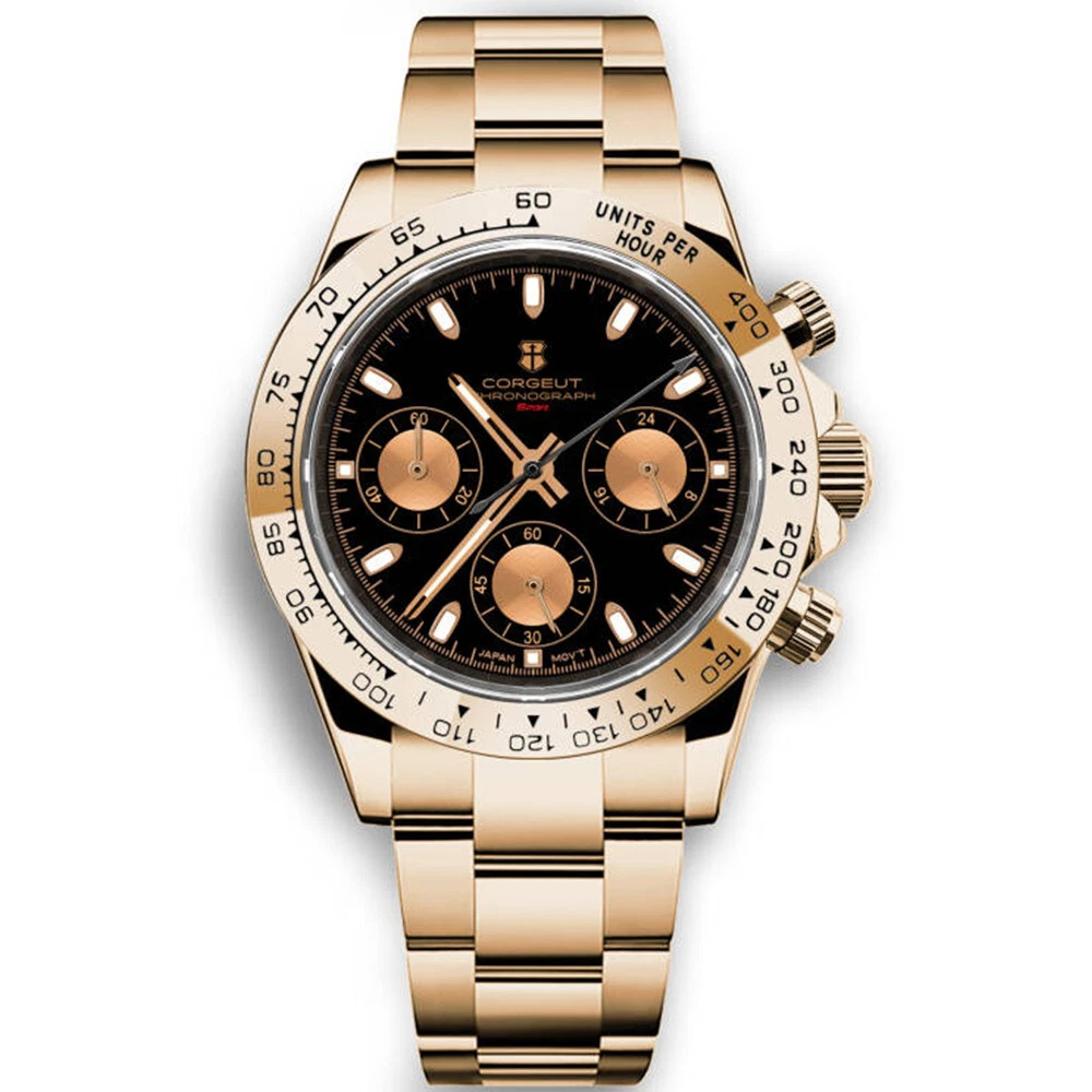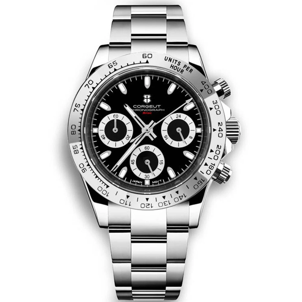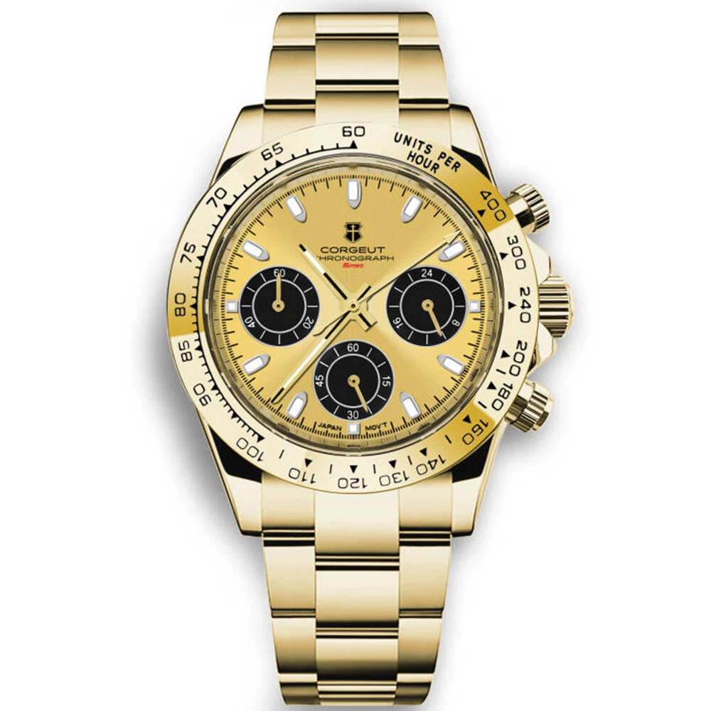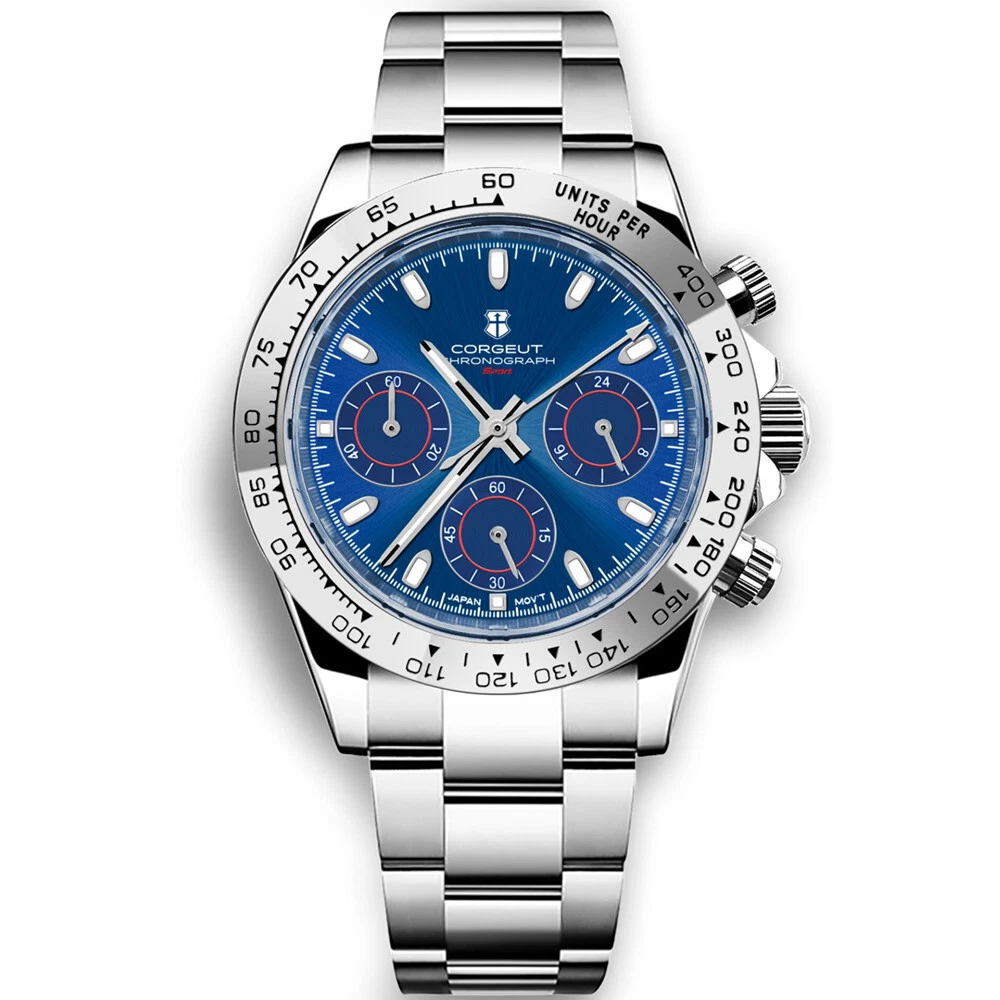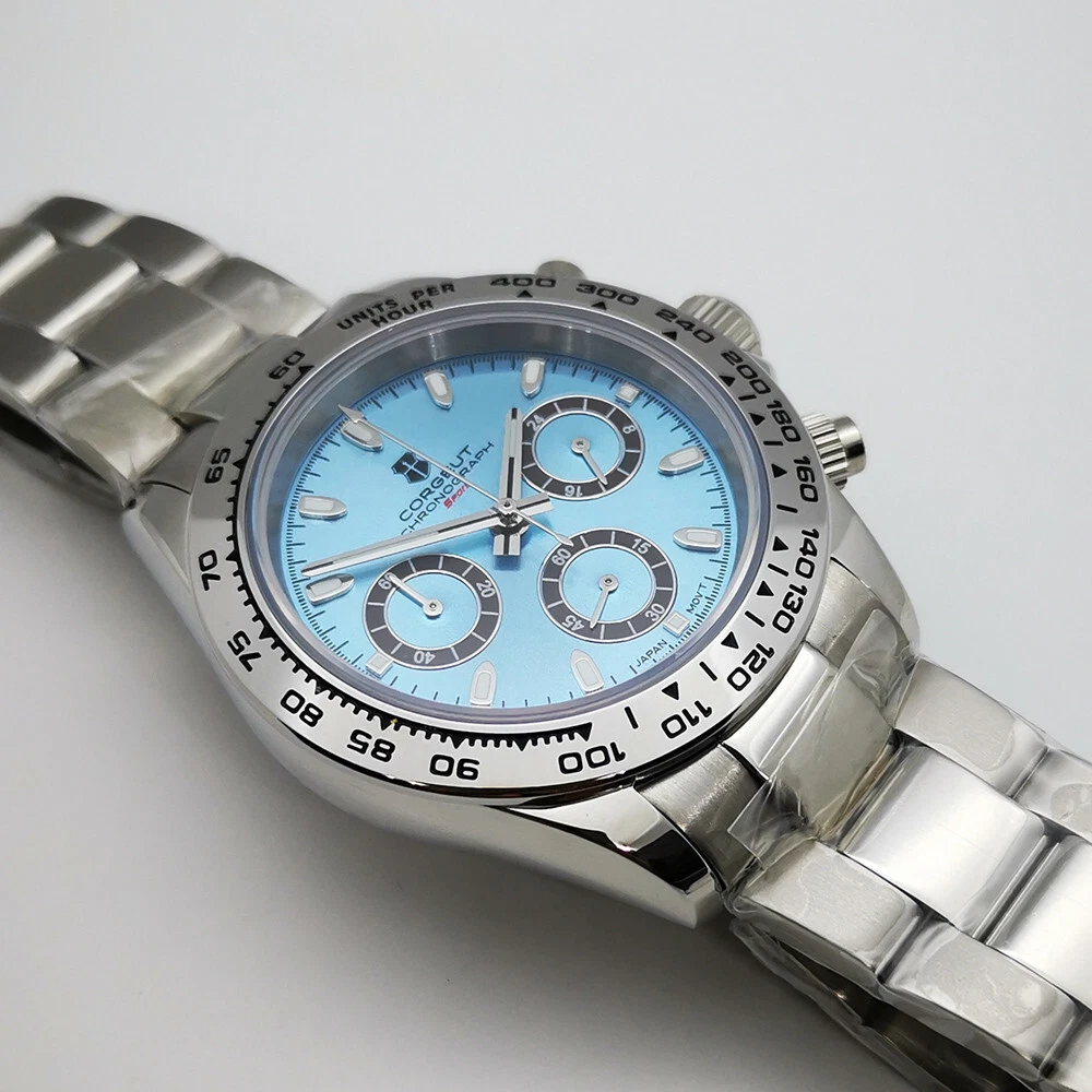 40mm Corgeut polished case chronograph sapphire glass VK63 quartz mens watch