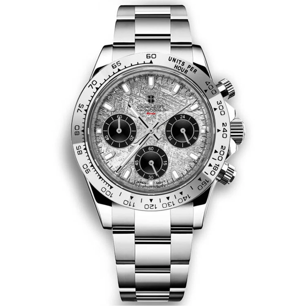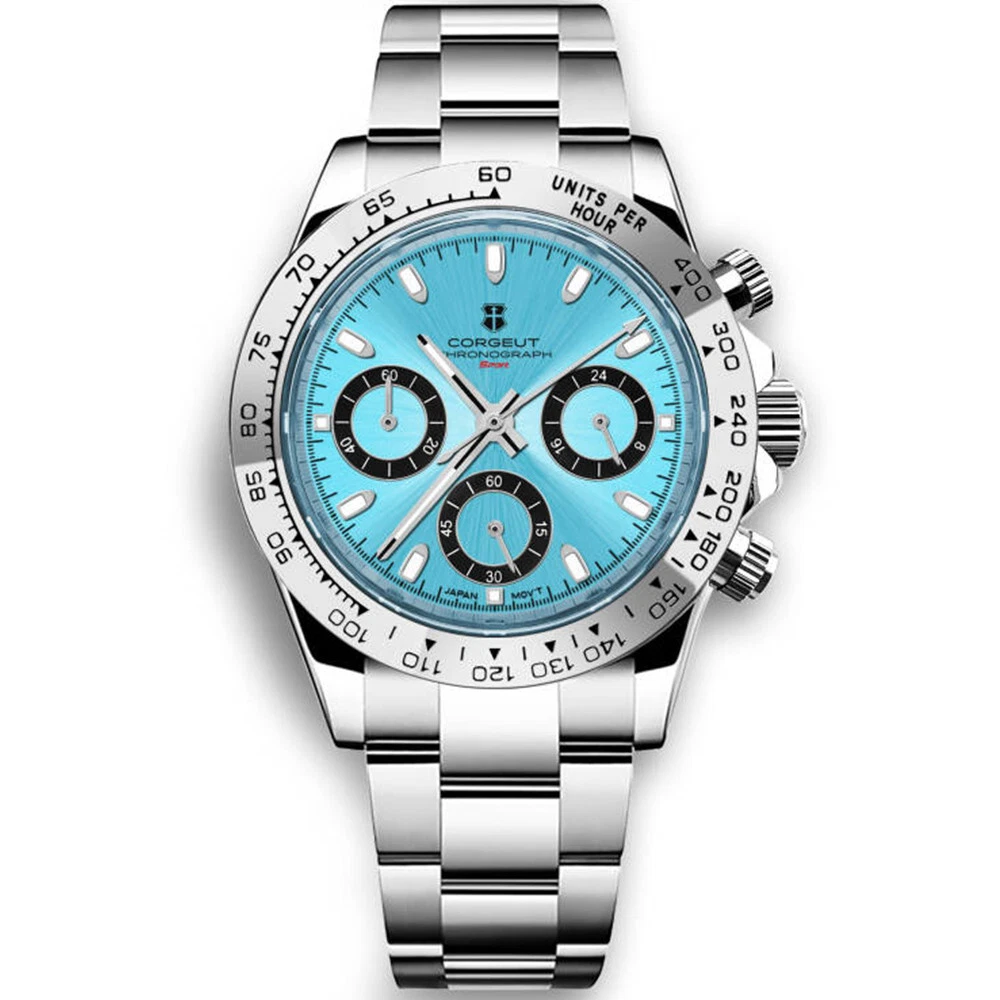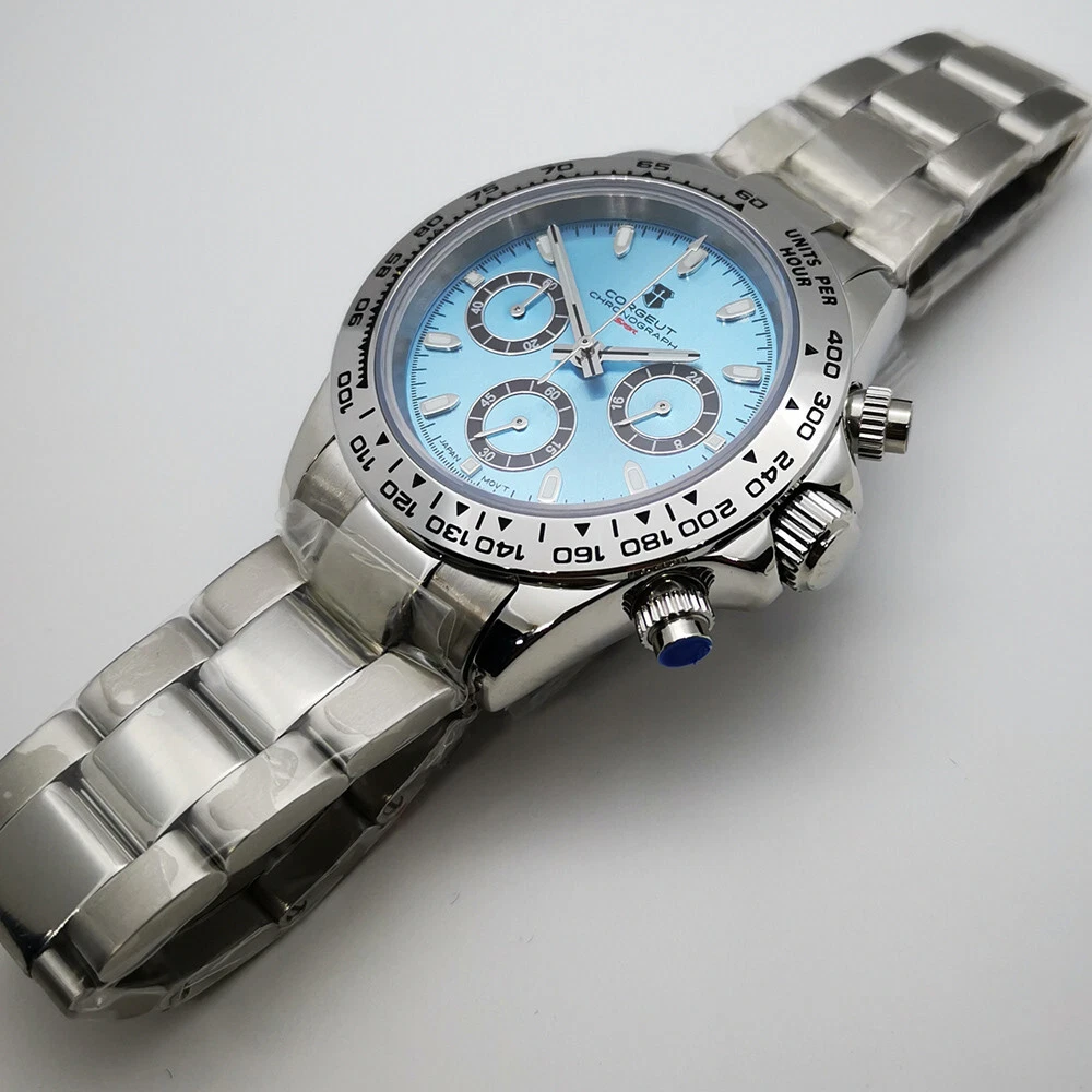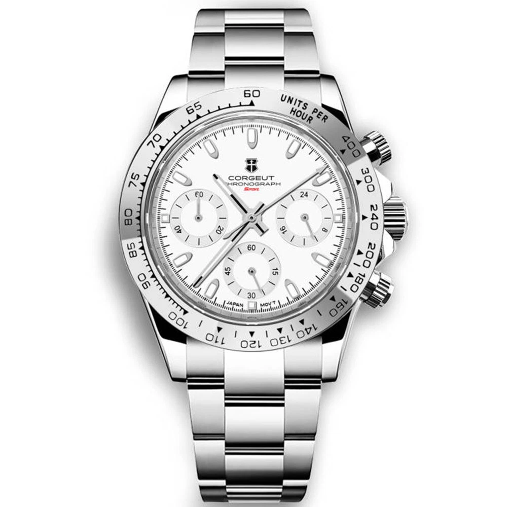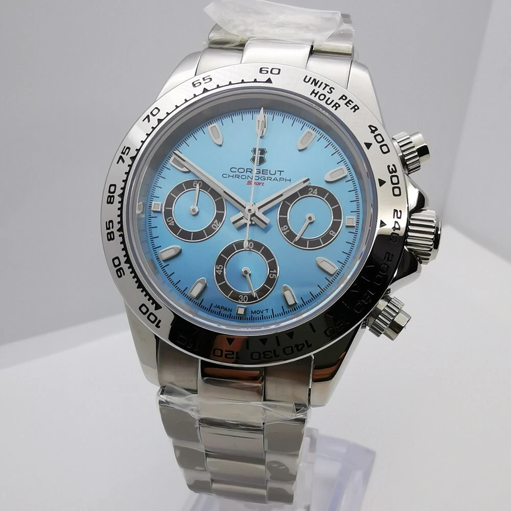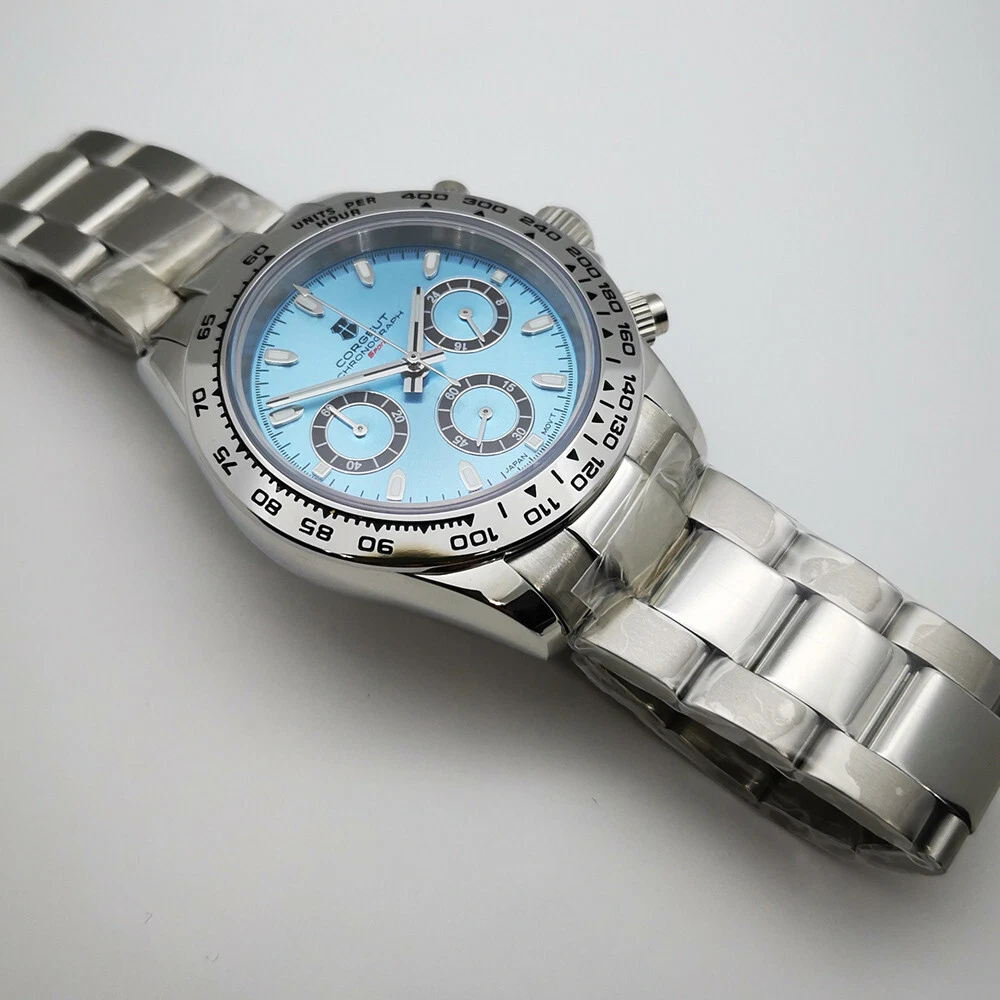 40mm Corgeut polished case chronograph sapphire glass VK63 quartz mens watch
