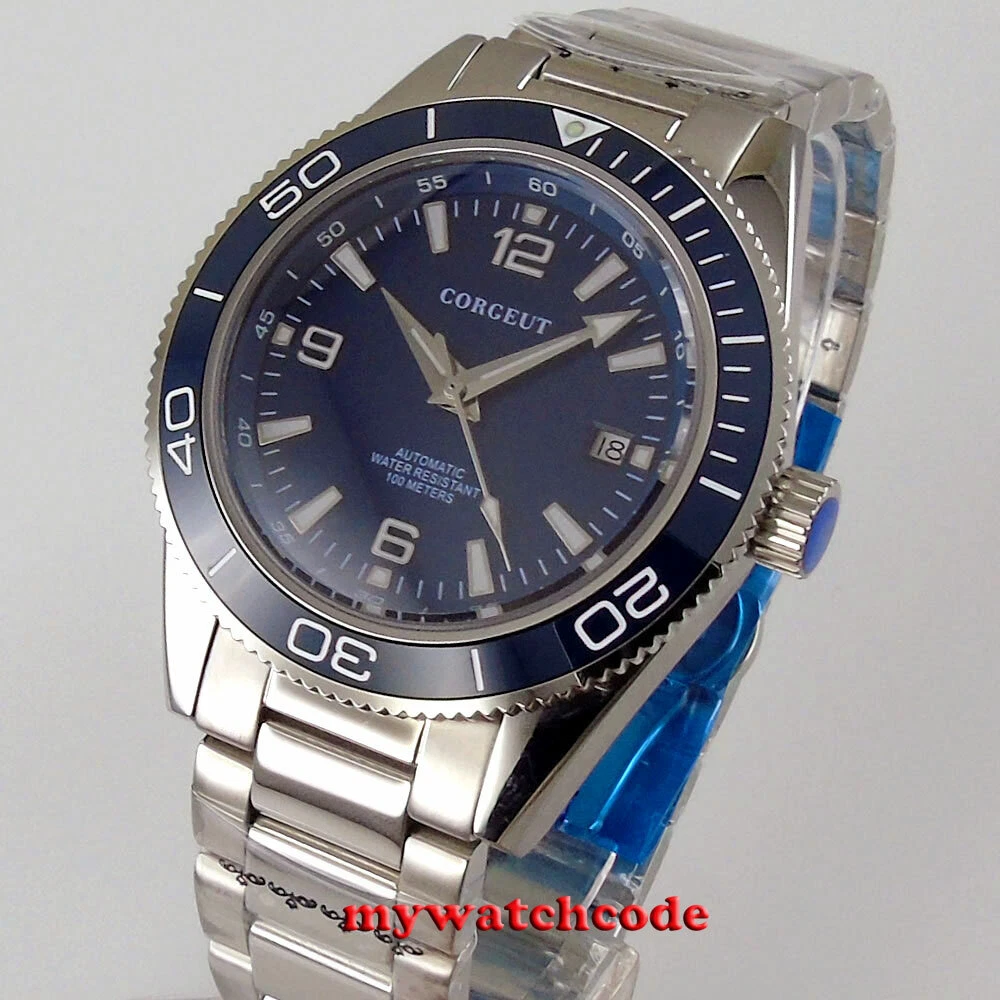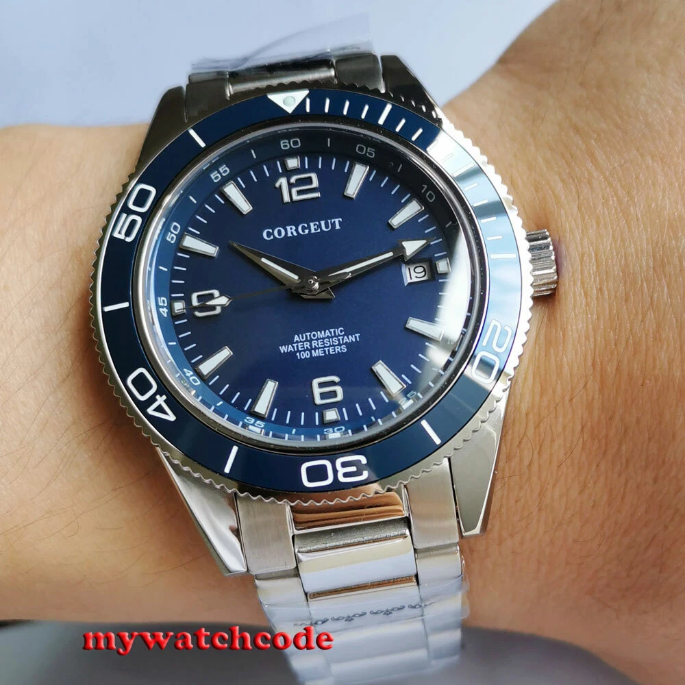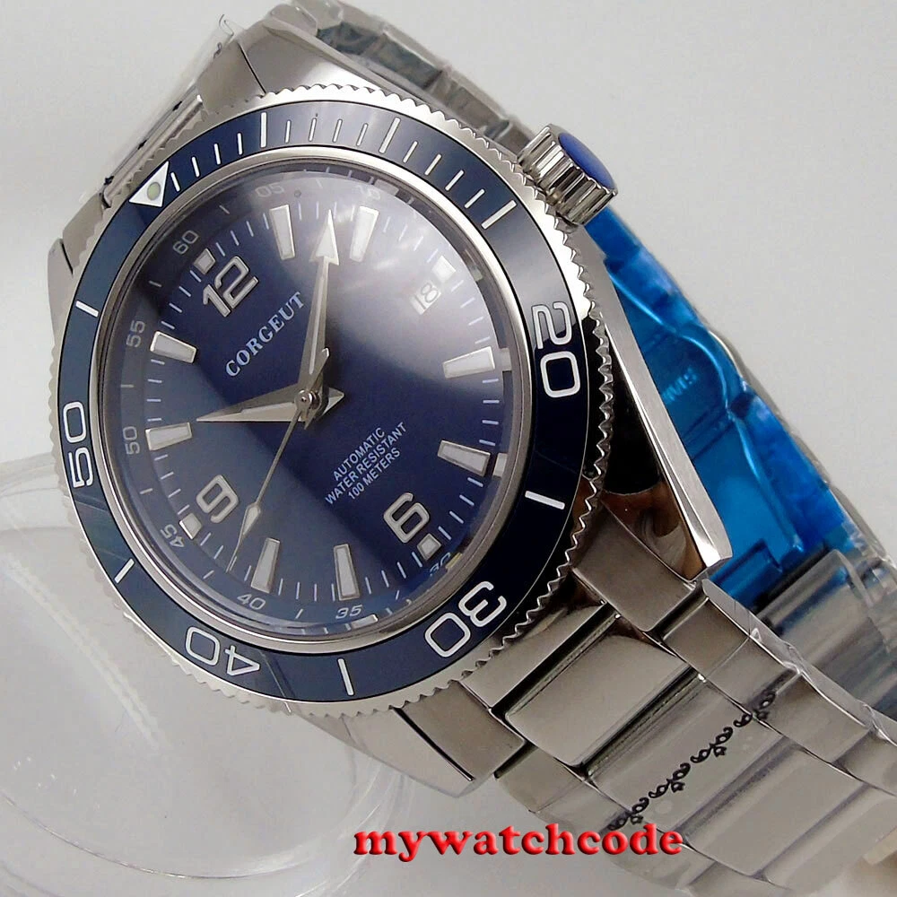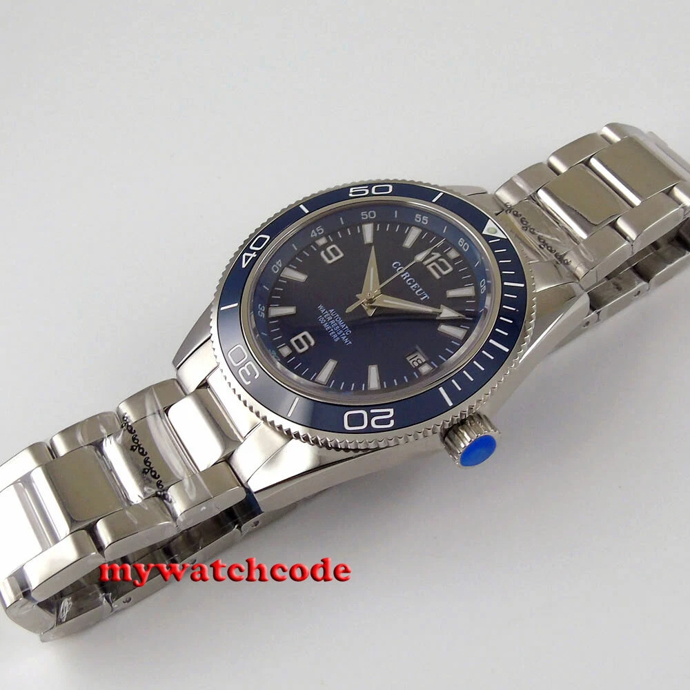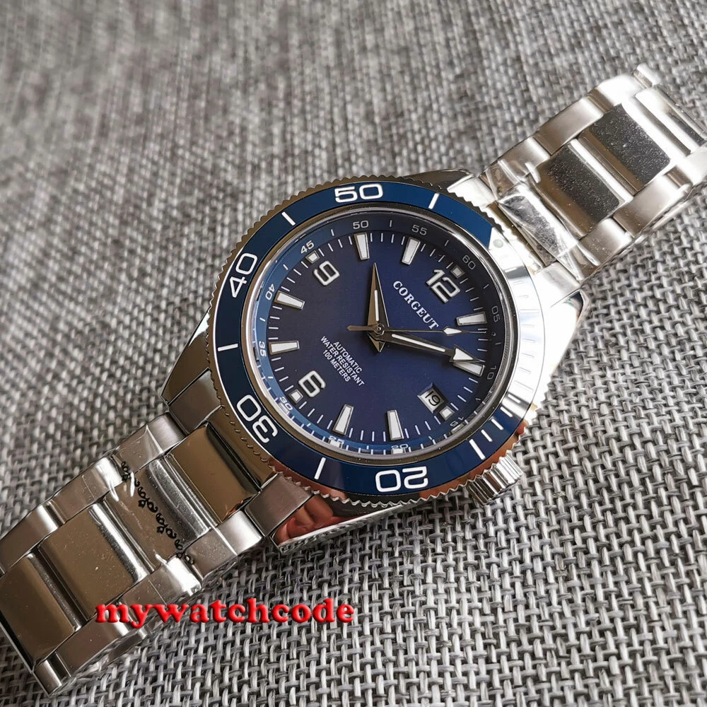 41mm CORGUET blue dial sapphire glass miyota Automatic mens watch ceramic bezel