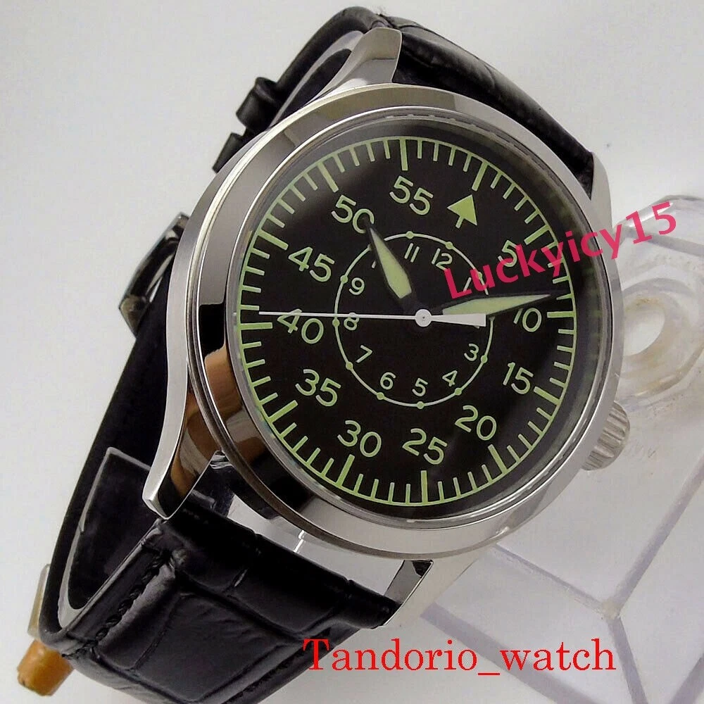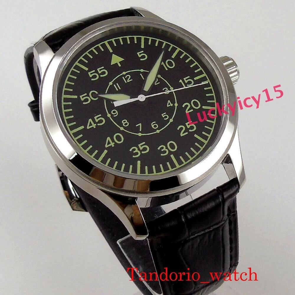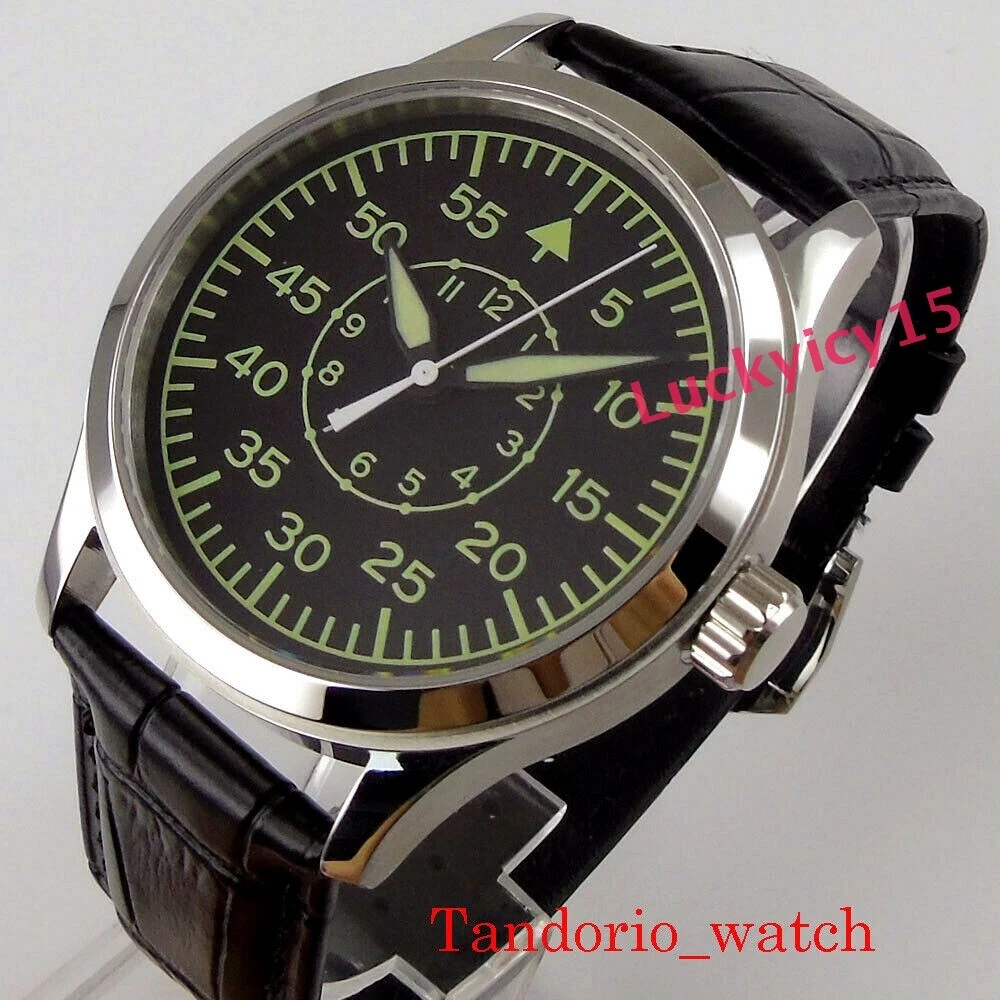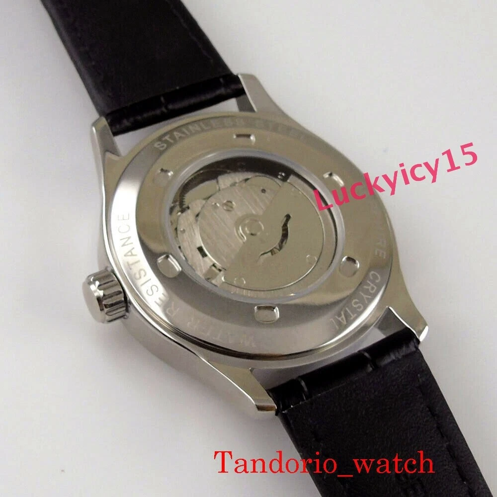 42mm Automatic Black Dial Men's Watch 21Jewels Polished Bezel Leather Strap Dial