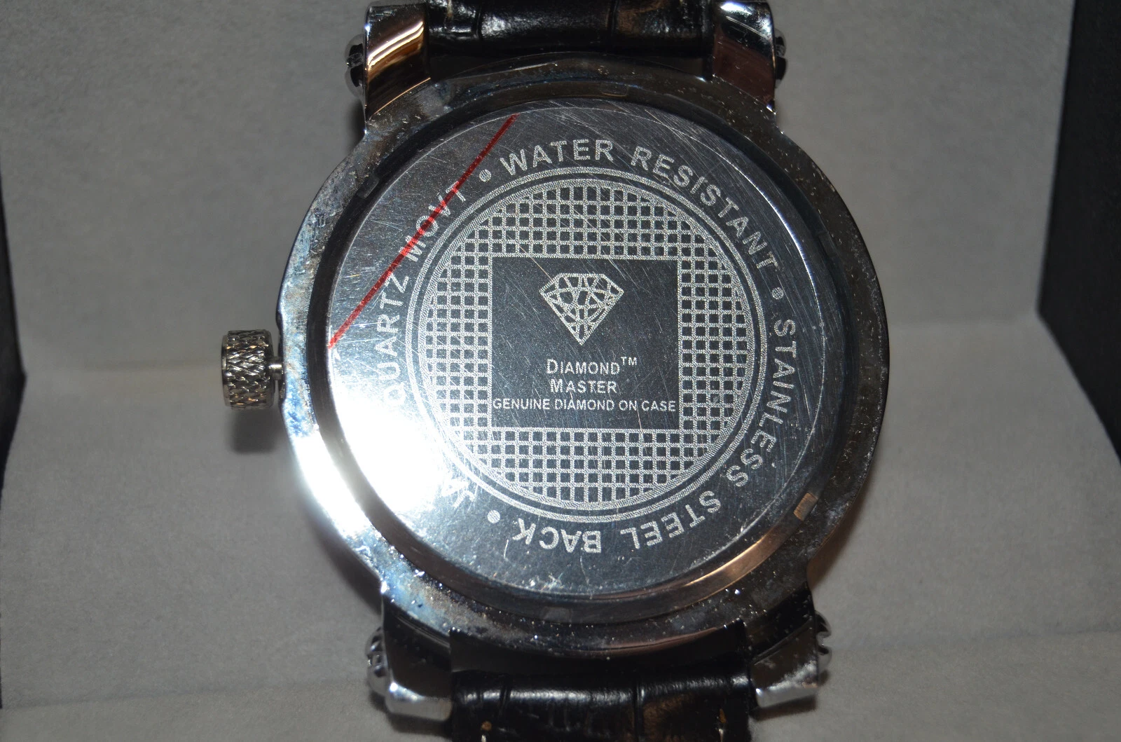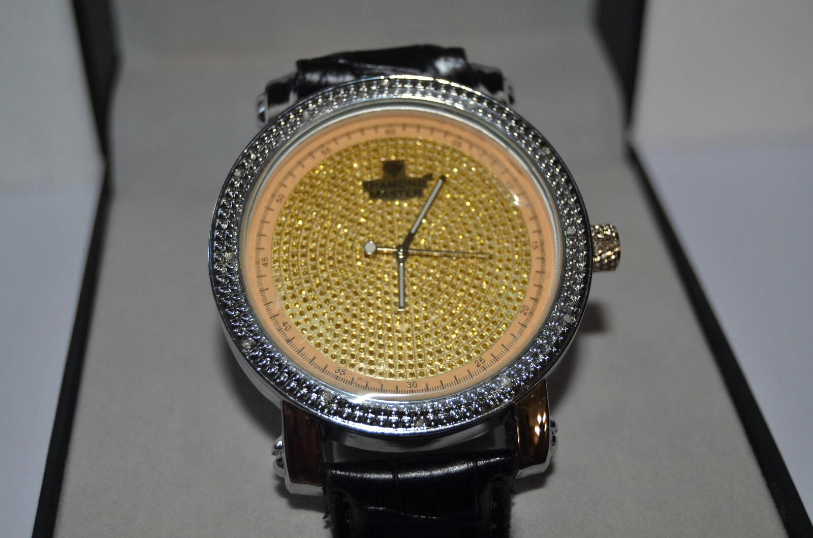 Gold Finish Leather Band watch Diamond Master with Genuine Diamonds need battery