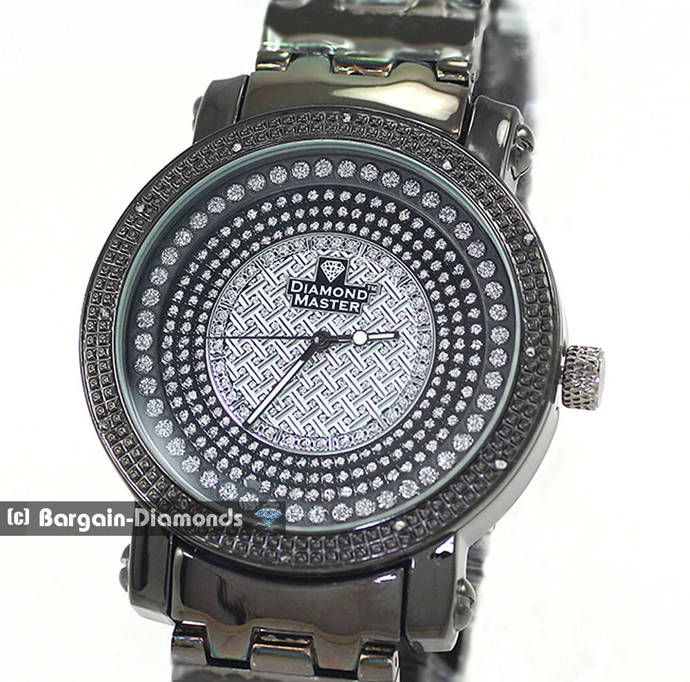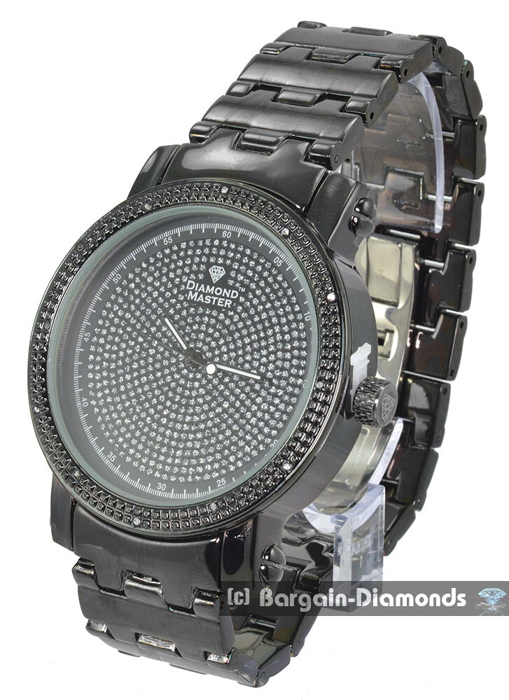 Mens Natural Diamond Black Business Clubbing Watch Bling Dial 8.5" Bracelet