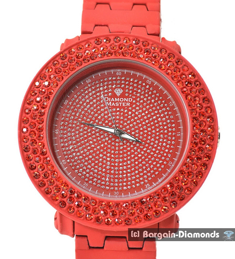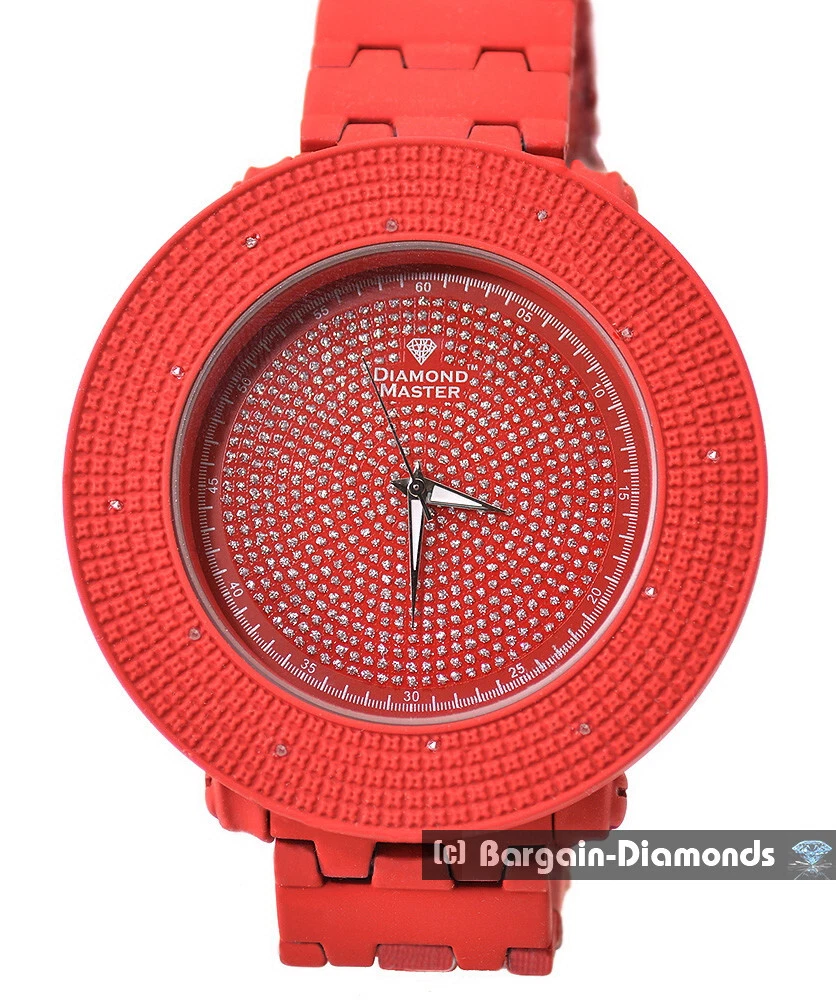 Mens 59 mm Natural Diamond Red Clubbing Watch Bling Dial 2 Bezels 8" Bracelet