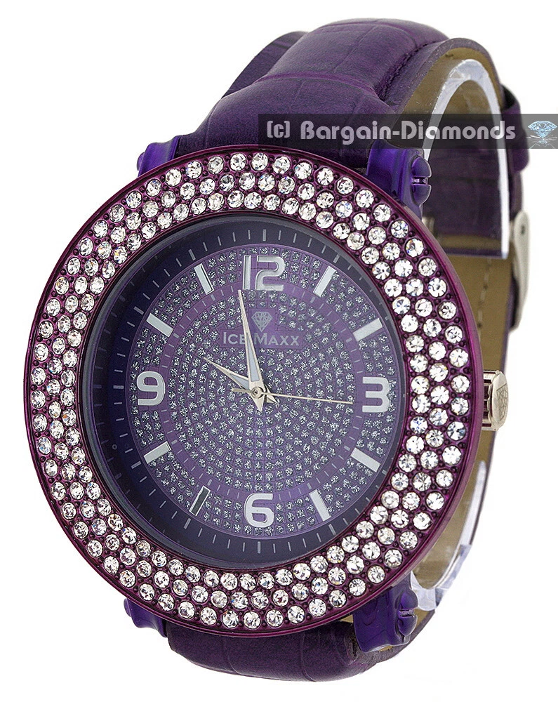 Mens 59 mm Natural Diamond Plum Clubbing Watch 2 Bezels 7"9" Plum+7"-9" Blk Lthr