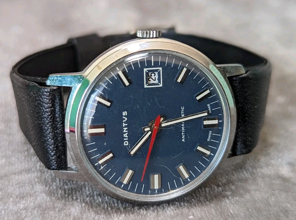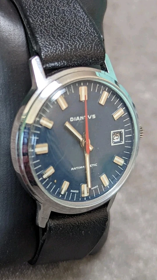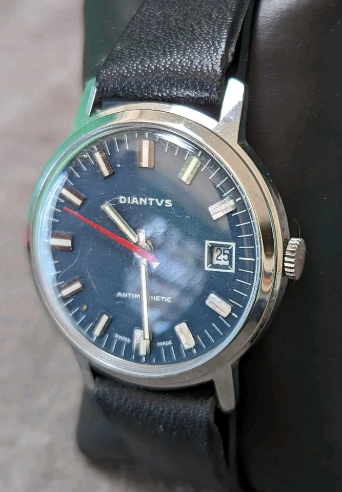 Vintage Diantus 2295 Swiss Made 35mm Silver Tone Mechanical Wind-up Watch